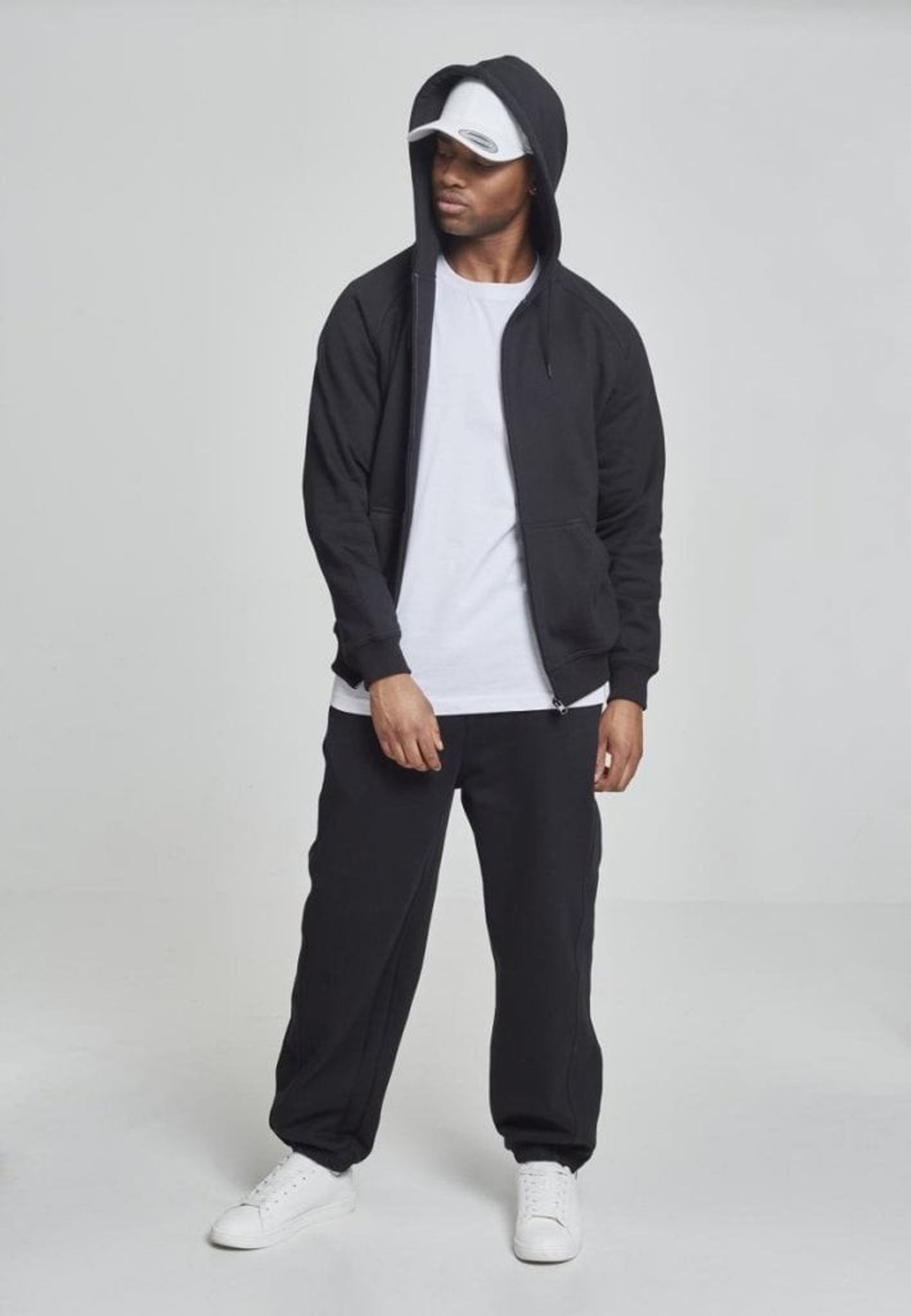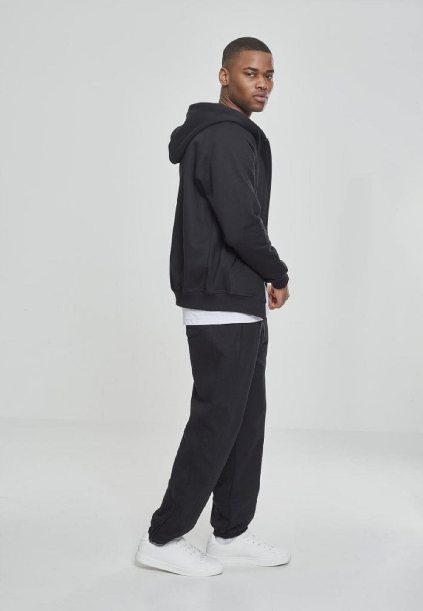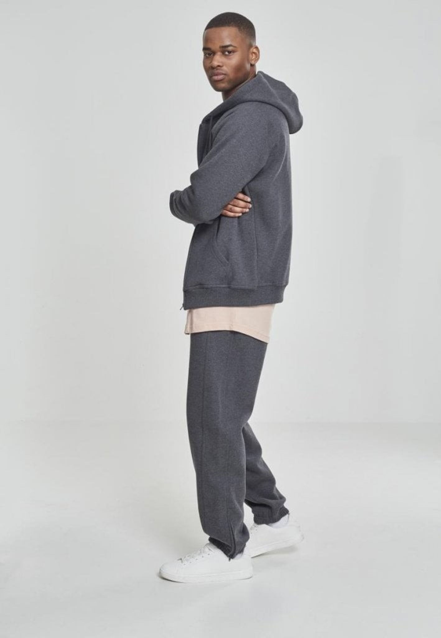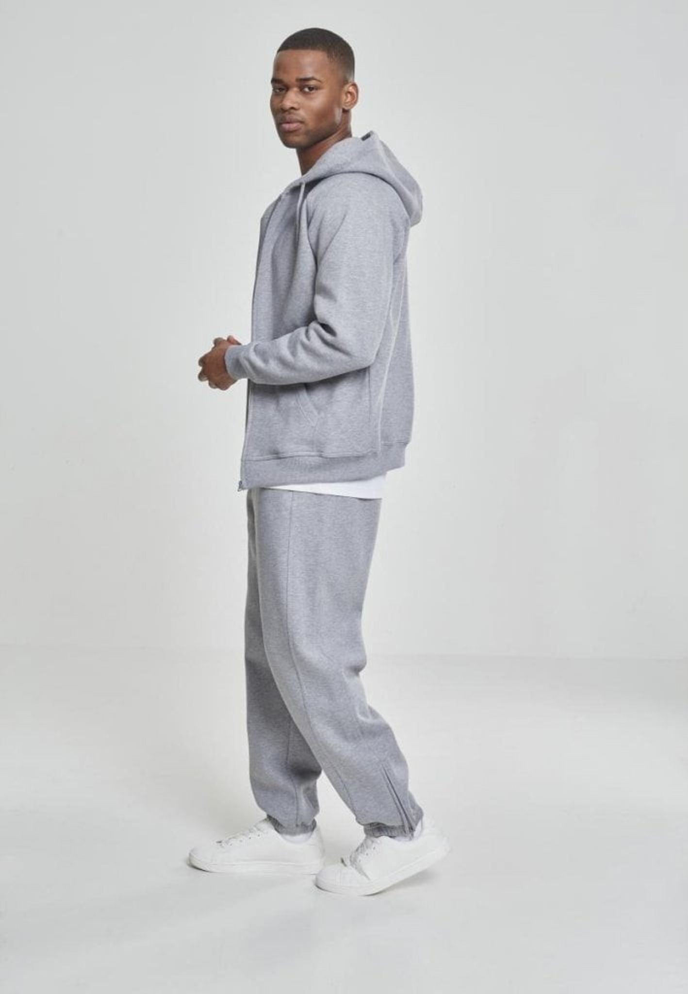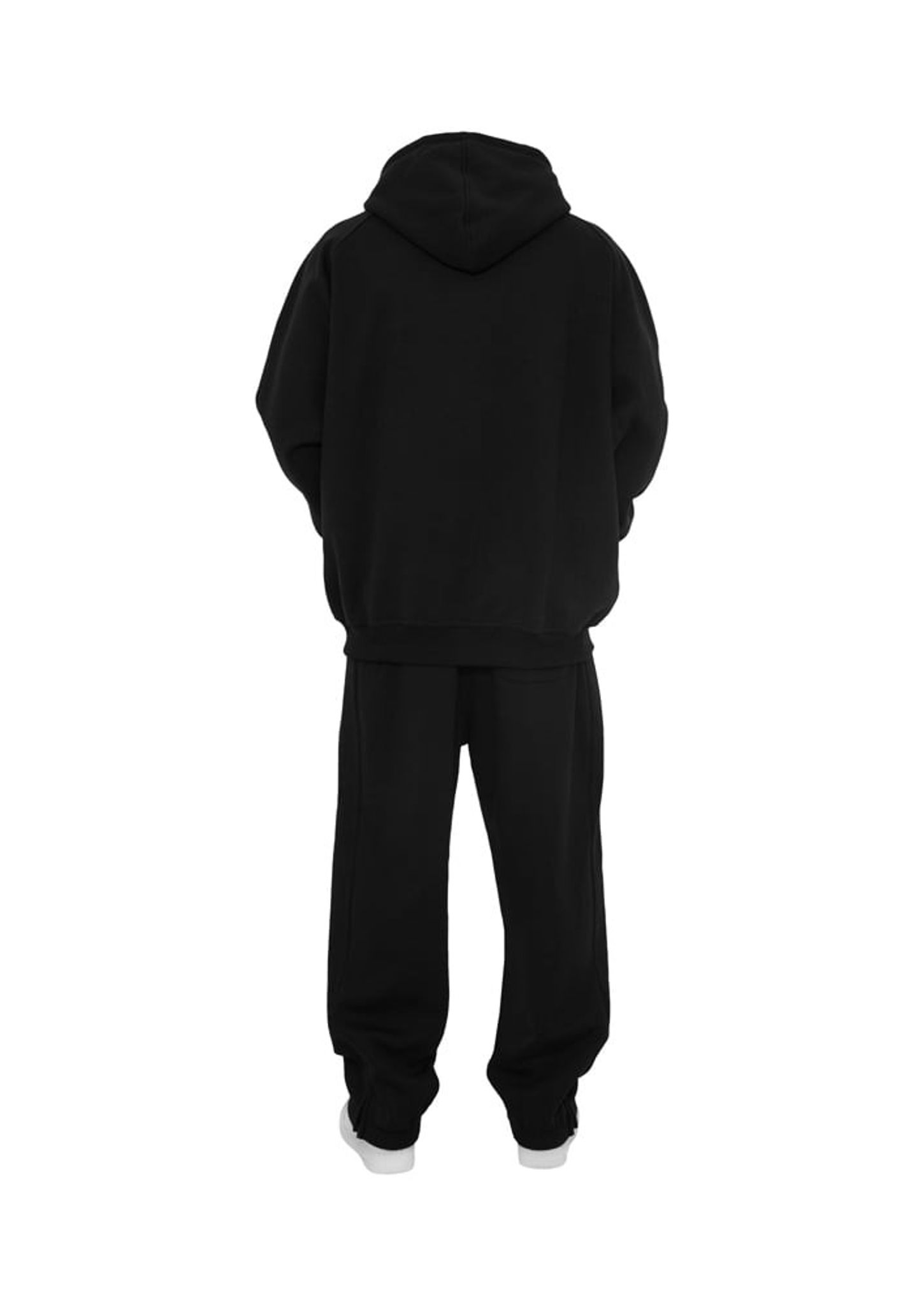 Dressen består av en huvtröja med dragkedja fram och ett par byxor.