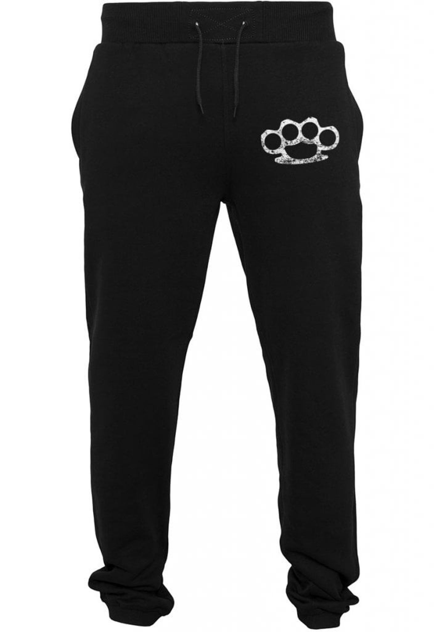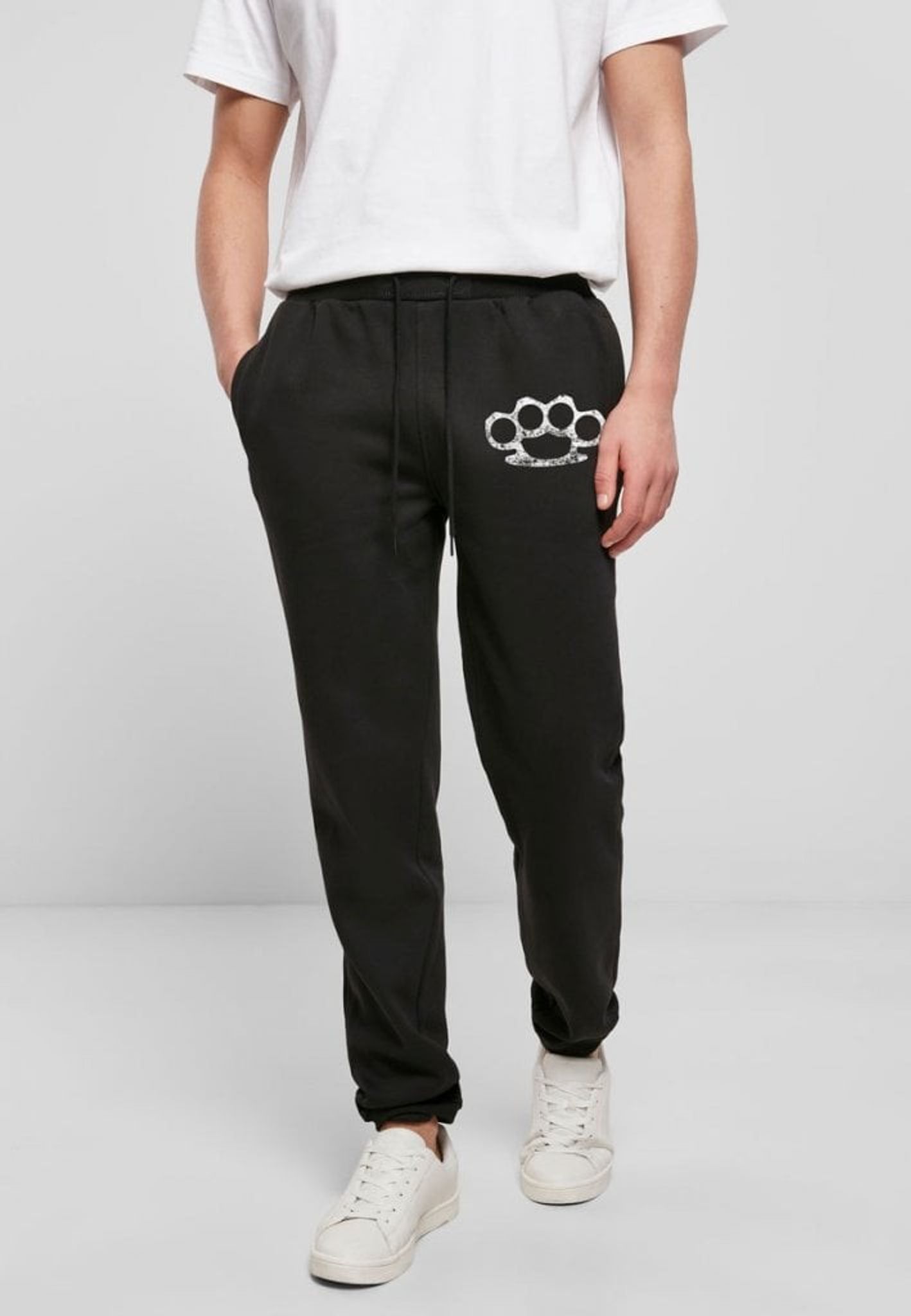 På vänstra sidan framtill har byxorna ett läckert tryck med ett slitet knogjärn.