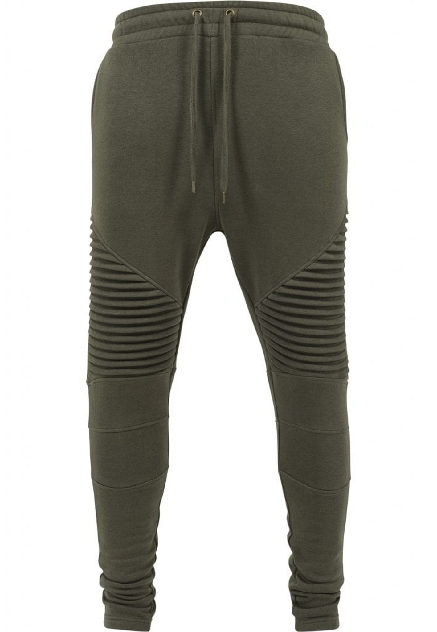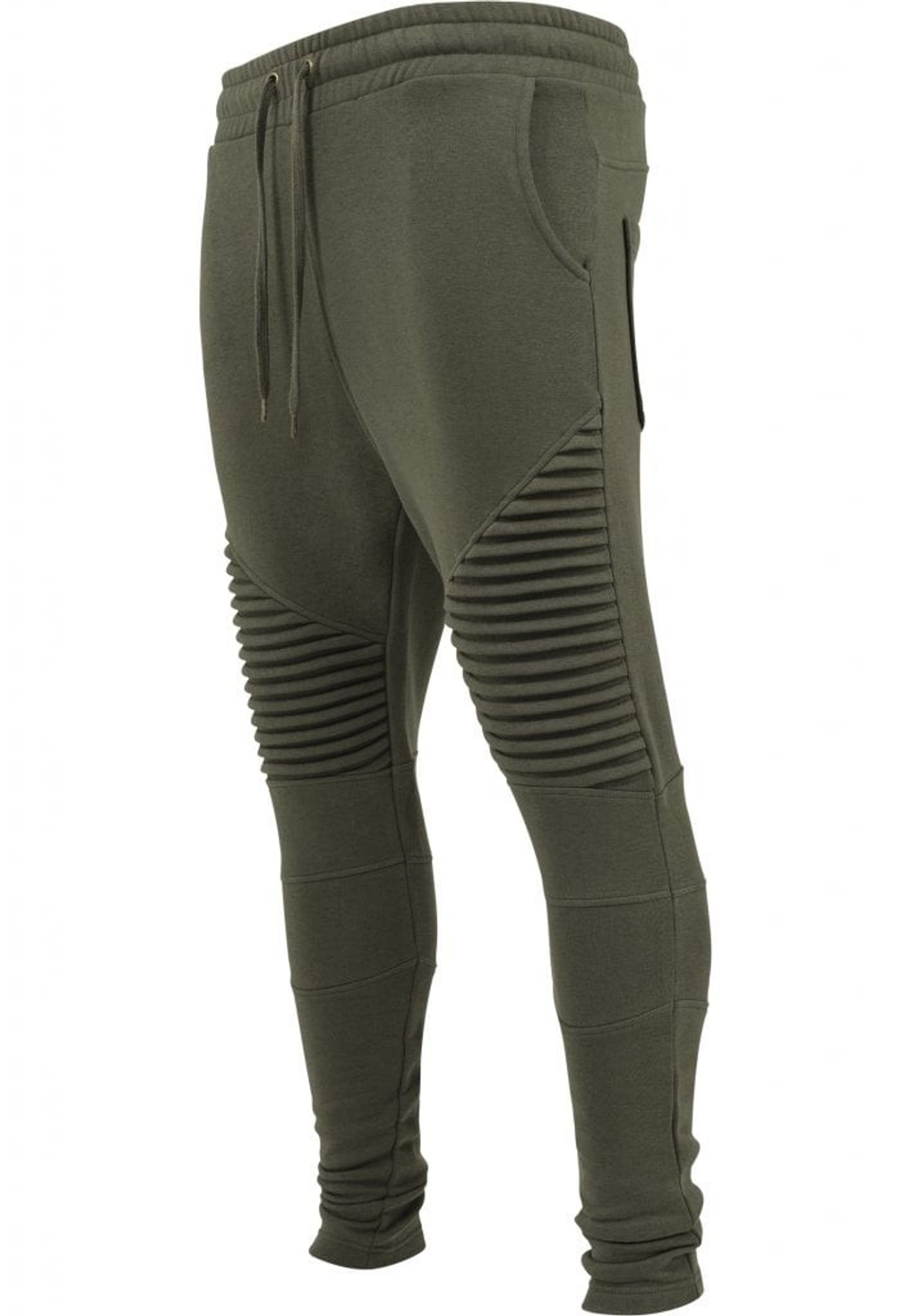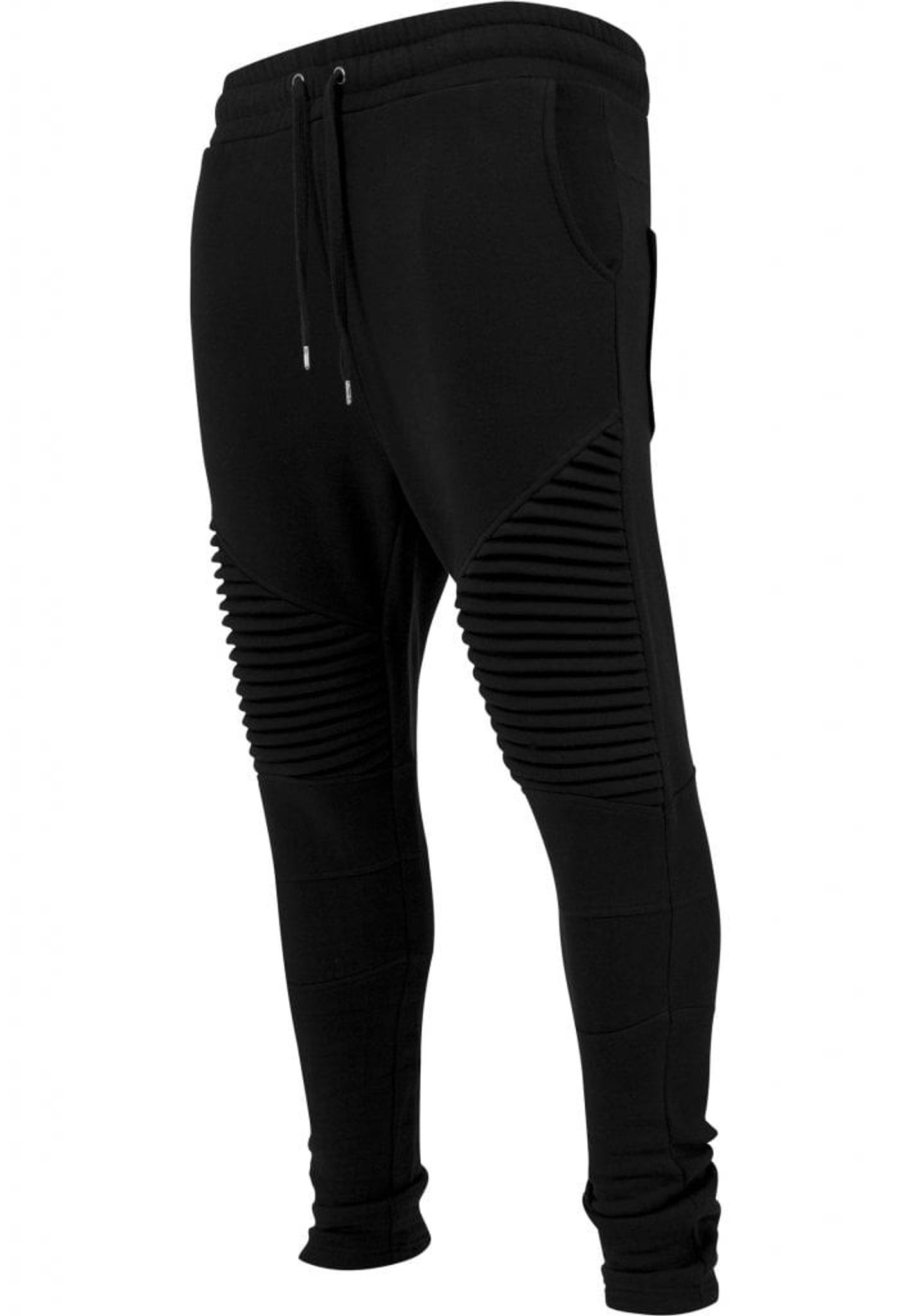 Ett par riktigt sköna joggingbyxor med knän som går i plisserat tyg, vilket innebär att tyget är sytt med veck.
