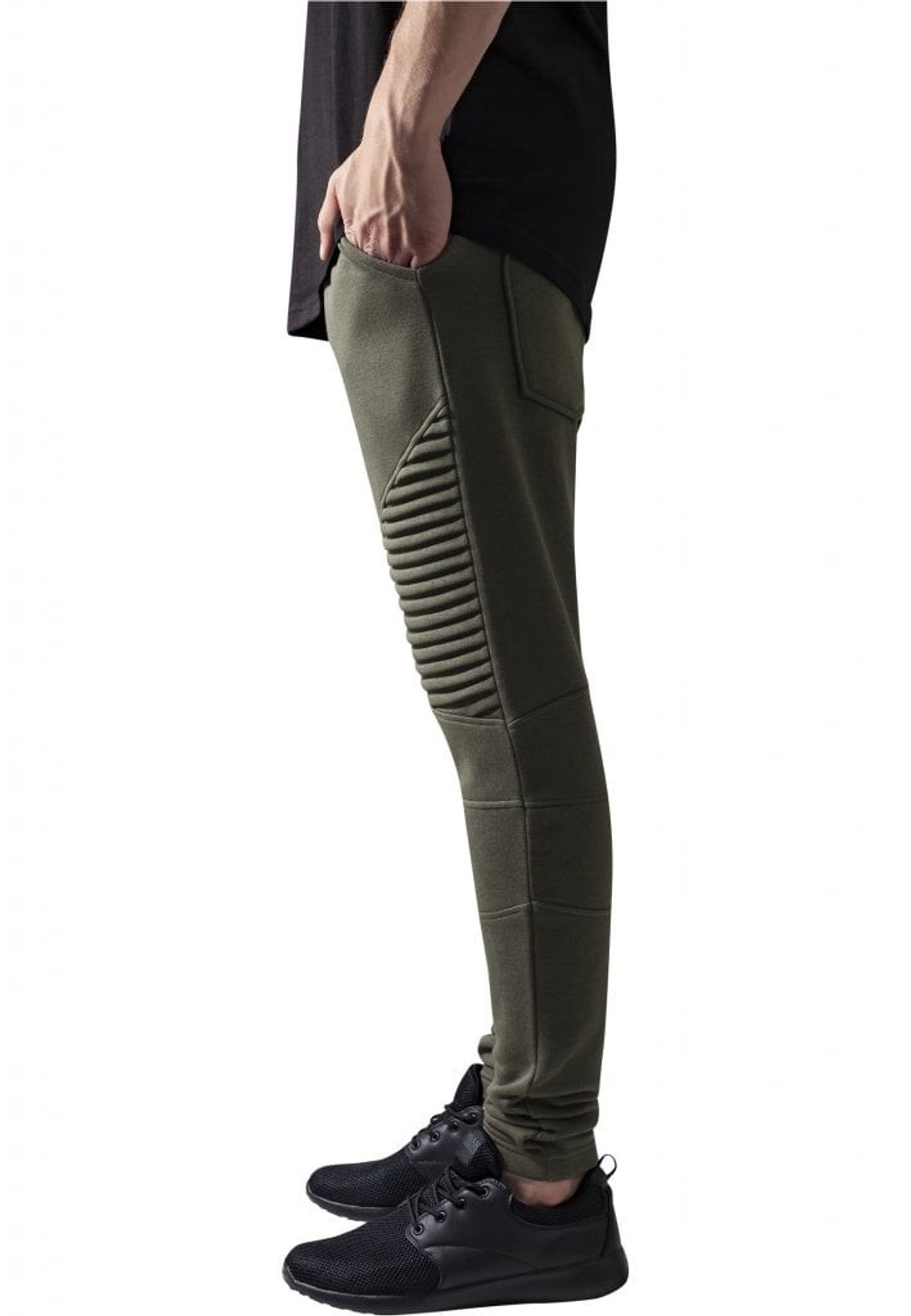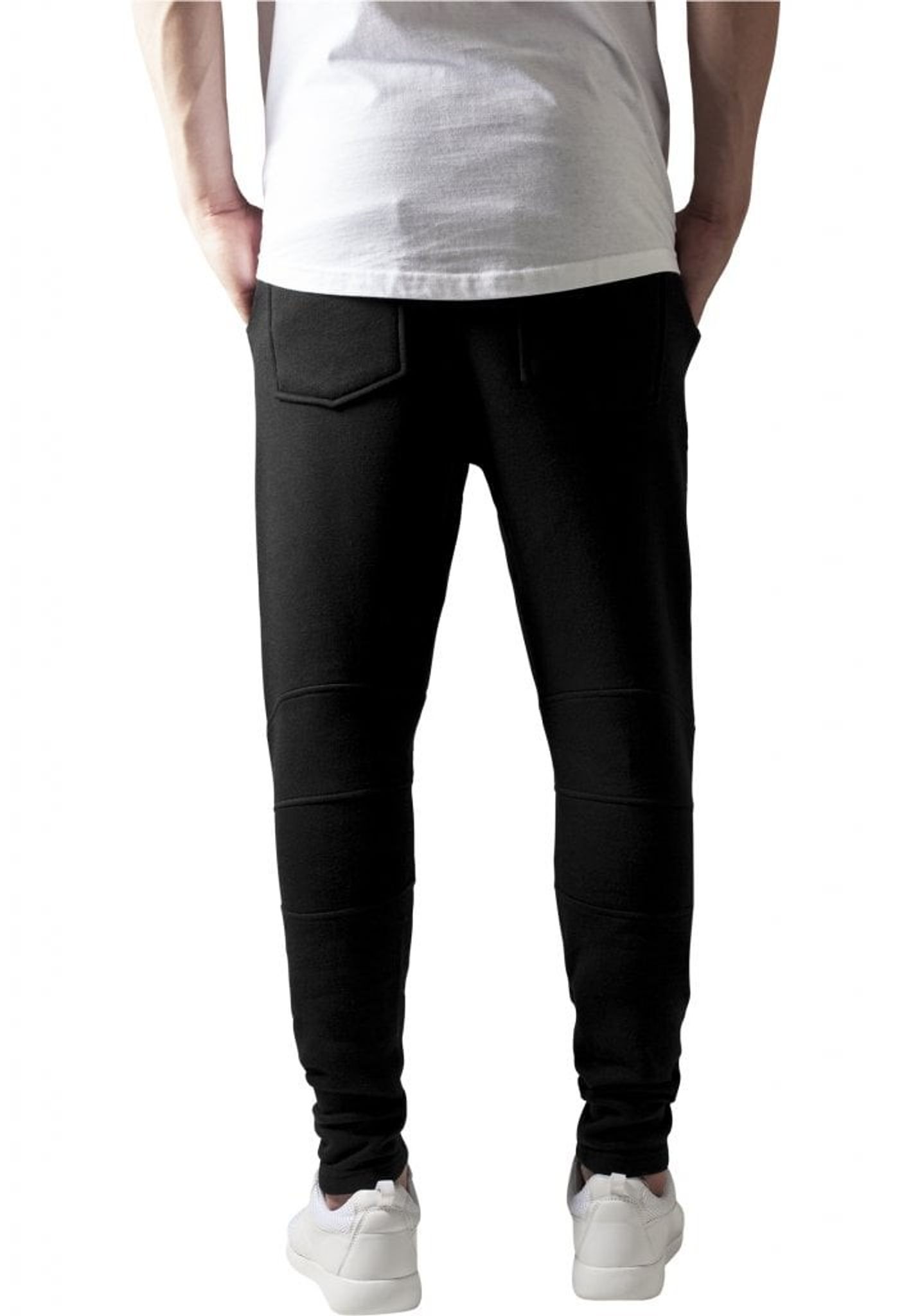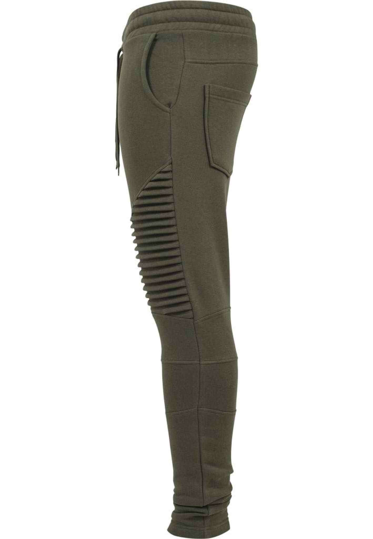 Ett par riktigt sköna joggingbyxor med knän som går i plisserat tyg, vilket innebär att tyget är sytt med veck.