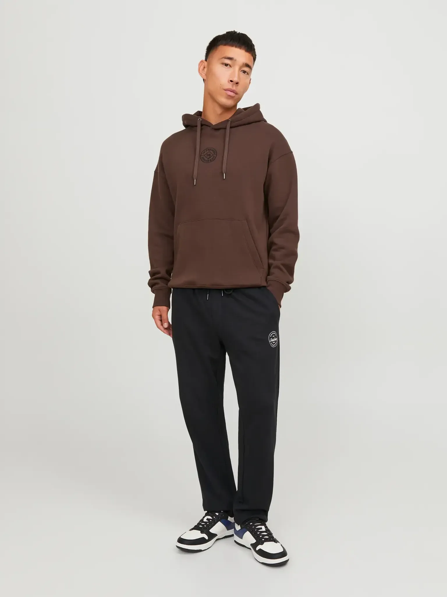 Dessa svarta sweatpants från Jack & Jones är ett mångsidigt plagg som passar lika bra till vardags som för en avslappnad helglook. De är tillverkade i ett mjukt och följsamt material som ger både komfort och rörelsefrihet. Den elastiska midjan med dragsko gör att de sitter bekvämt, och de ribbade bensluten ger en snygg siluett som håller byxorna på plats hela dagen.