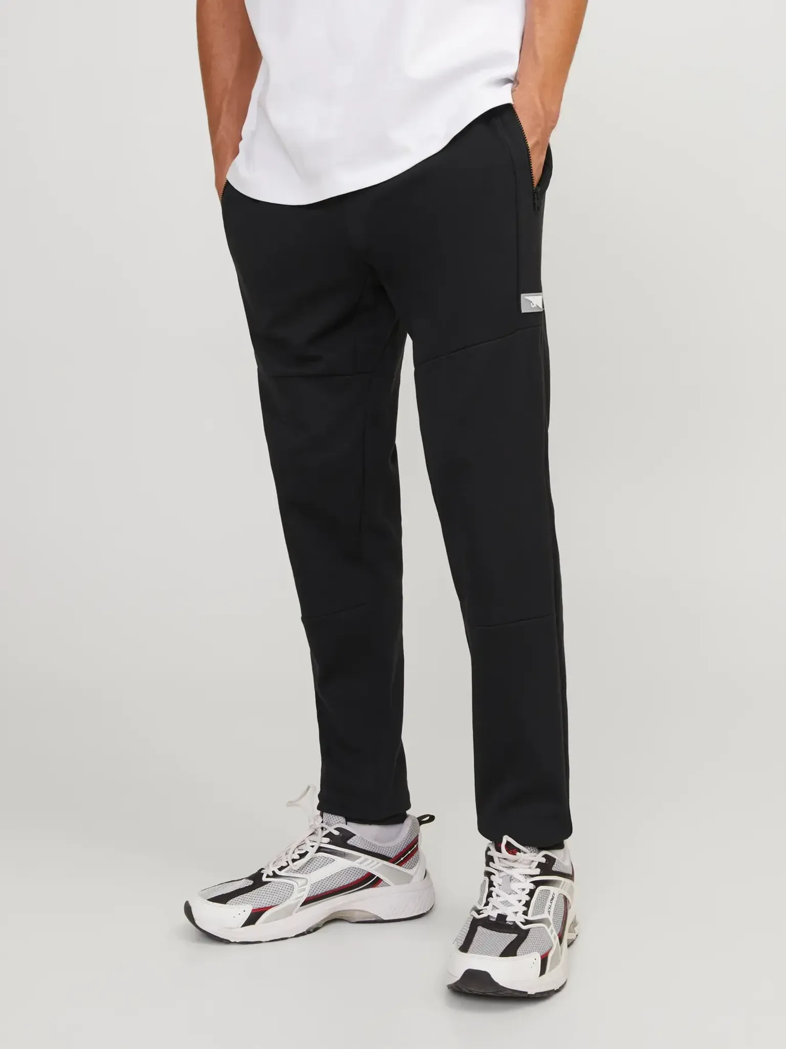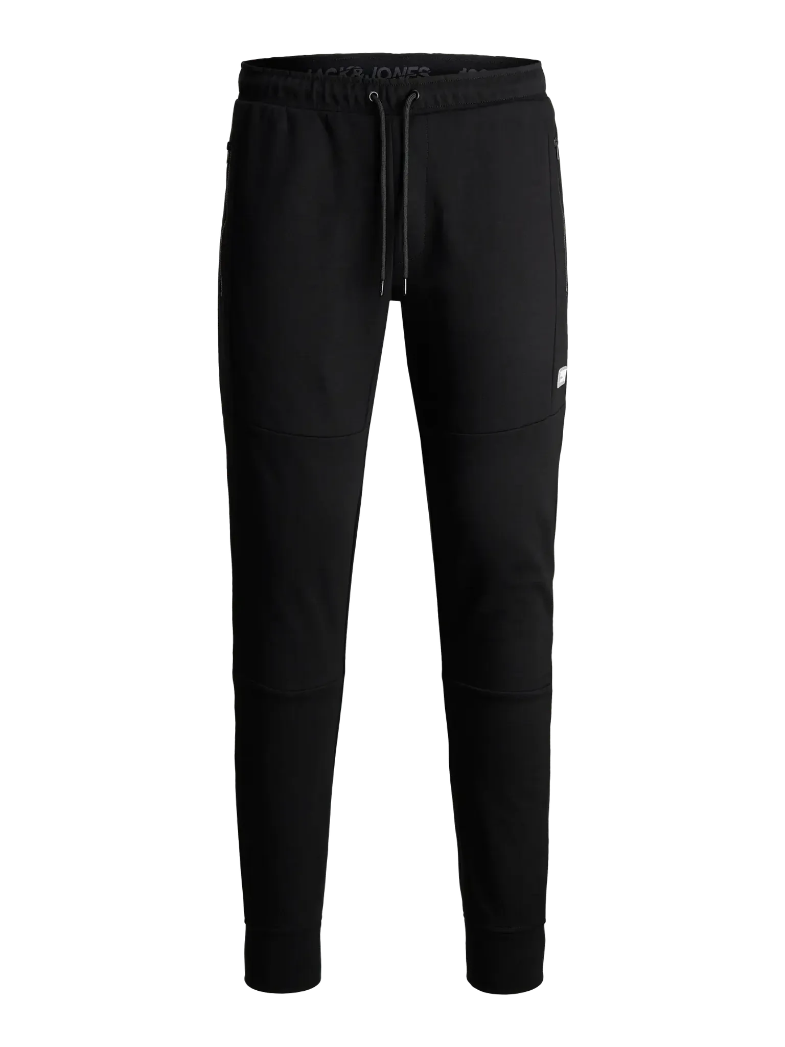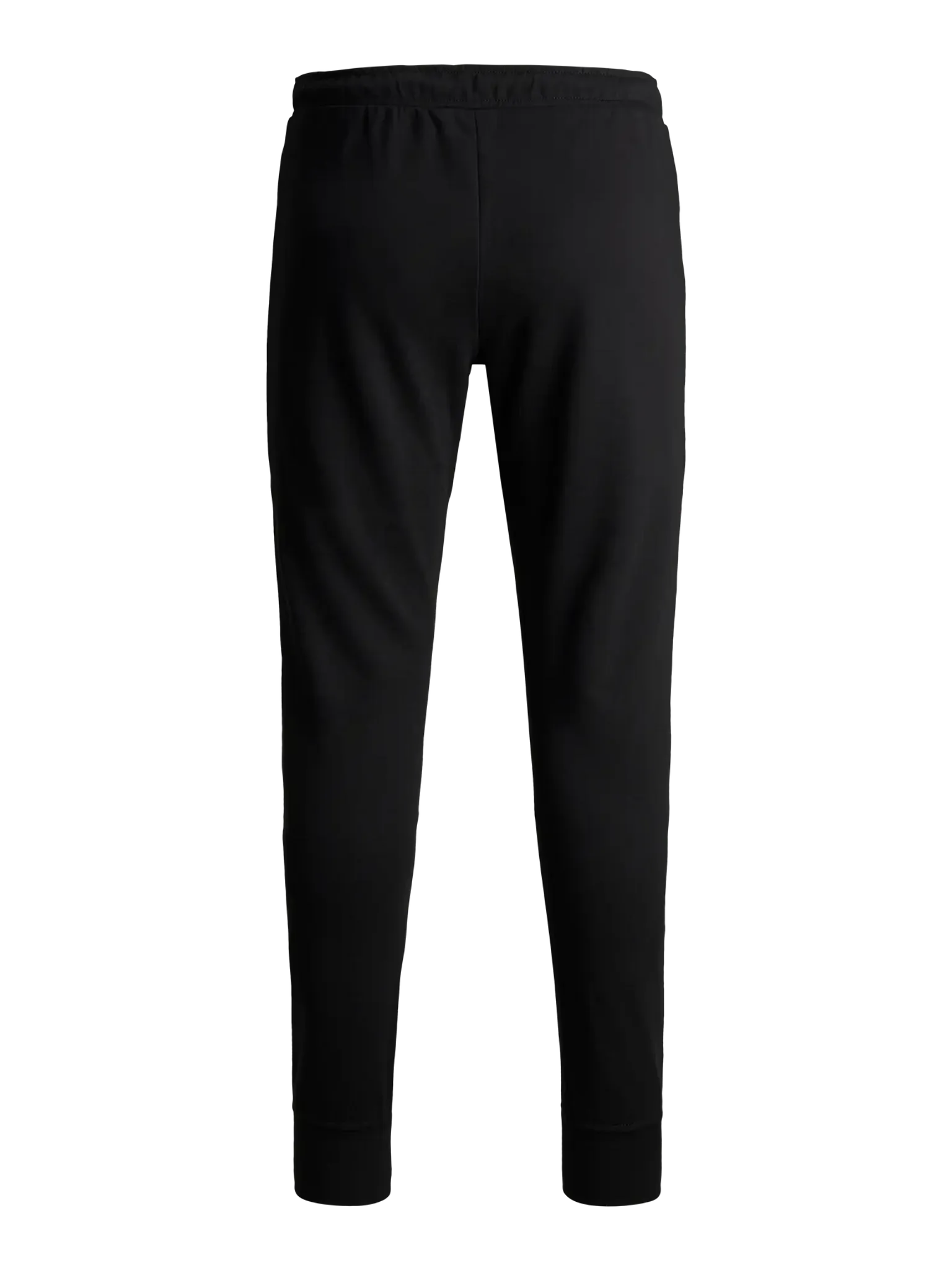 Dessa svarta joggerbyxor kombinerar en avslappnad känsla med en modern passform. De är tillverkade i ett mjukt och följsamt material med tillsatt elastan som ger extra komfort och rörelsefrihet. Den elastiska midjan med dragsko ger en skön och justerbar passform, medan de ribbade bensluten ger en stilren siluett som håller sig på plats. Perfekta både för avslappnade vardagslookar och för en sportig stil på språng.