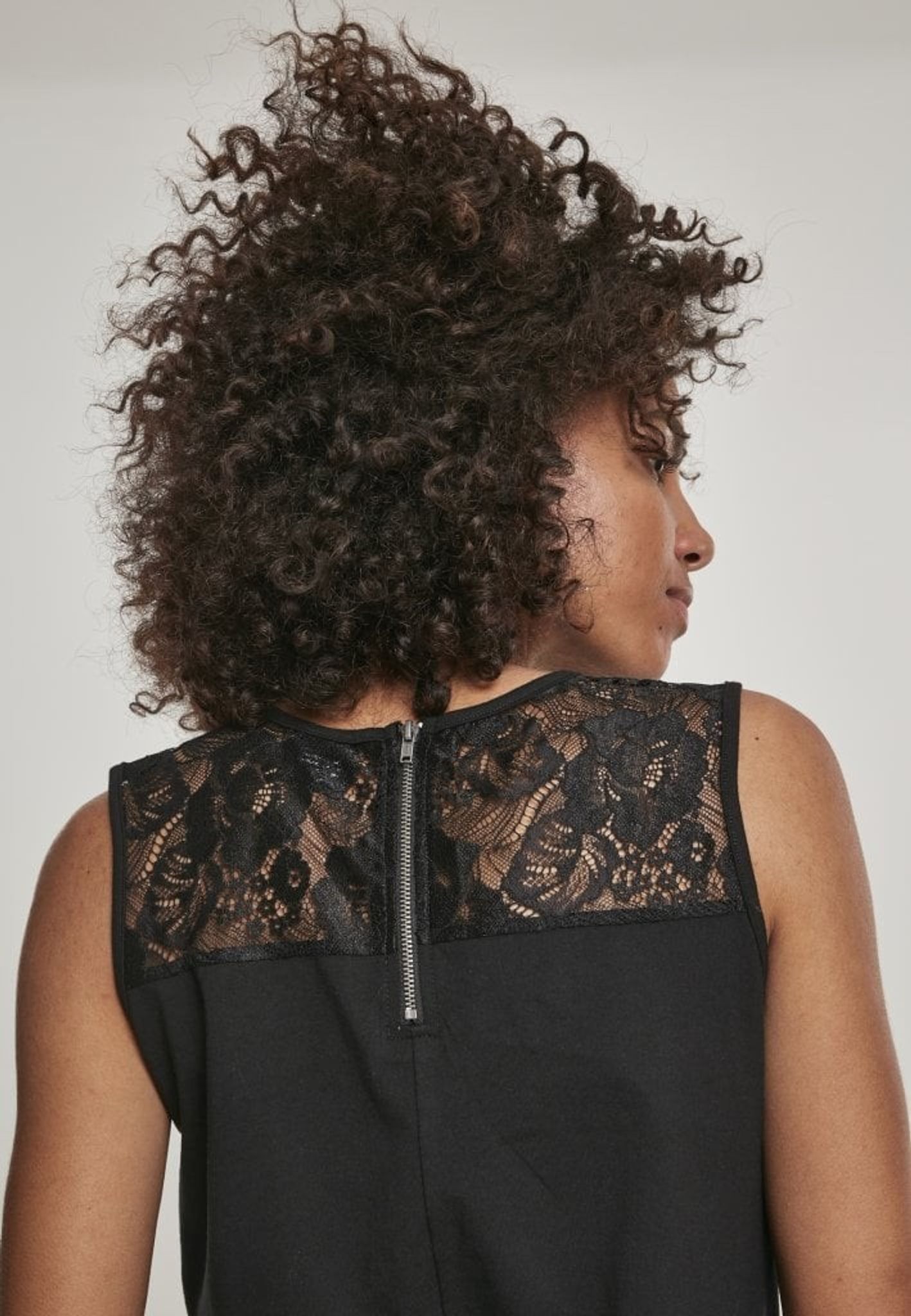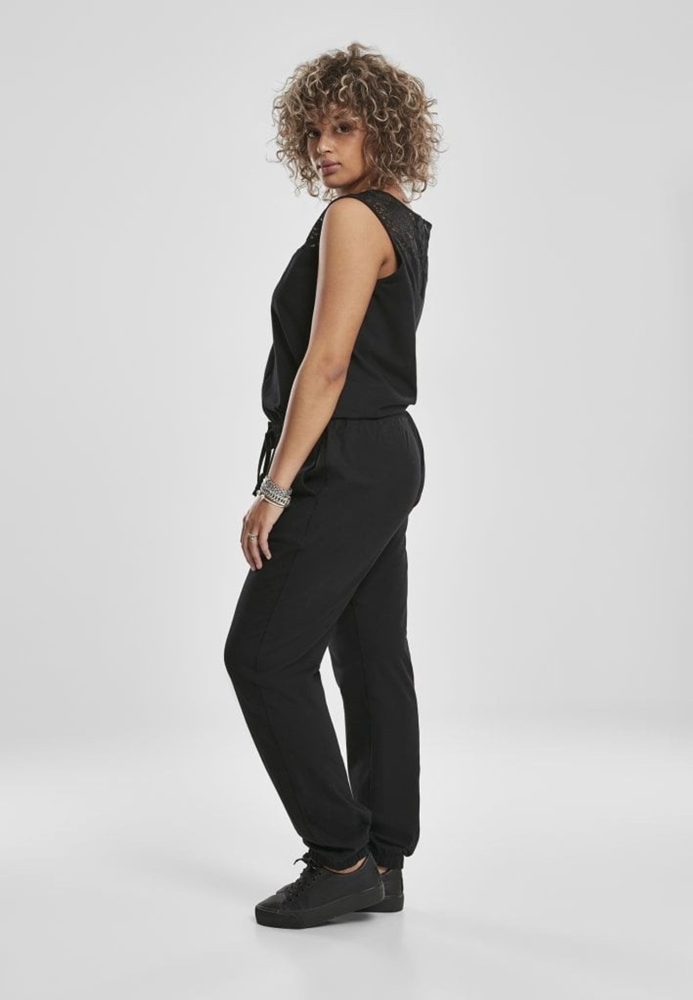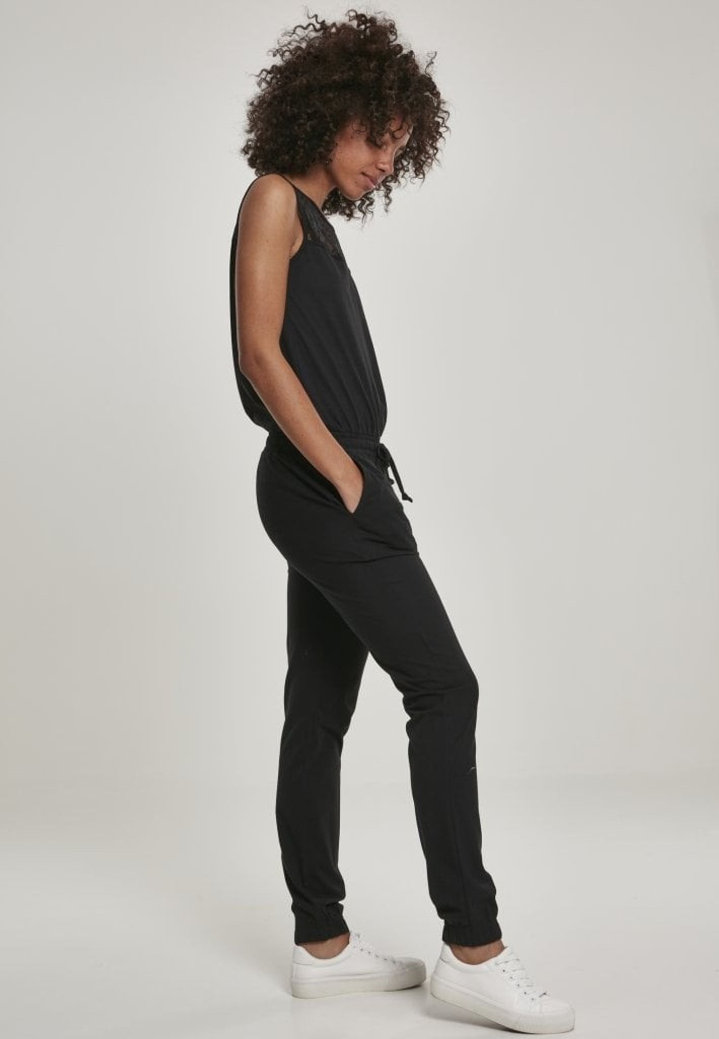 En jumpsuit som är sportig och feminin med sportiga byxor och en söt topp med spets.
