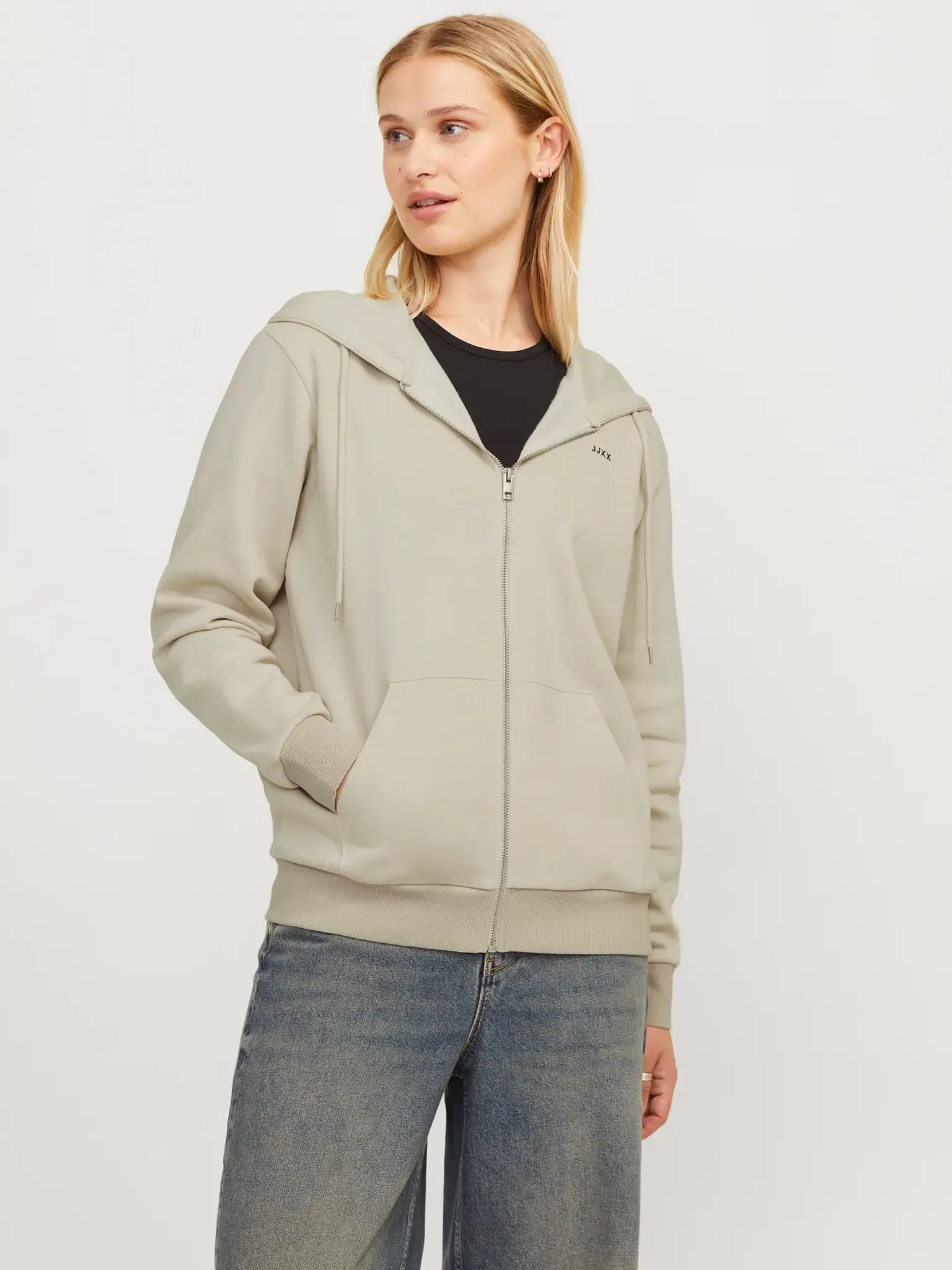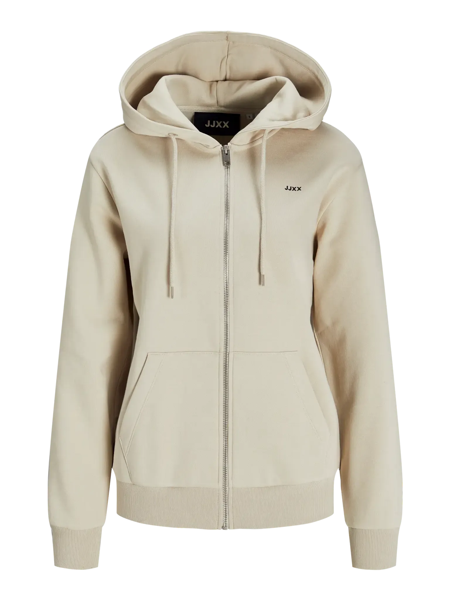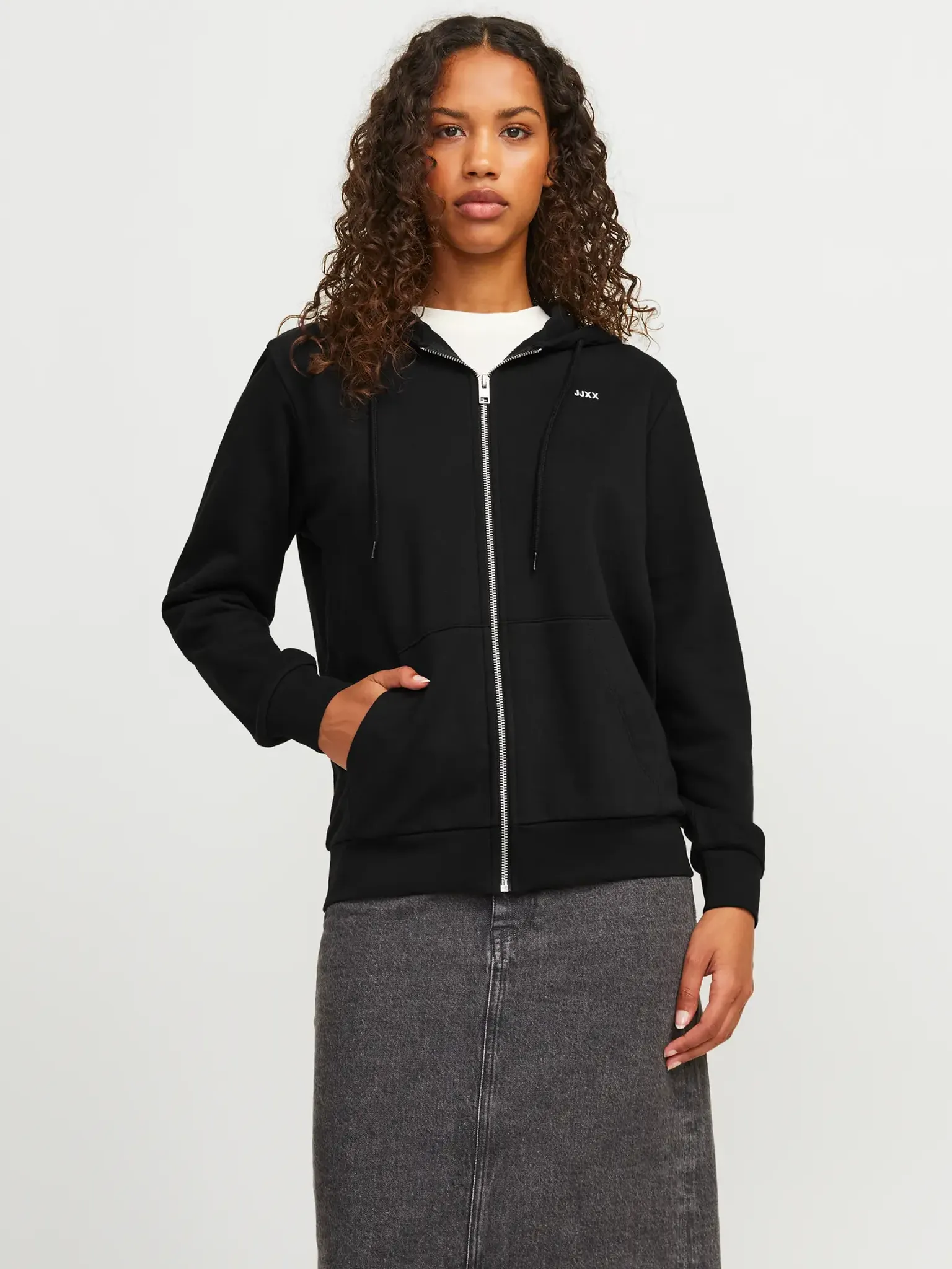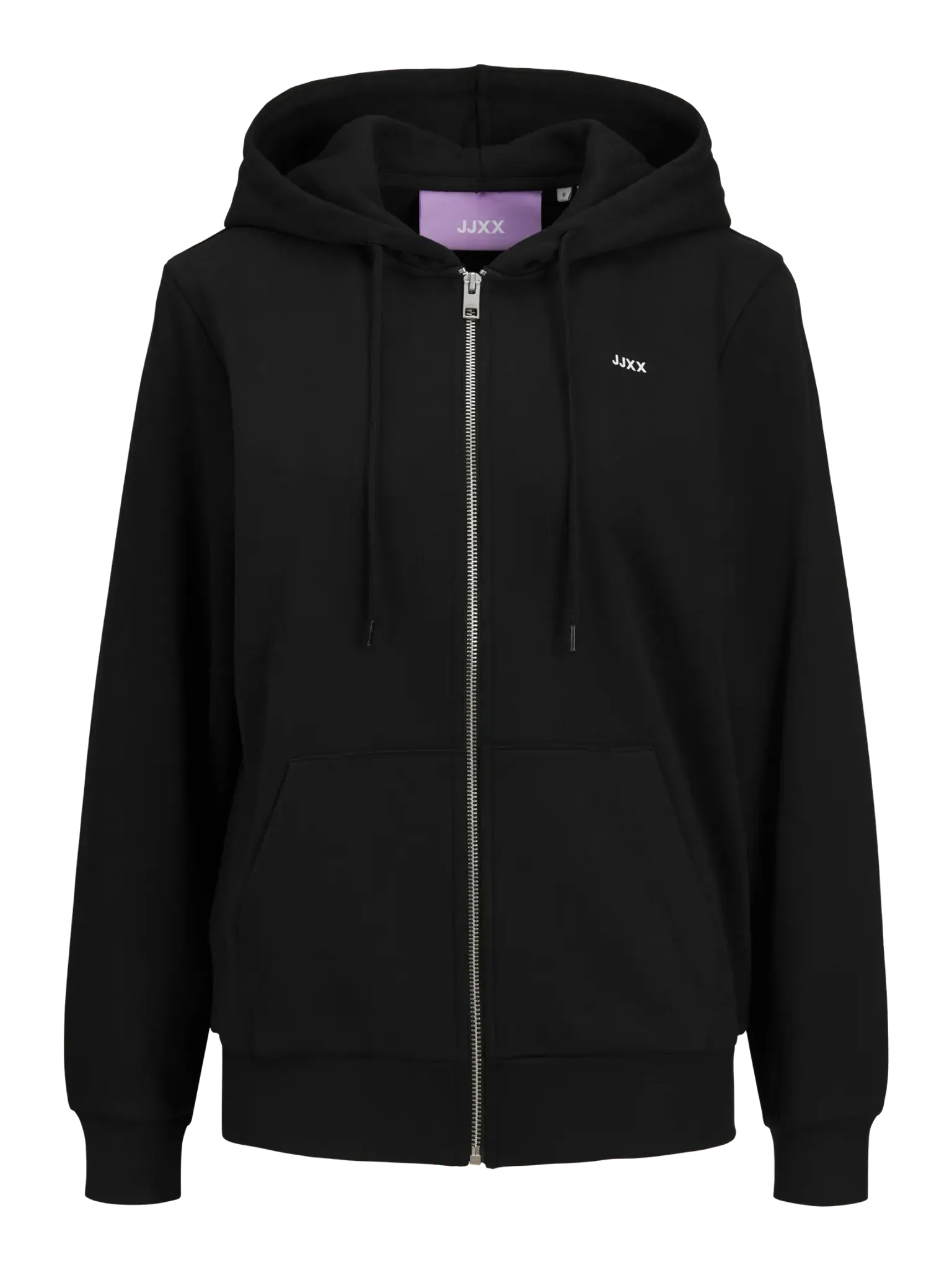 På framsidan finns en gummiprint av JJXX-logotypen i en kontrasterande färg, vilket ger en modern och trendig touch. Denna hoodie är ett mångsidigt plagg som enkelt kan kombineras med olika outfits.