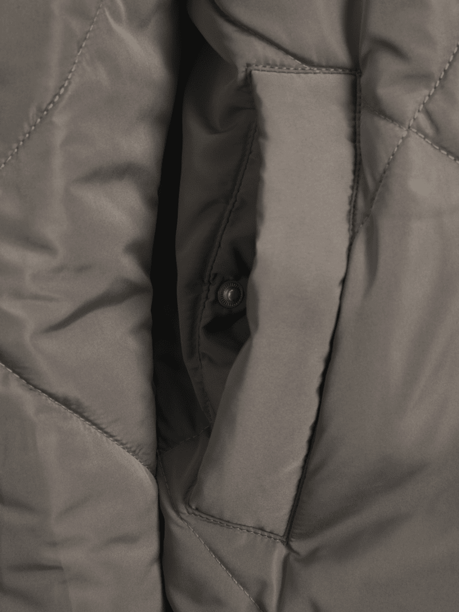 Jackan har en stilren huva och ribbade ärmslut som ger en bekväm passform. Det quiltade tyget med mönster av sömmar ger en modern och trendig look.