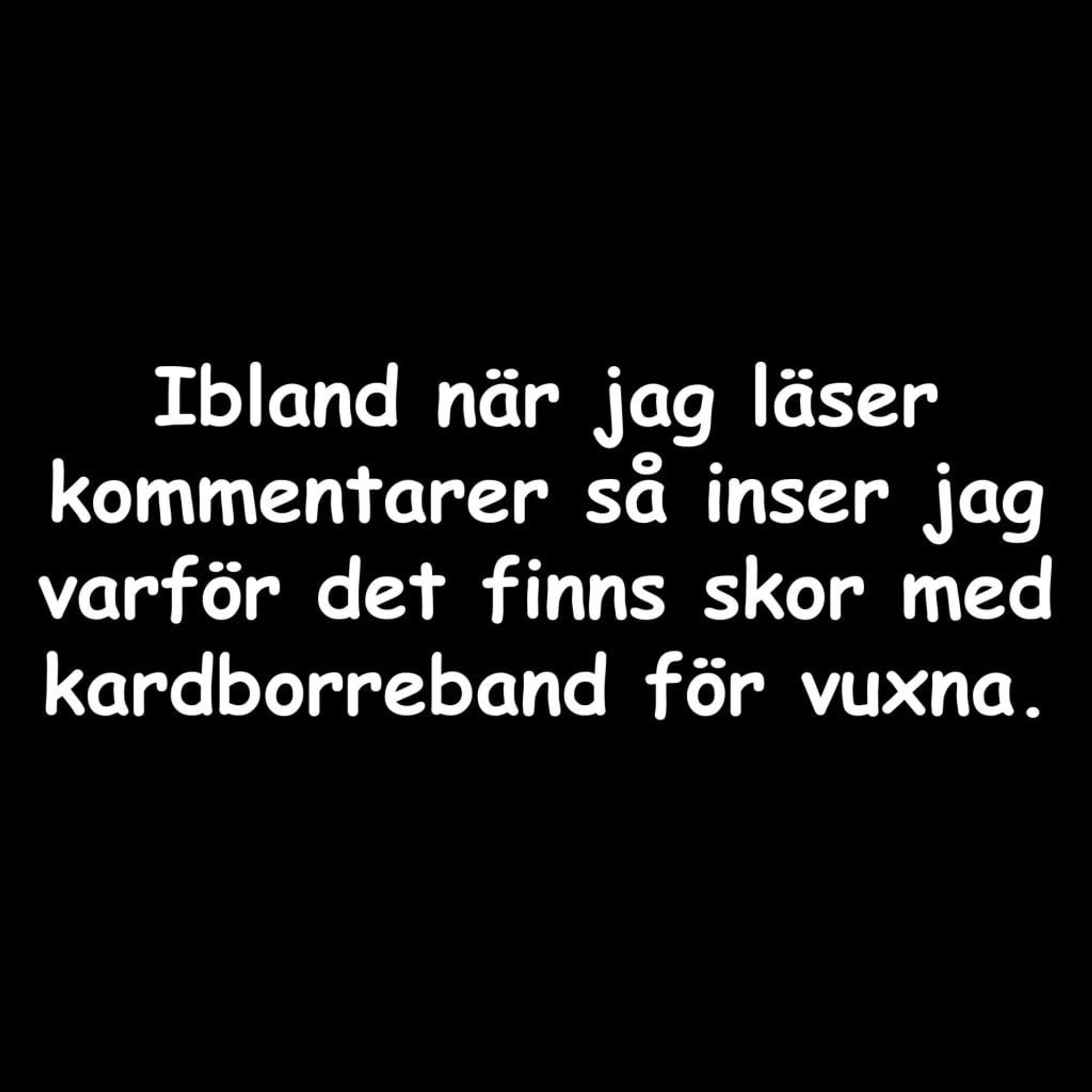 Denna svarta T-shirt med en sarkastiskt skarp fras är det perfekta plagget för varje internetkrigare som någonsin ställt sig frågan om mänsklighetens gemensamma förstånd. Med en humoristisk och lite syrlig kommentar som lyder "Ibland när jag läser kommentarer så inser jag varför det finns skor med kardborreband för vuxna", blir det snabbt tydligt att denna T-shirt är för dem som har upplevt de ibland mindre upplysta delarna av internetdiskussioner.
