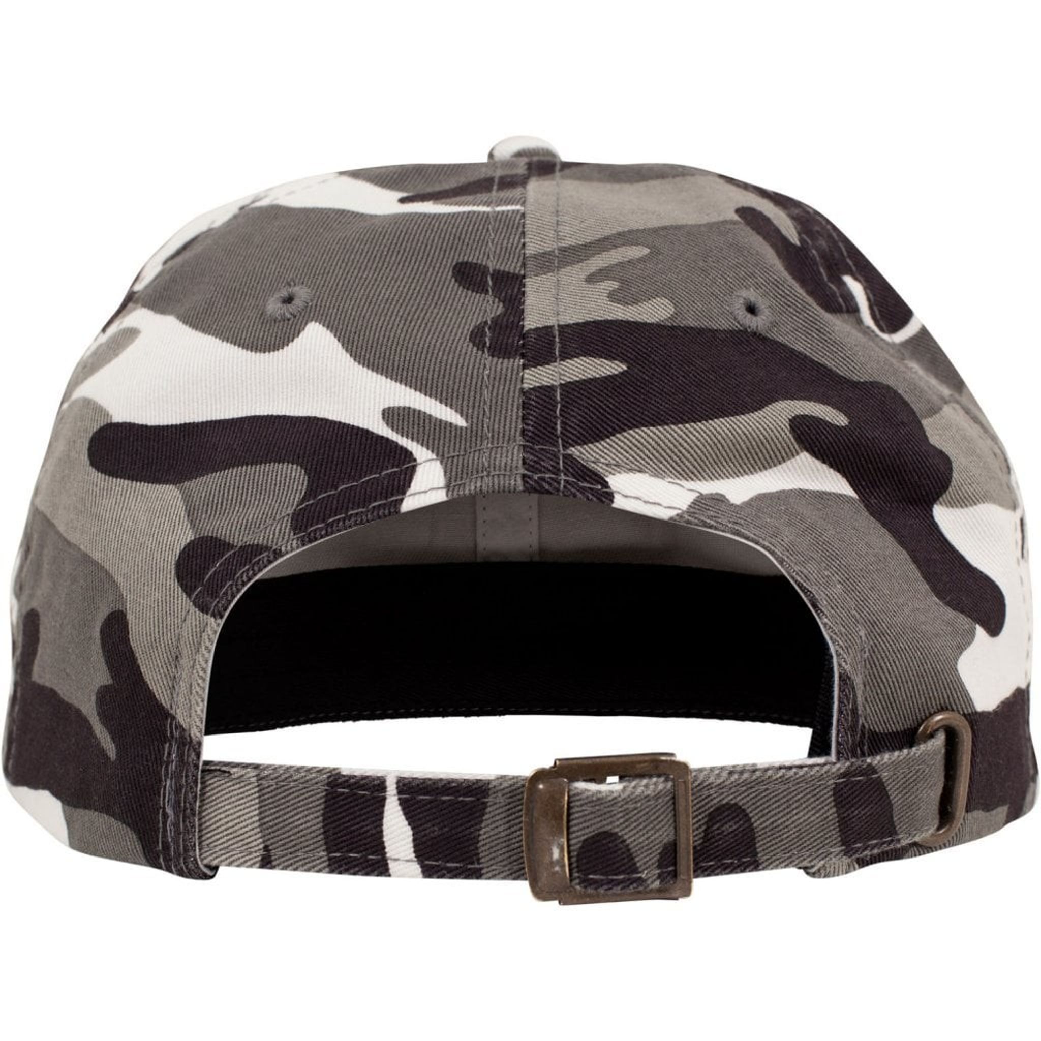 En låg keps med böjd skärm och ett kamouflagetyg.