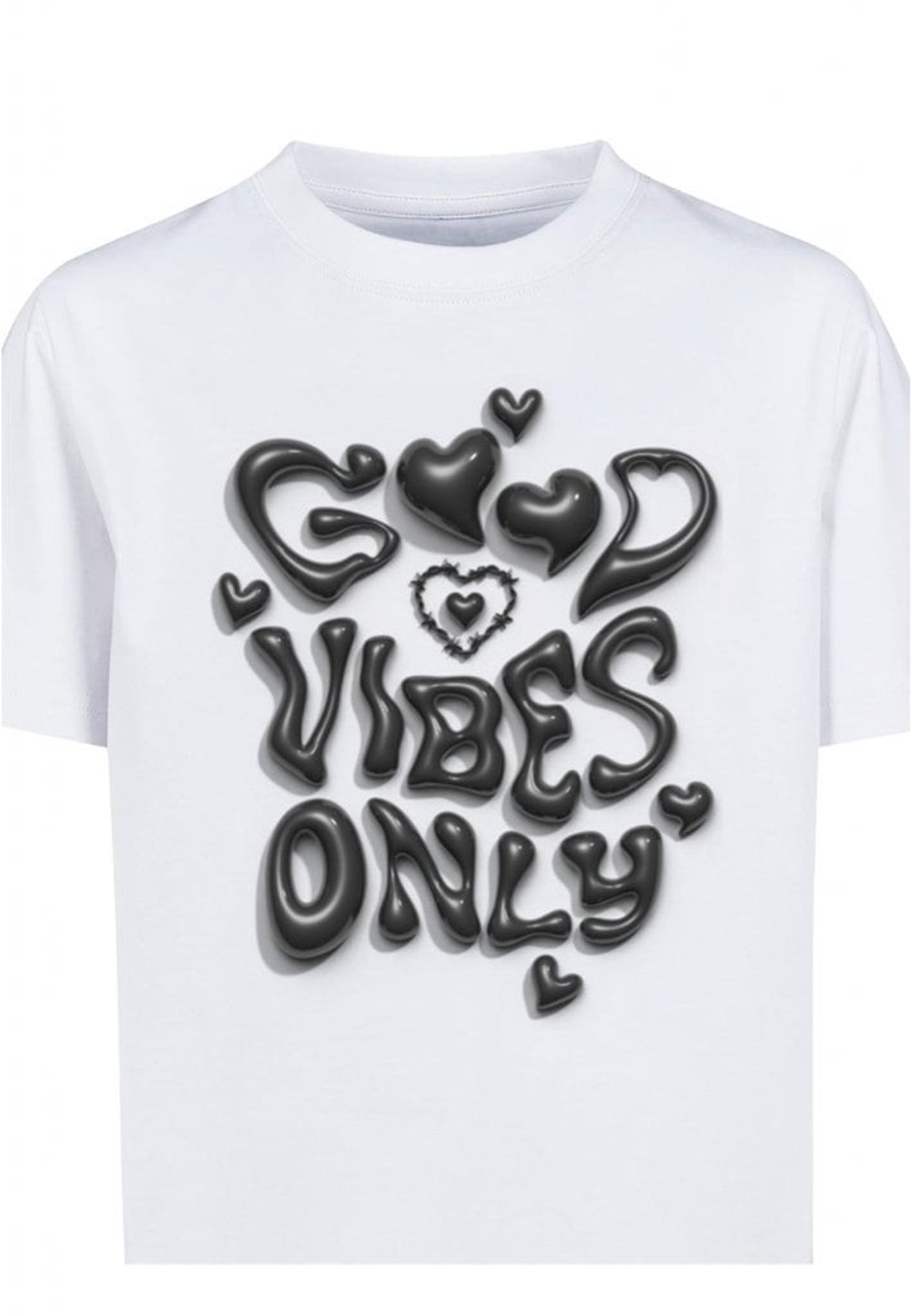 Kids Good Vibes Only Heart Tee är en färgglad och inspirerande t-shirt för barn. Den sprider glädje och positiva känslor med sitt charmiga hjärtmotiv. Tillverkad av mjuka och hållbara material, är den perfekt för lek och äventyr varje dag.