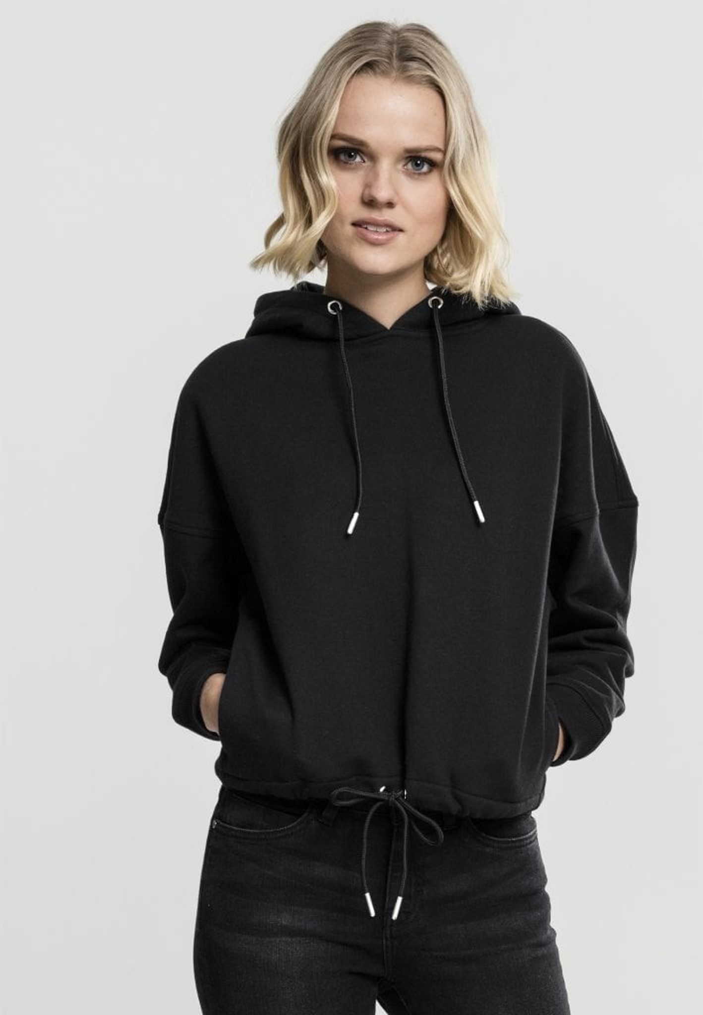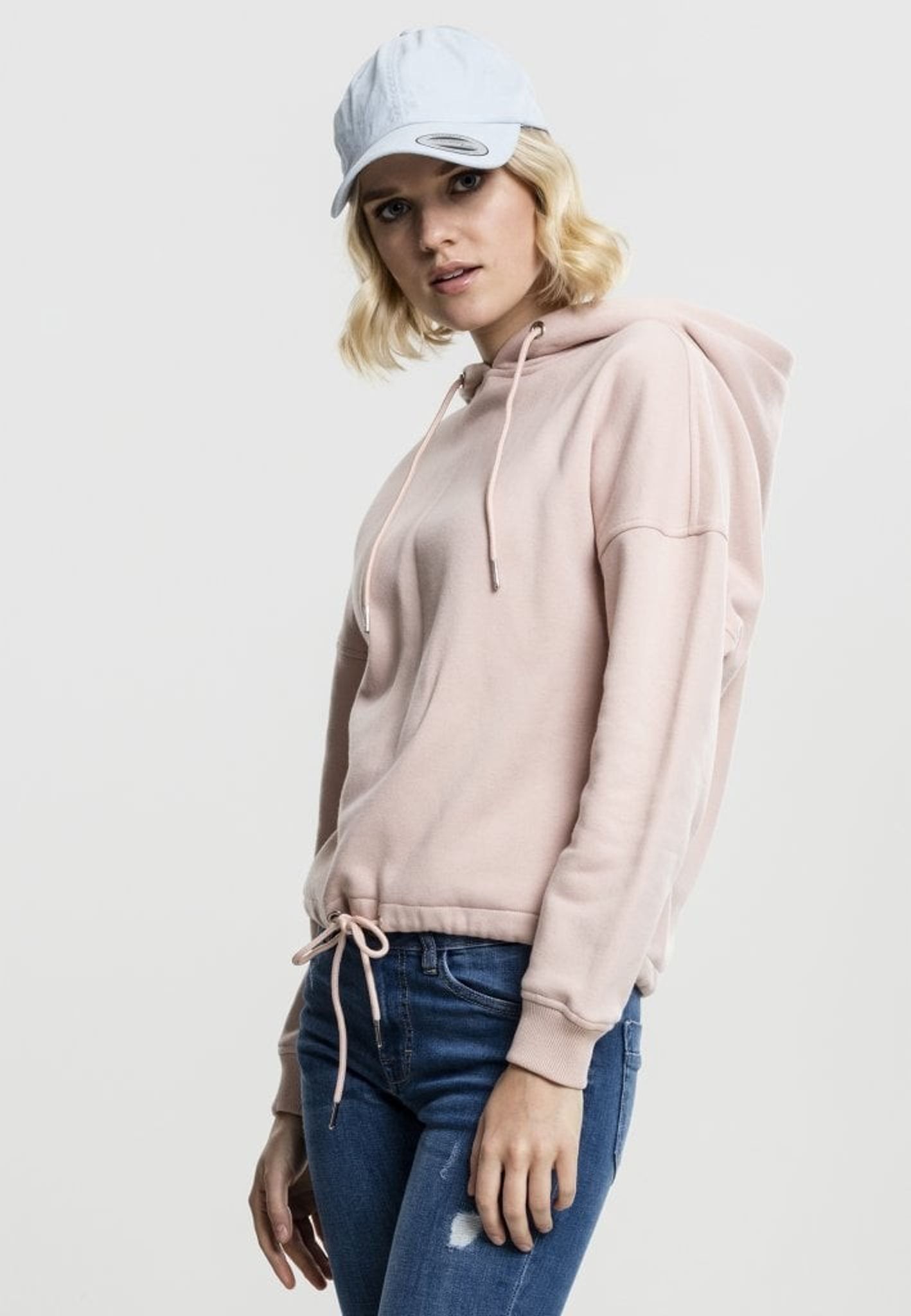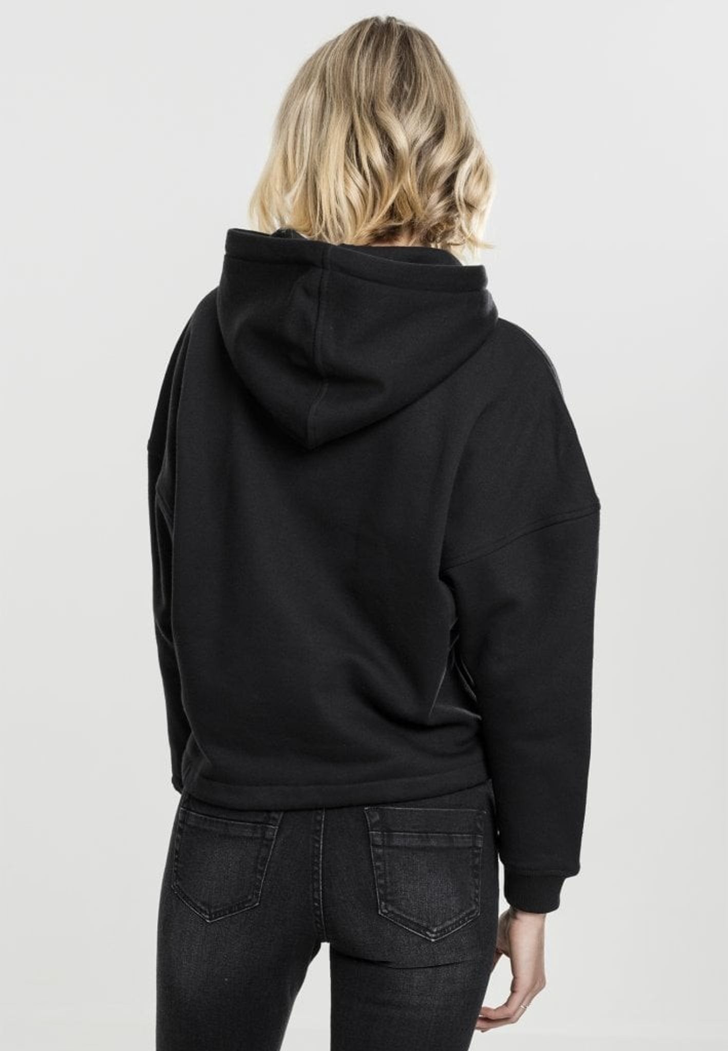 Huvtröjan har dolda sidfickor och mudd i armsluten. I nederkanten finns en dragsko precis som i huvan och banden är i samma färg som hoodien.