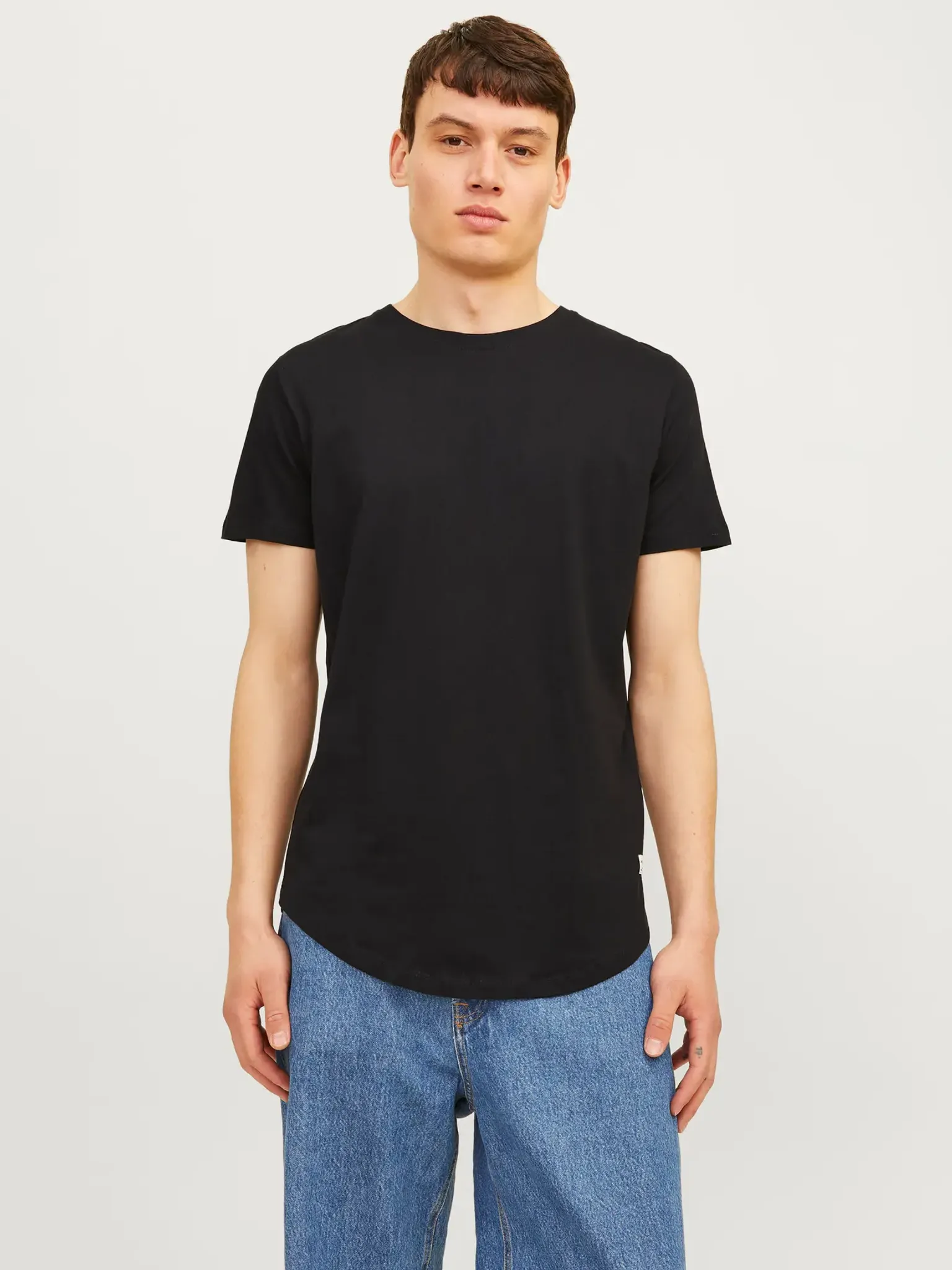 Den har en elegant rundad nederkant som bidrar till t-shirtens moderna utseende. Designen är enkel och stilren, vilket gör den till ett utmärkt val för både avslappnade och mer uppklädda tillfällen.