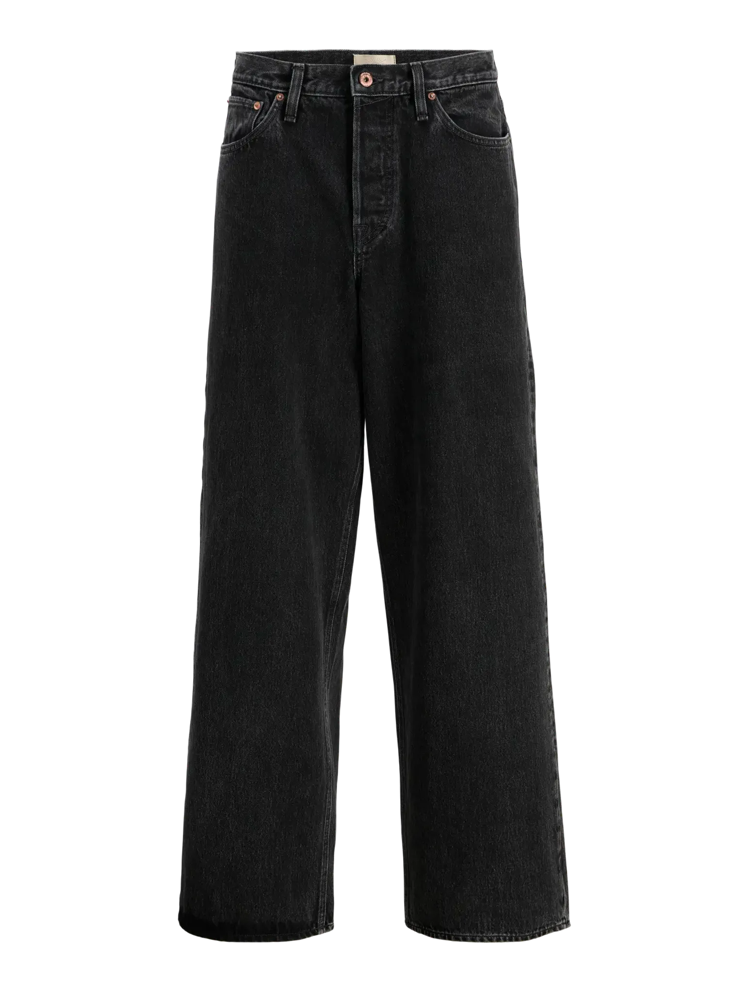 Detta är klassiska jeans med bred passform och hög resning, designade för att ge en tidlös och bekväm stil. De har en traditionell femficksdesign som gör dem både praktiska och stiliga.