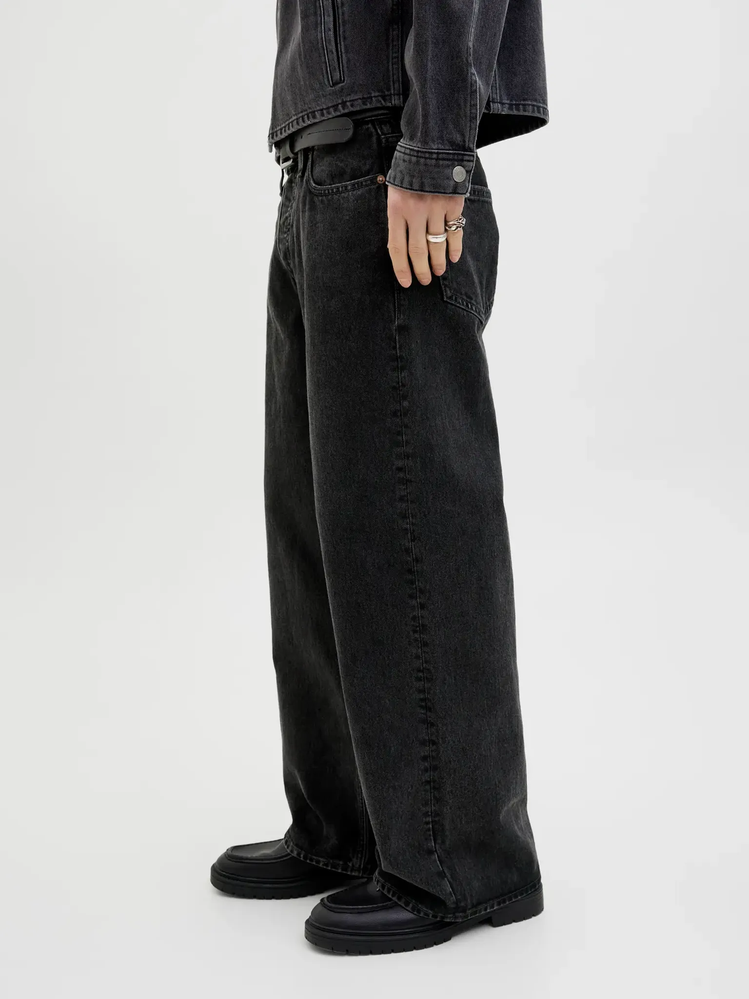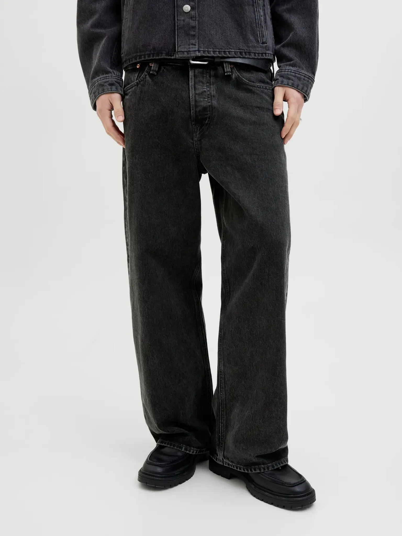 Med en hög midja och en bred passform, erbjuder dessa jeans en avslappnad känsla. De har en baggy passform vid låren och knäna, samt en vid benöppning som bidrar till en modern silhuett.