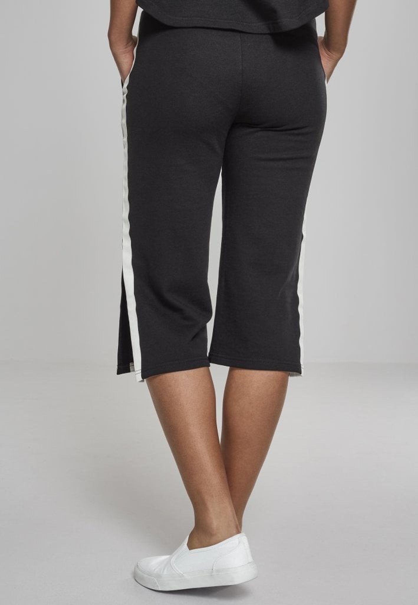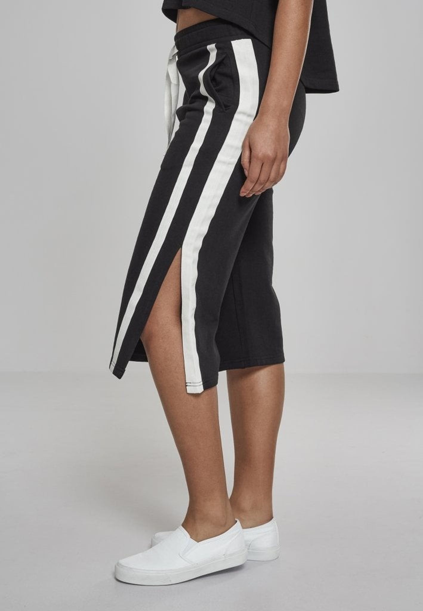 Byxan har vita ränder längs sidan och benen har en slits i varje sida.