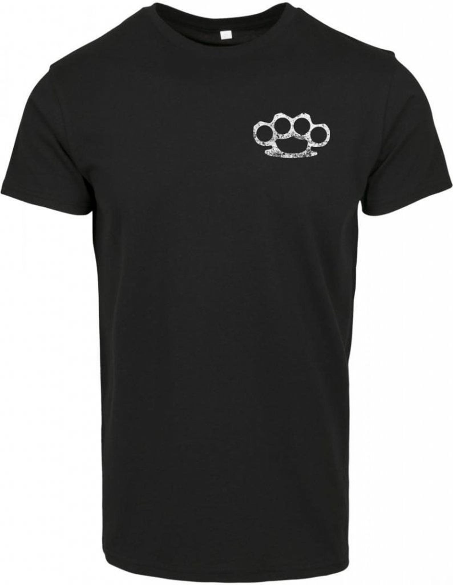 En stilren T-shirt i riktigt skön och hudvänlig bomull. T-shirten är något figursydd och i lite längre modell. På bröstet finns ett vitt tryck med ett slitet knogjärn.