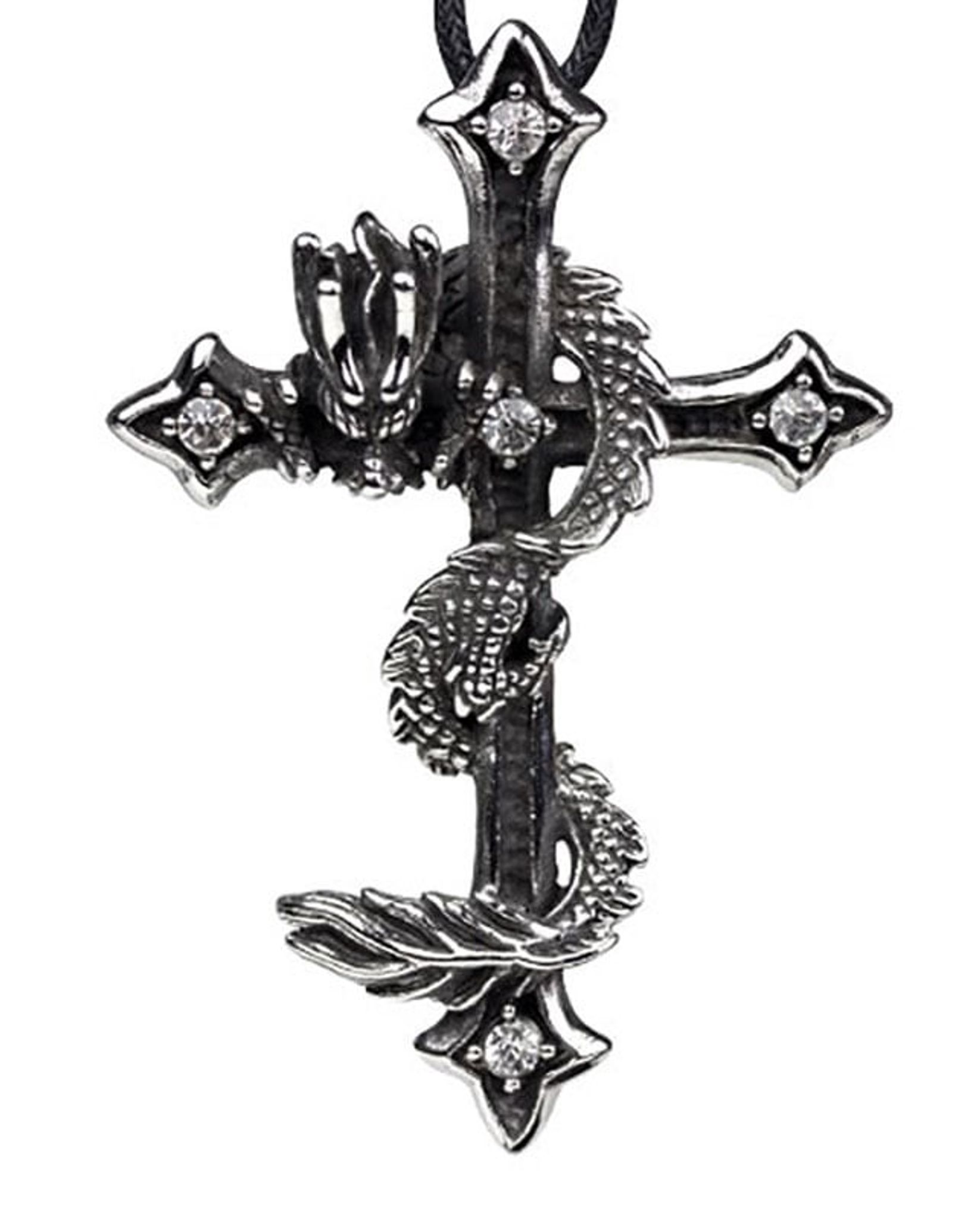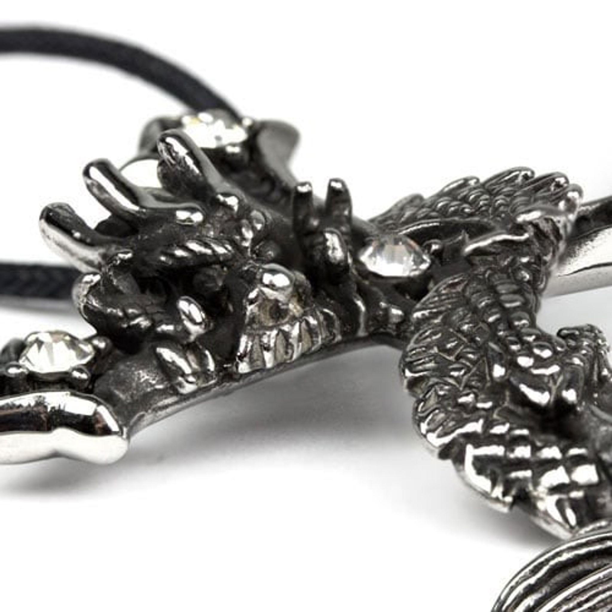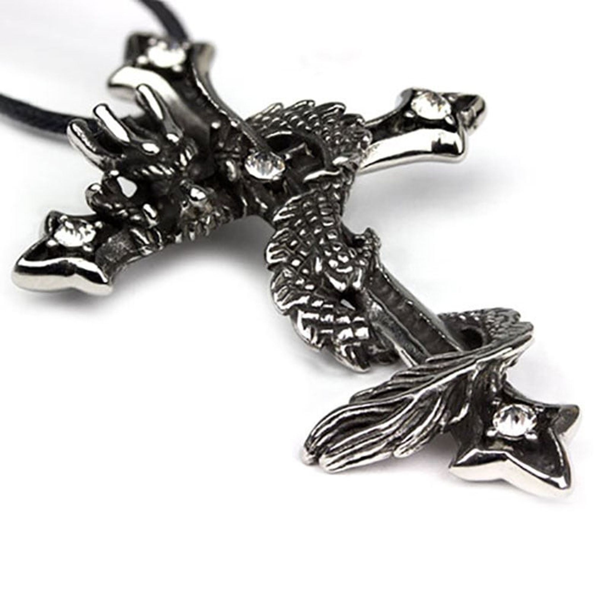 Tillverkat av robust rostfritt stål, är detta halsband inte bara vackert, utan även hållbart och tåligt. Den polerade ytan ger en sofistikerad glans som betonar drakens detaljering och korsets traditionella form.