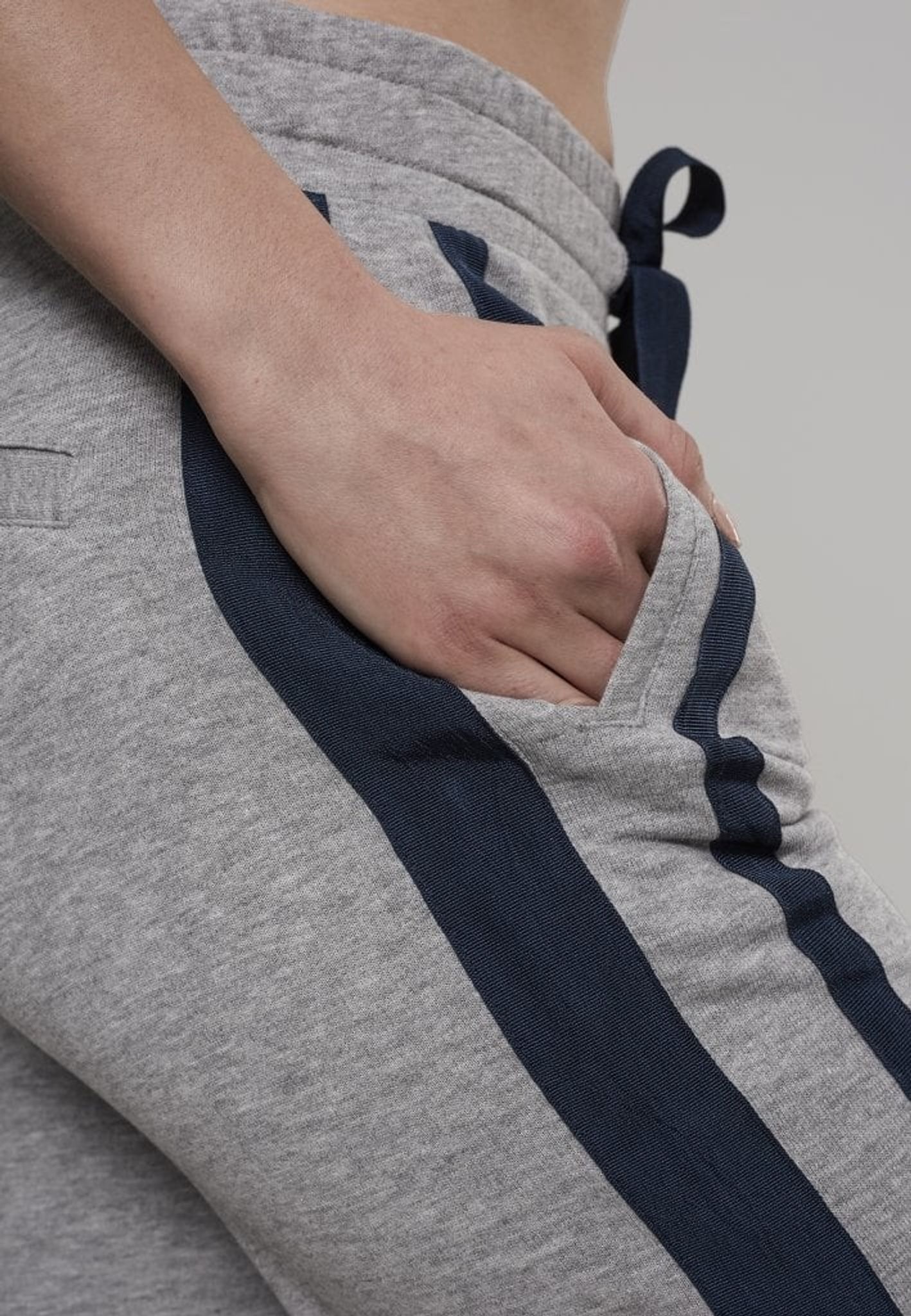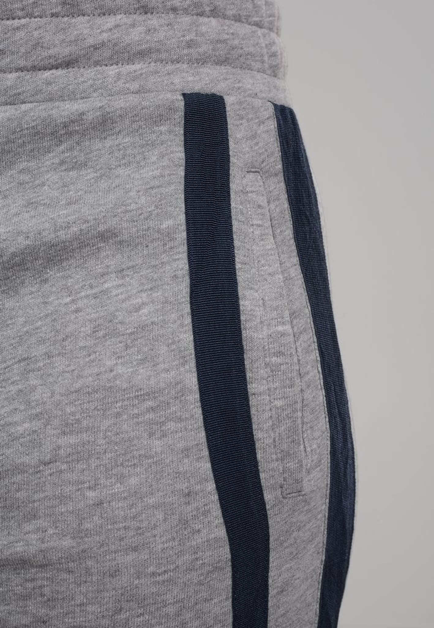 På sidan har byxan blåa ränder och två sidfickor.