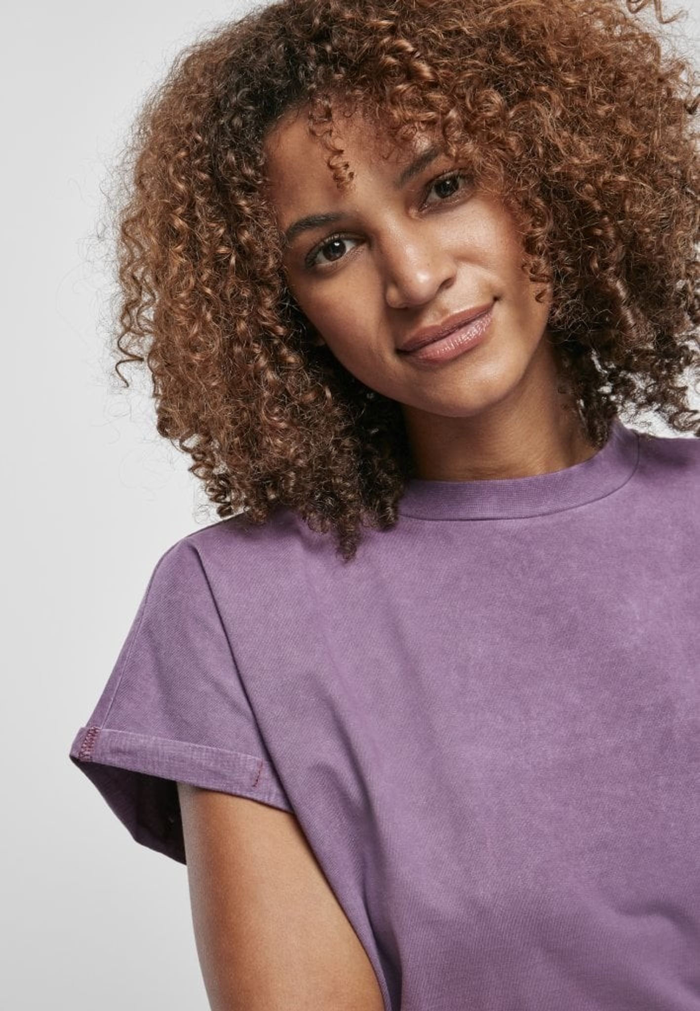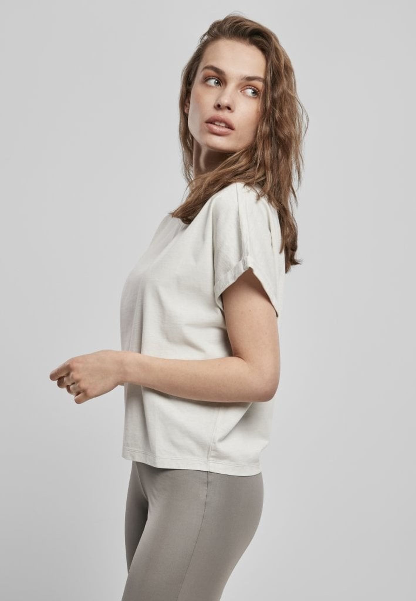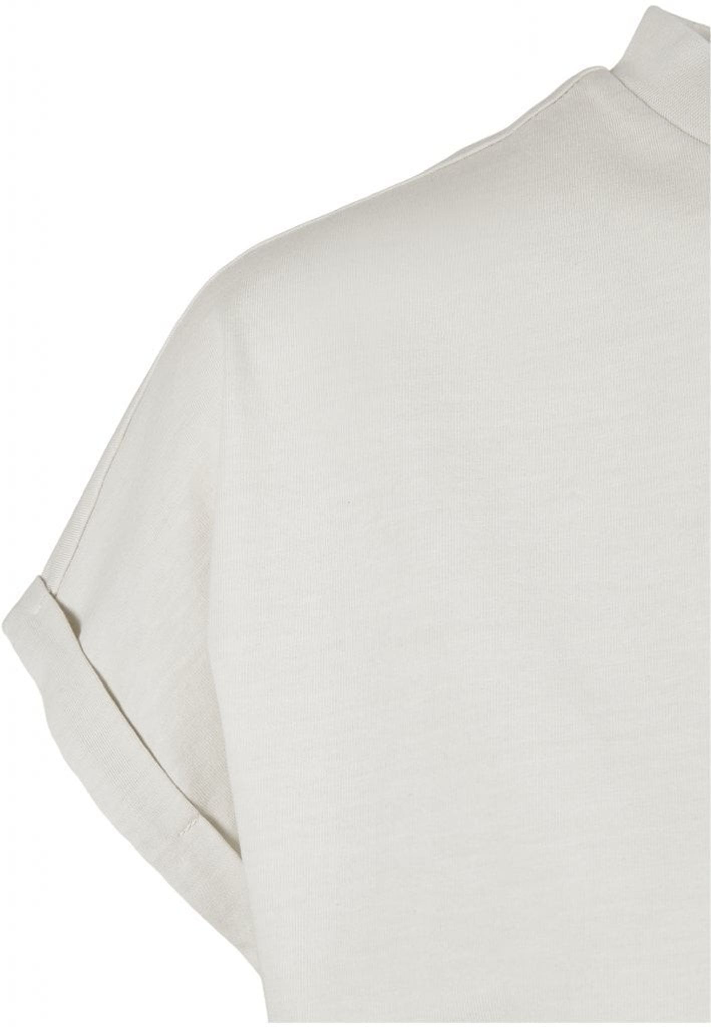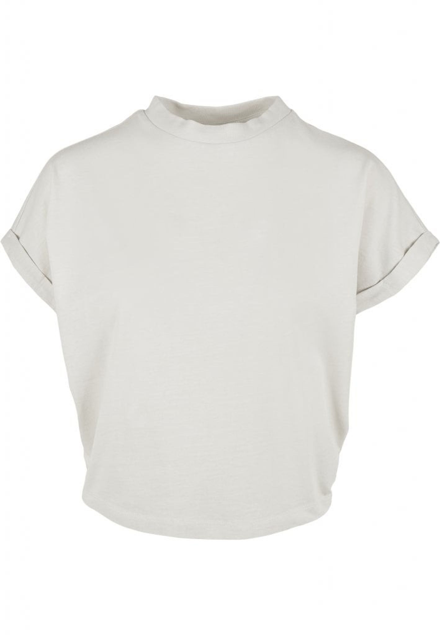 Denna t-shirt går högt upp i halsen och har en vid kort arm med små manschetter.