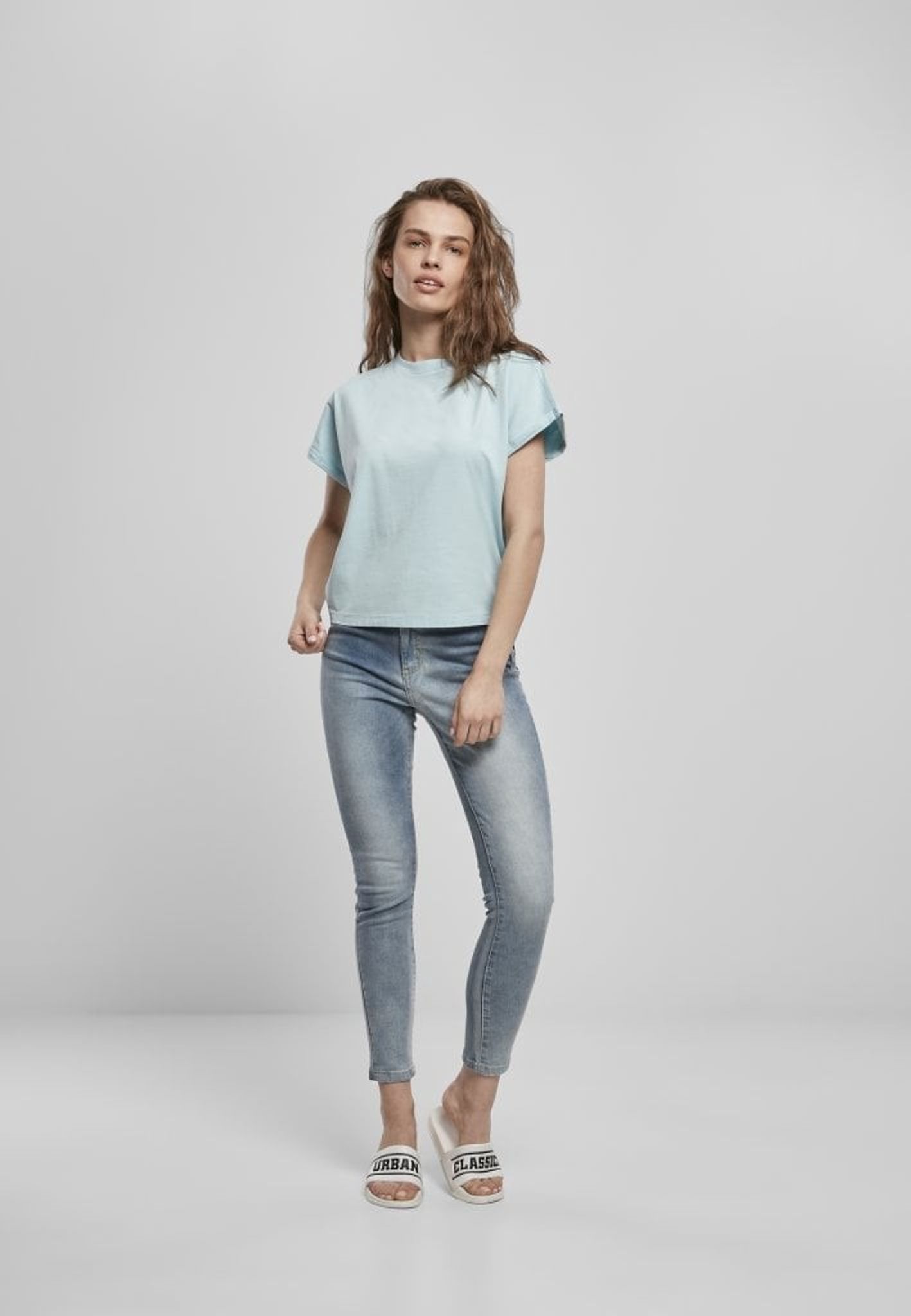 Kort dam t-shirt med nedhasad arm