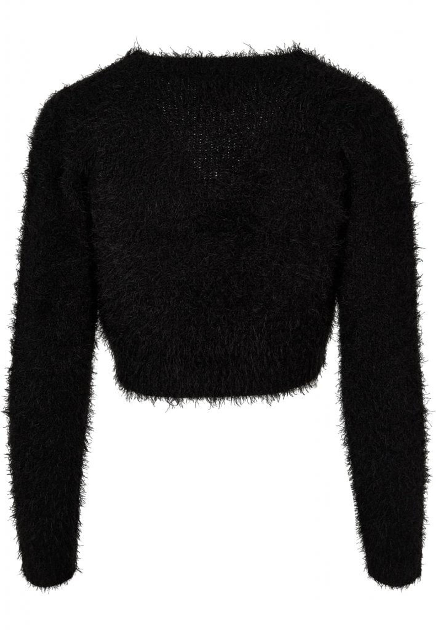 Det fluffiga och fjäderartade tyget är tillverkat av en mjuk materialmix av akryl och polyamid. Märkbart är också de broderade muddarna och fållarna med olika mönster. Denna kofta för damer har en smal passform som framhäver figuren.