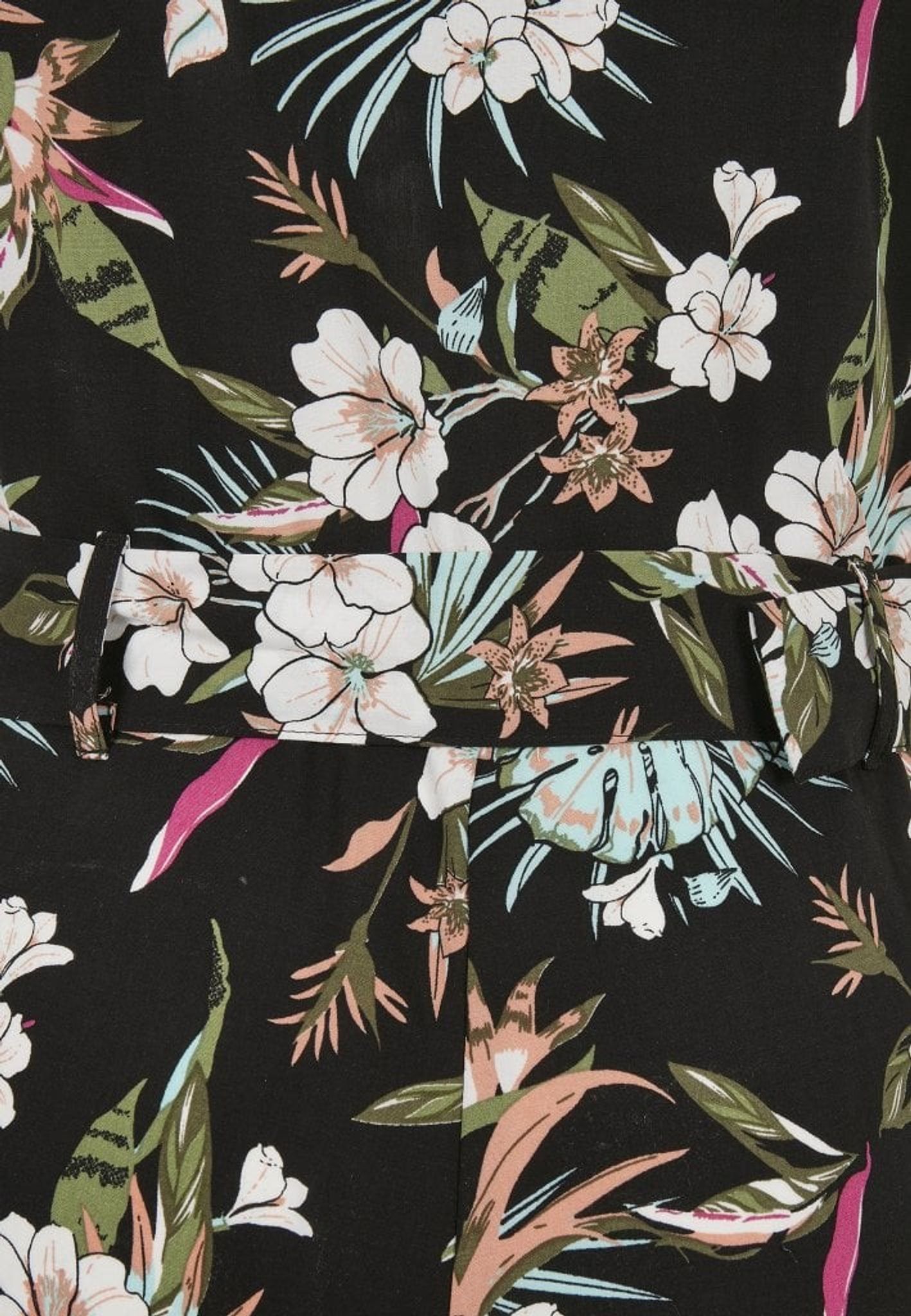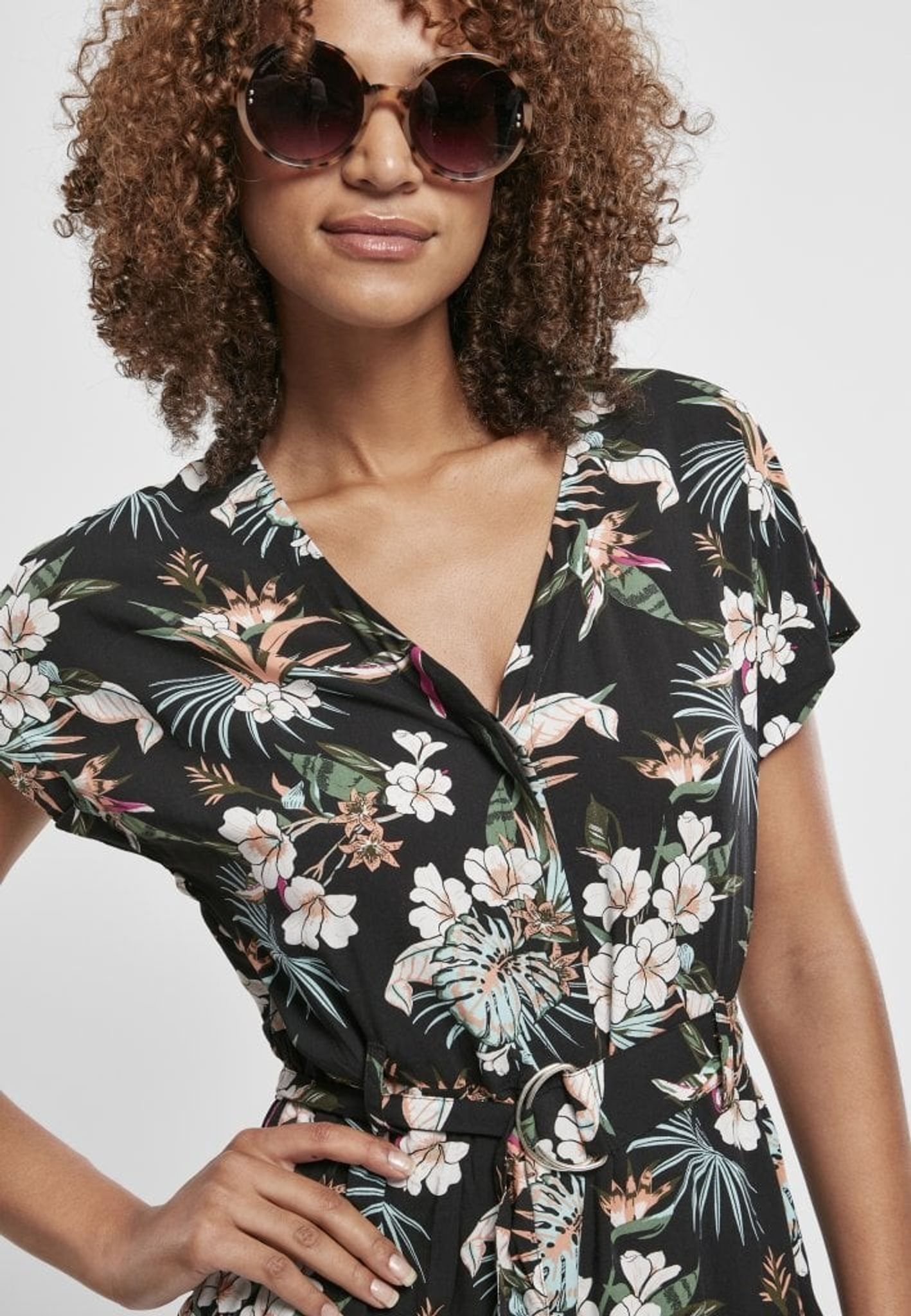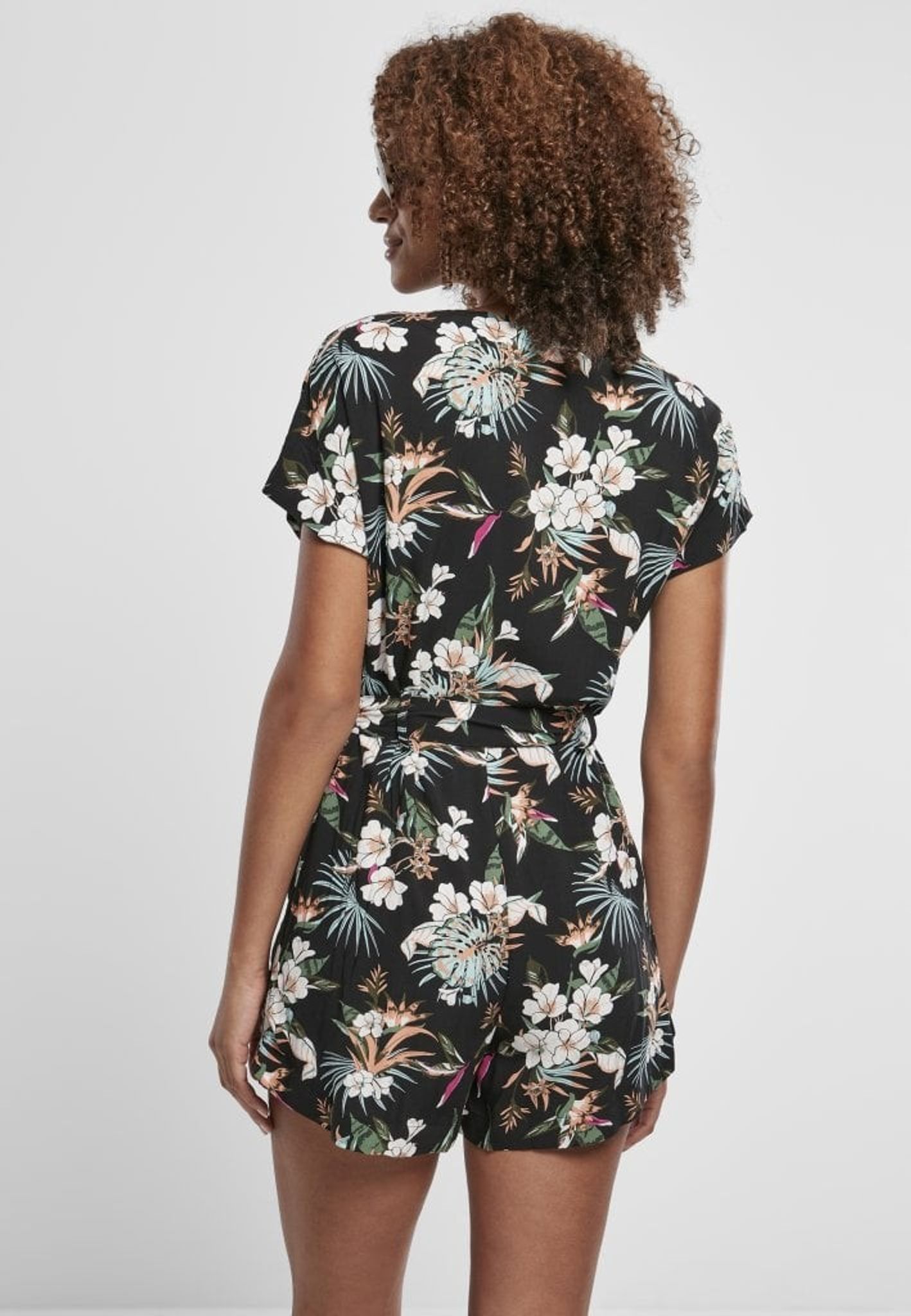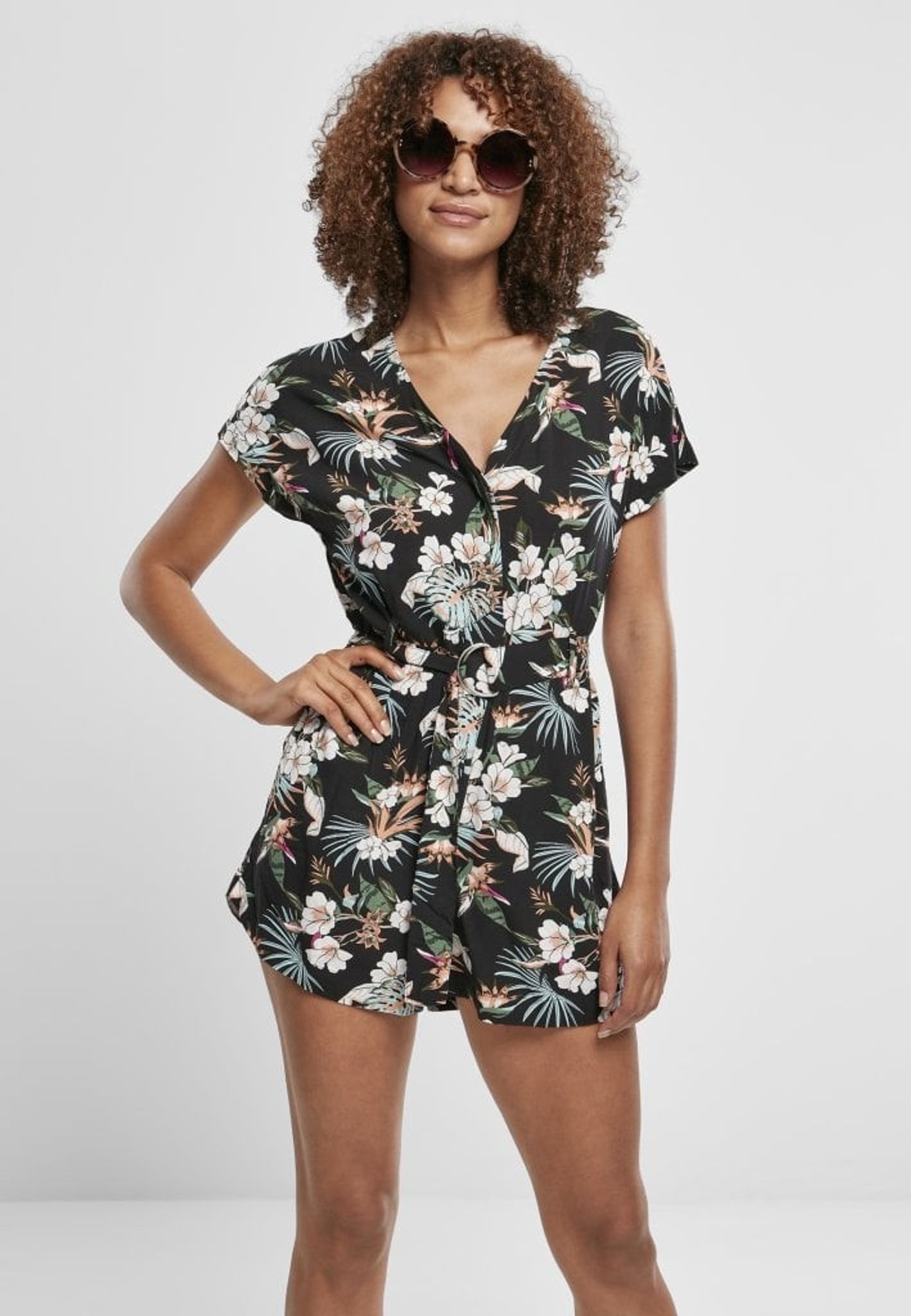 En v-ringad jumpsuit i ett härligt tropiskt blommönster eller kanske man väljer helsvart.