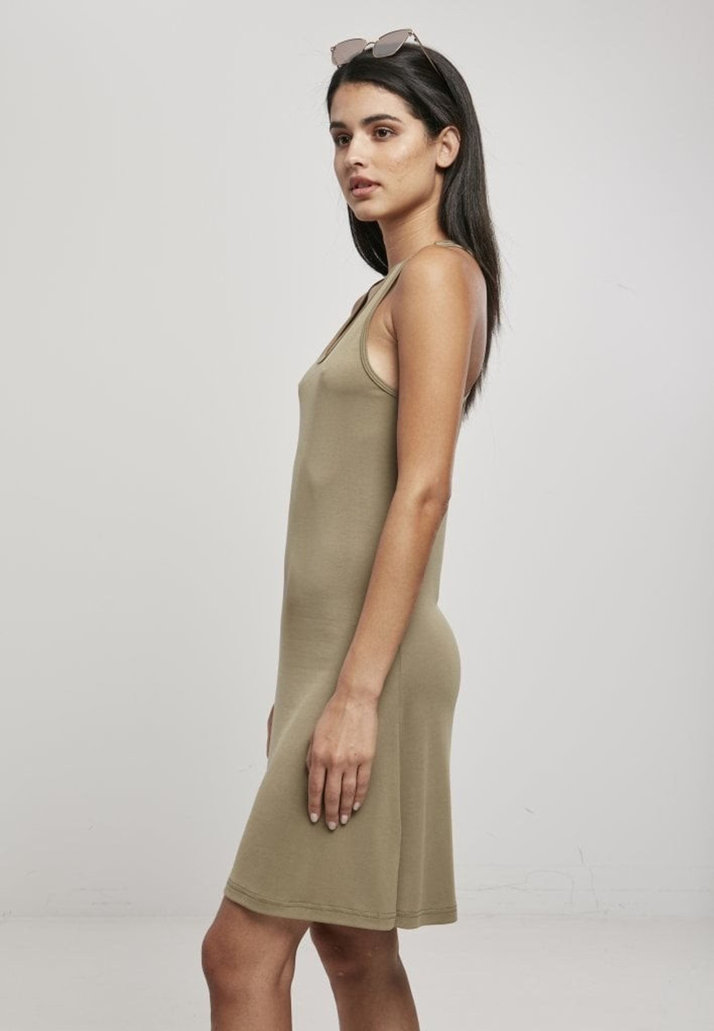I ryggen är en skärning som gör att skuldrorna är bara vilket gör att klänningen får ett sportigt utseende.