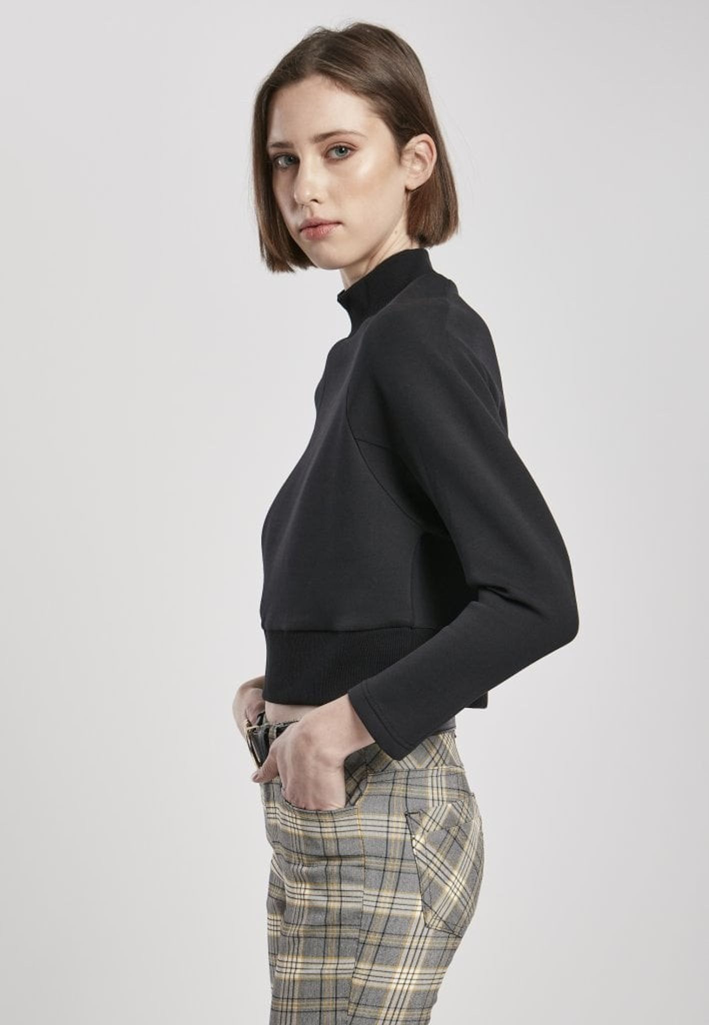 En tröja med kort snitt men med en stor bredd som gör att man kan röra sig obehindrat i den.