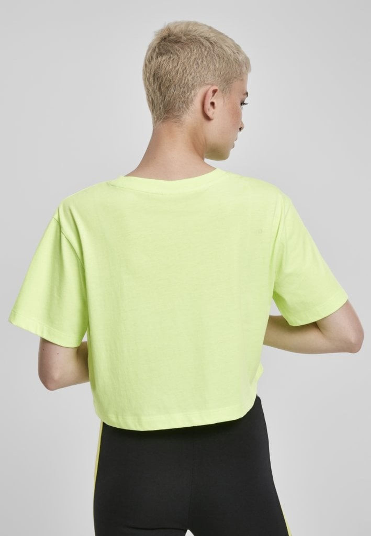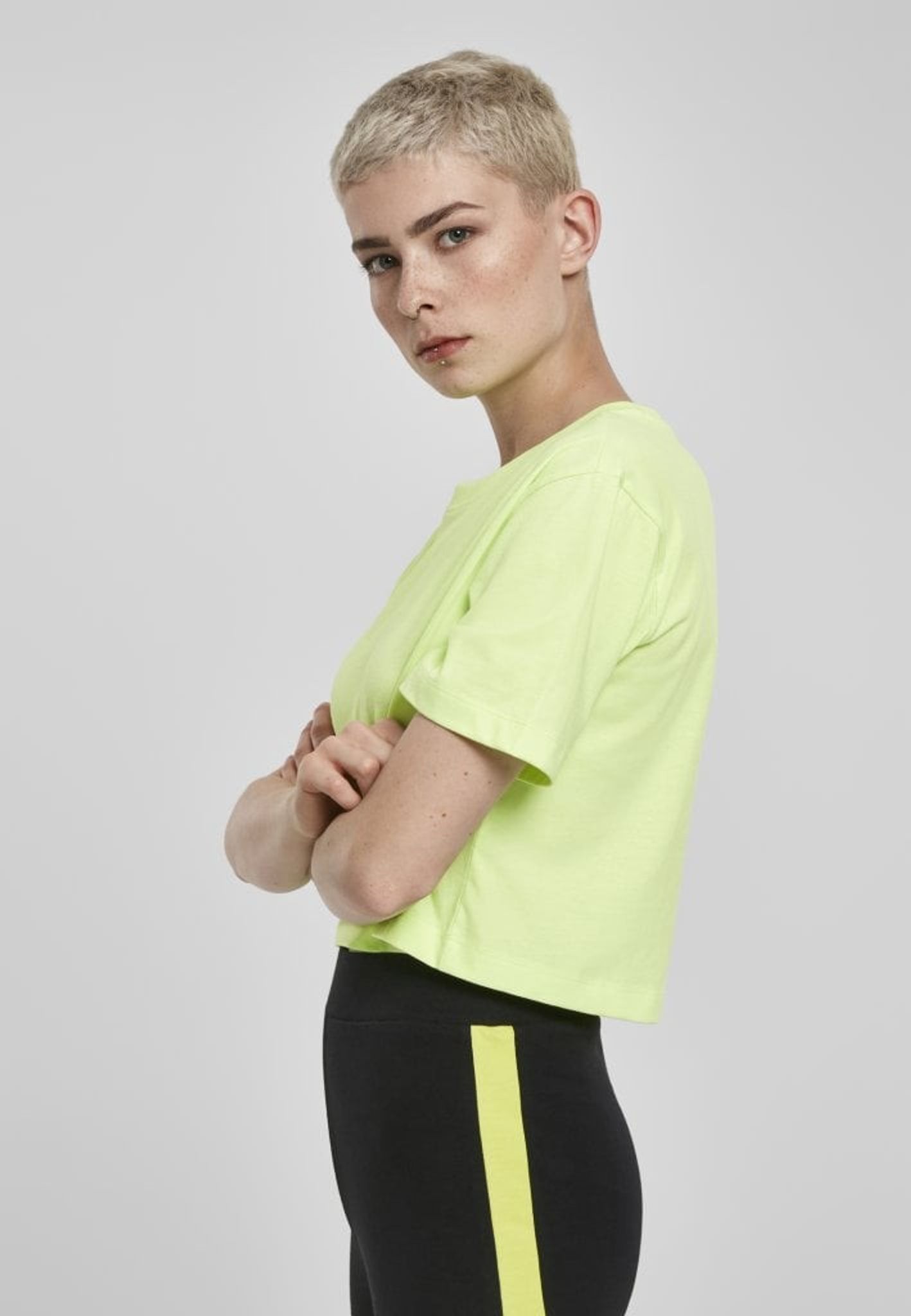Halsen är rund och armrna är nedhasade och når ner till armbågen.