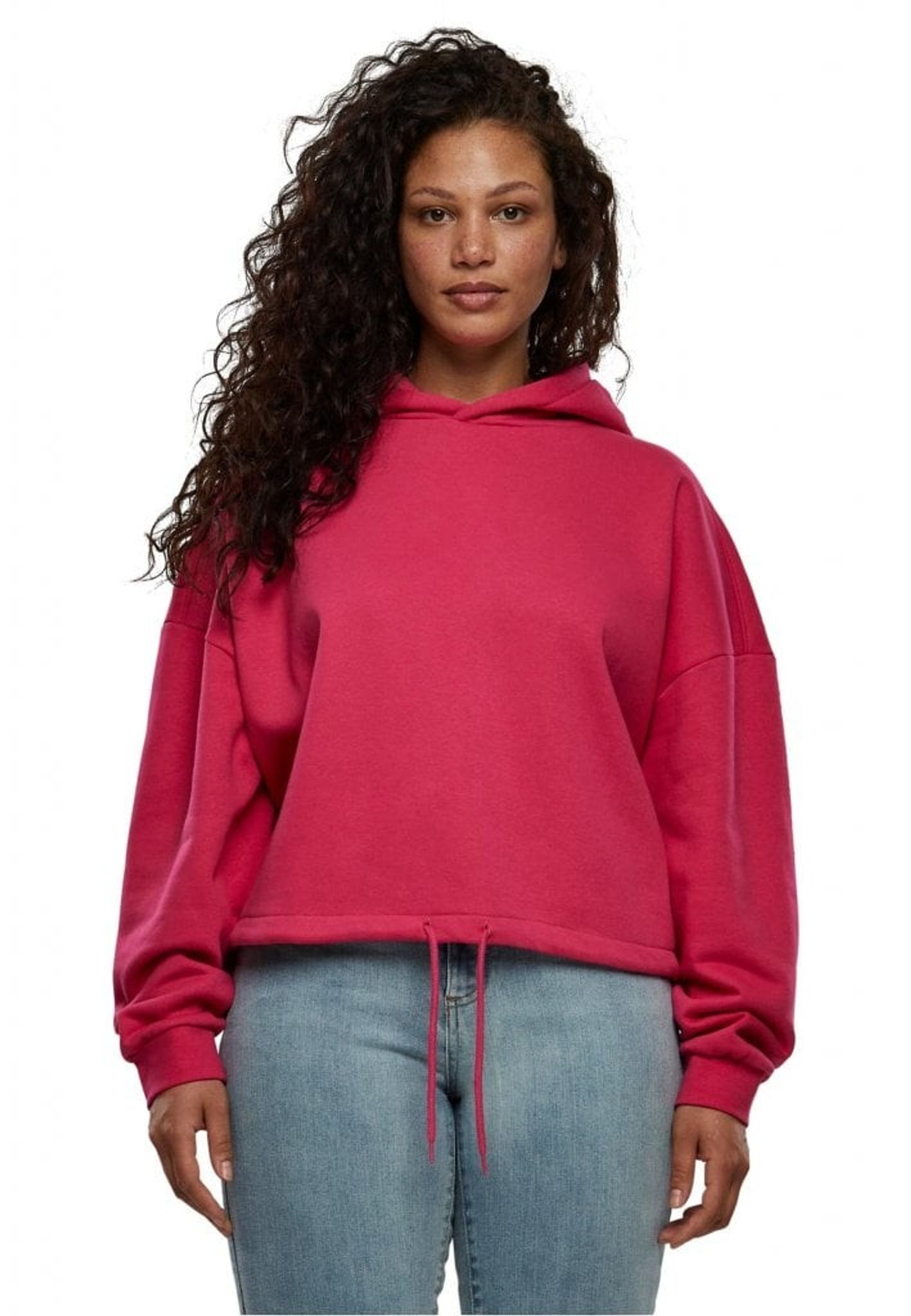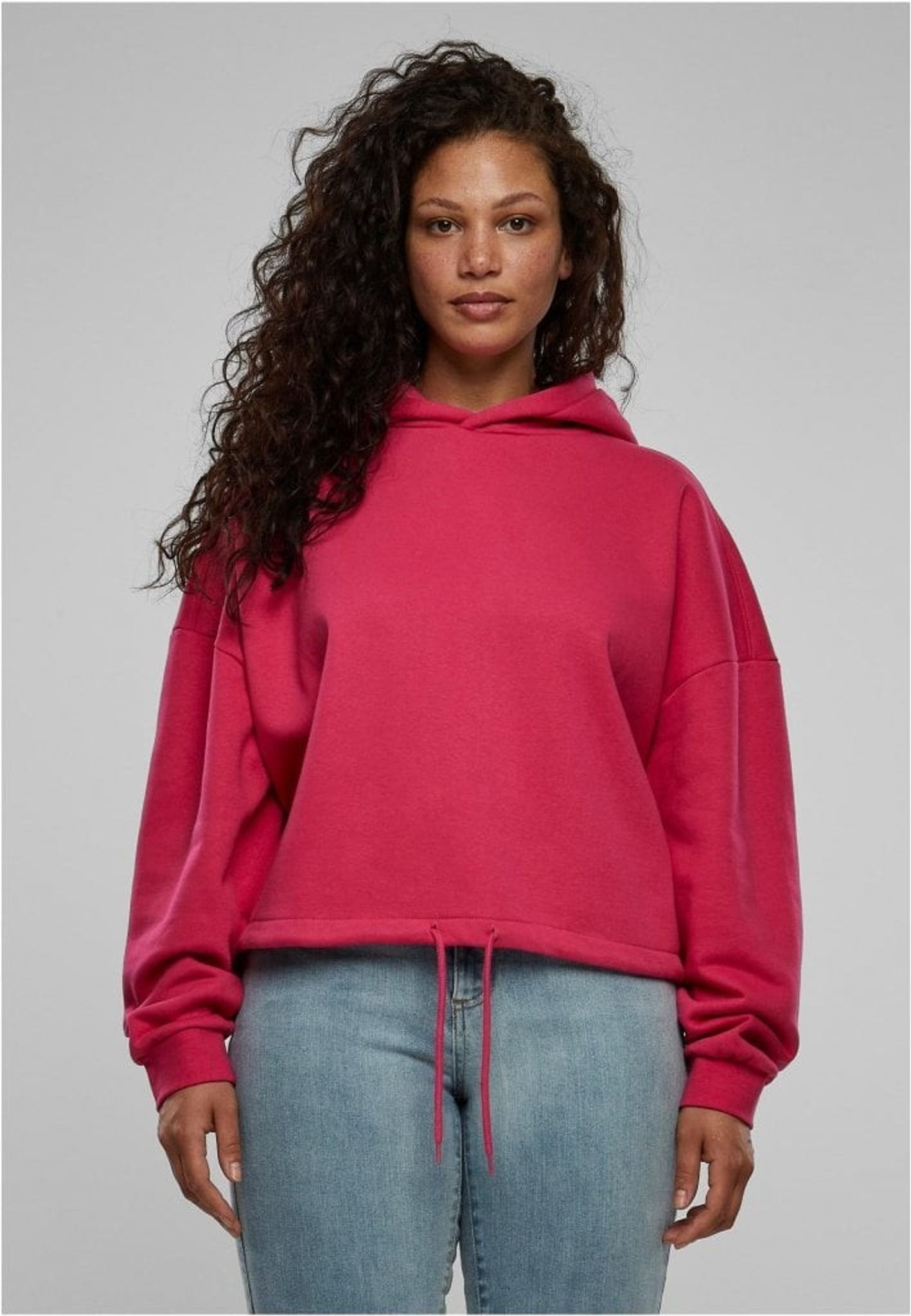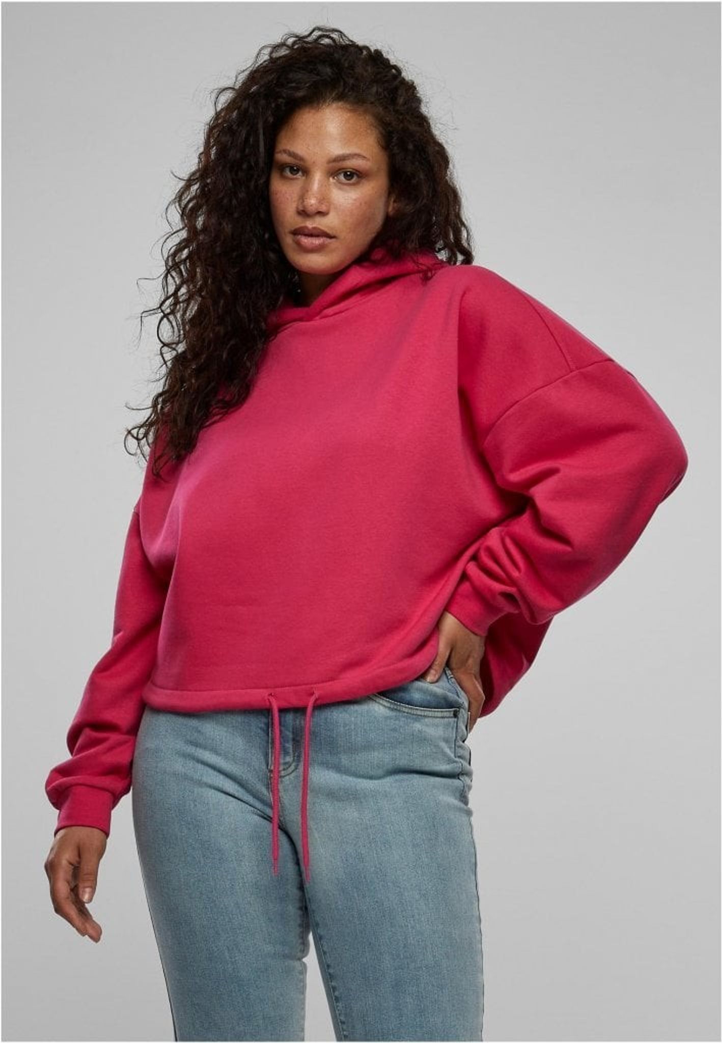 Denna korta oversized hoodie för damer är en fantastisk modeartikel med sin avskurna längd och dragsko i fållen. Den korta längden går hand i hand med den avslappnade, oversizeda passformen och matchande droppade axlar. Tröjans stil kompletteras av dess huva och breda ribbstickade muddar. Hoodien är tillverkad av slät borstad fleecefrotté.