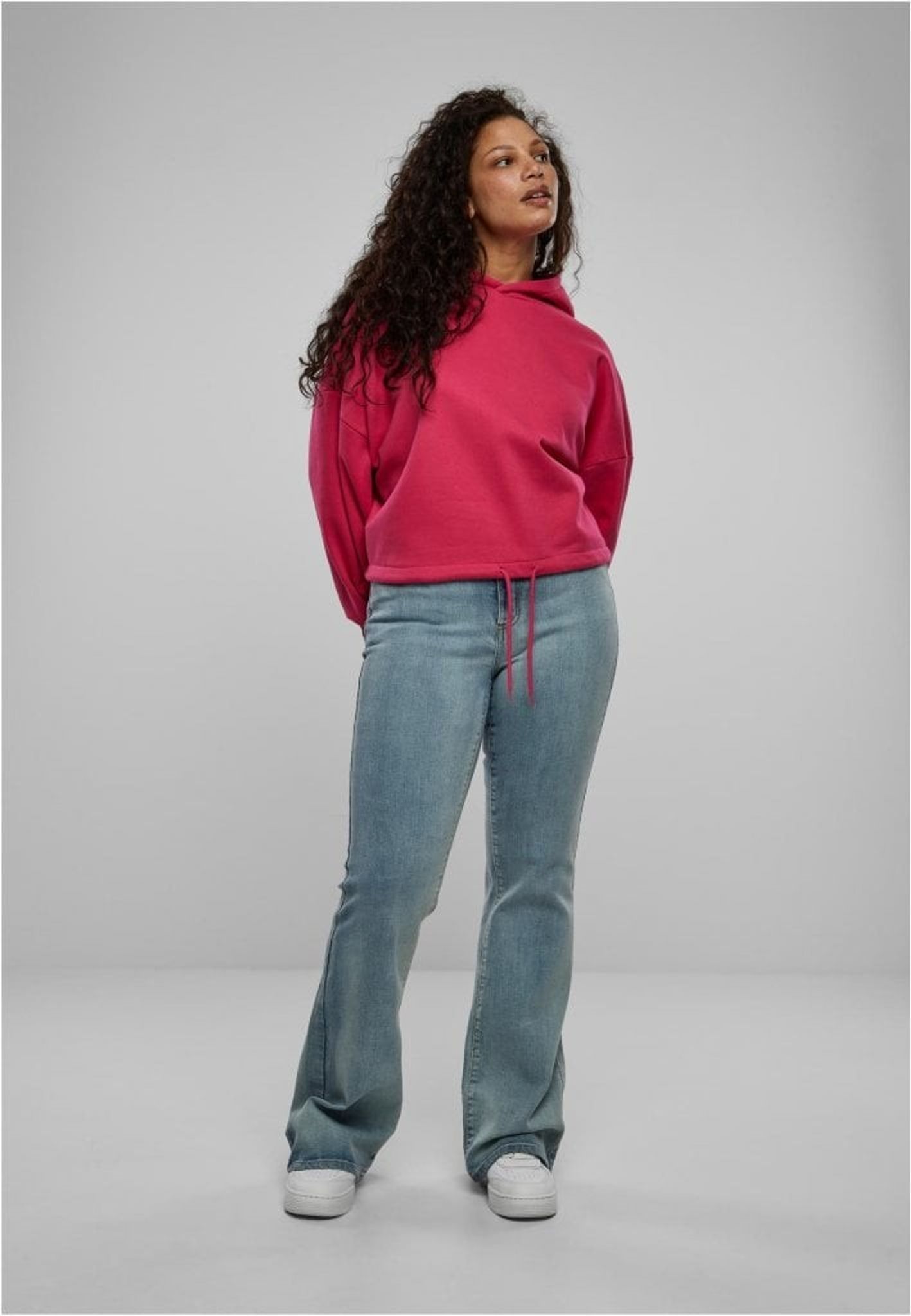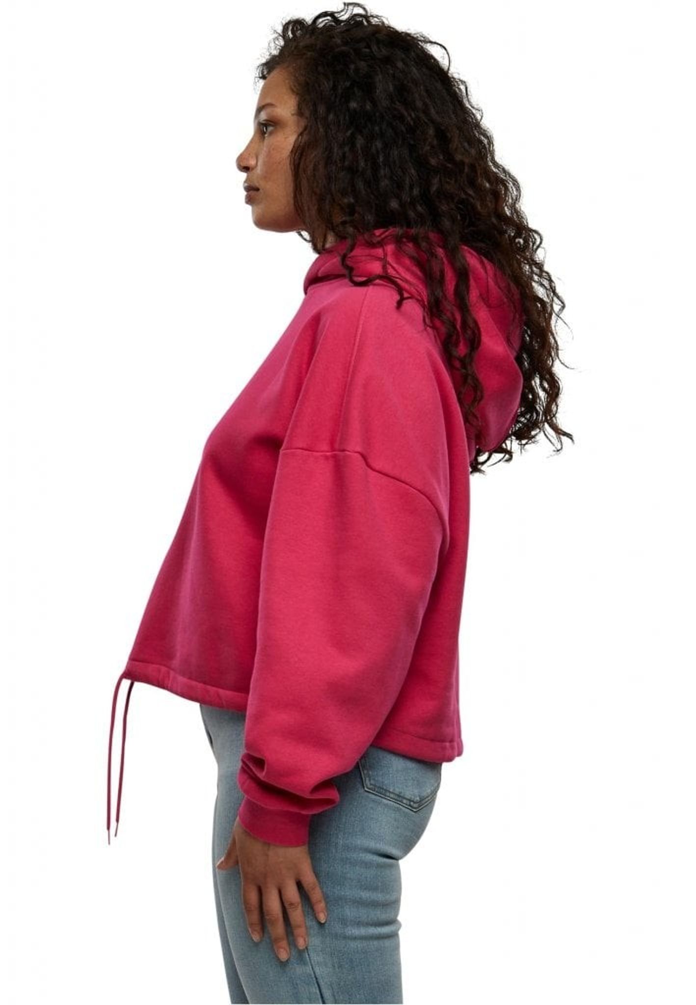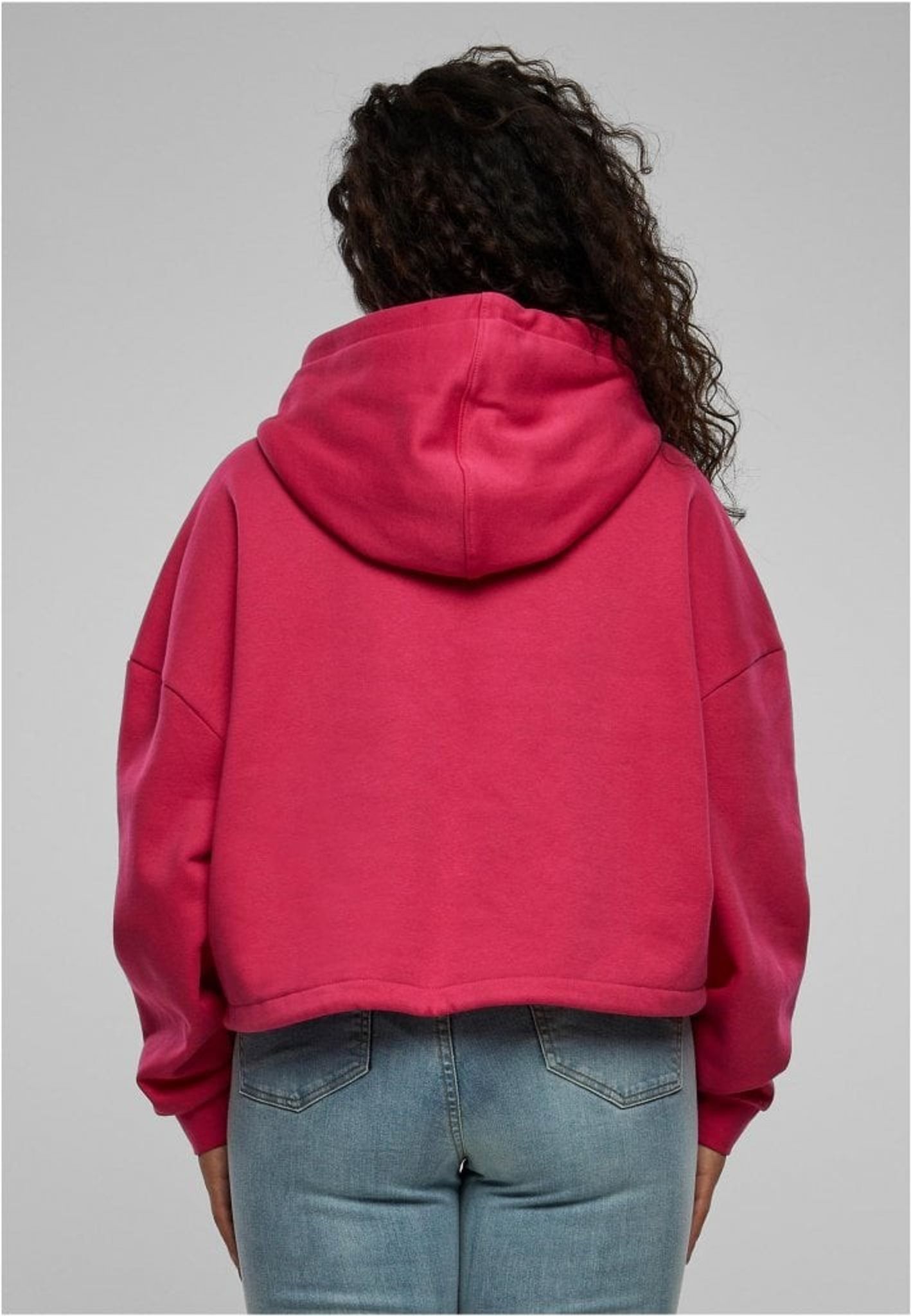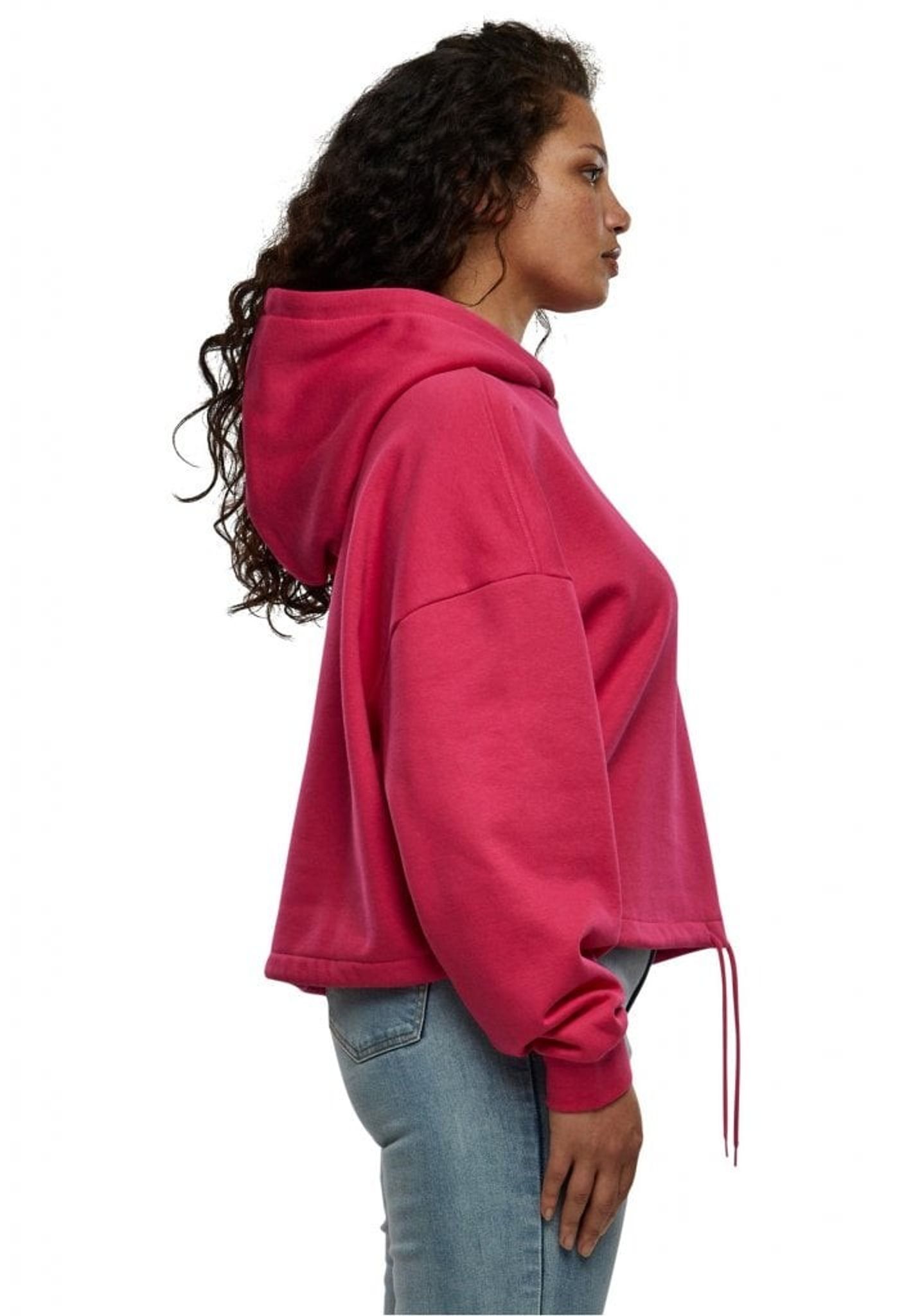 Denna korta oversized hoodie för damer är en fantastisk modeartikel med sin avskurna längd och dragsko i fållen. Den korta längden går hand i hand med den avslappnade, oversizeda passformen och matchande droppade axlar. Tröjans stil kompletteras av dess huva och breda ribbstickade muddar. Hoodien är tillverkad av slät borstad fleecefrotté.