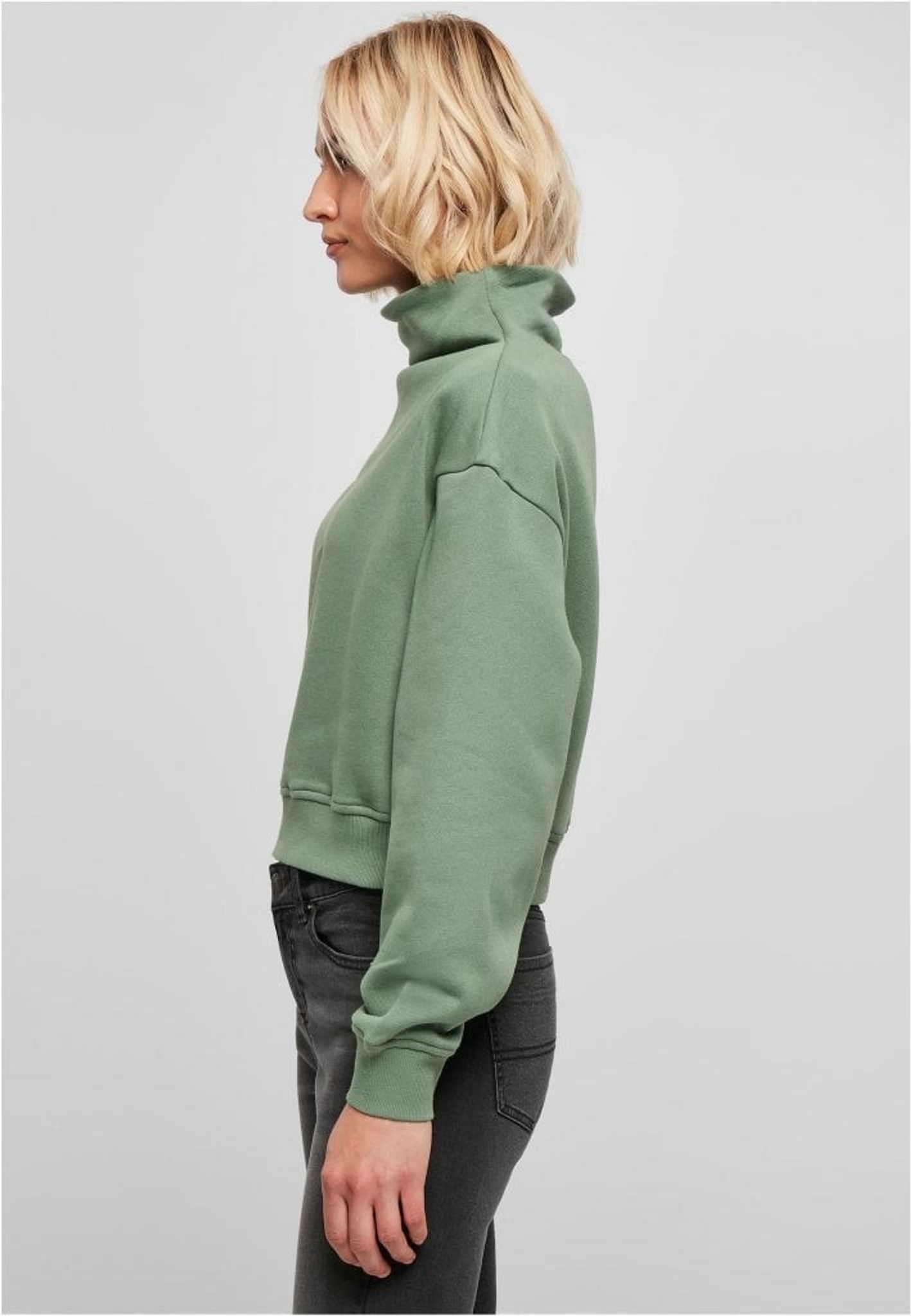 Med en kort längd och en hög, bred ståkrage är denna sweatshirt med rund hals en elegant och avslappnad mode kompis. En sportig oversize passform med nedfällda axlar och breda muddar på ärmar och fåll är perfekt längs den allmänna designlinjen. Denna sweatshirt är gjord av slät ekologisk bomull.