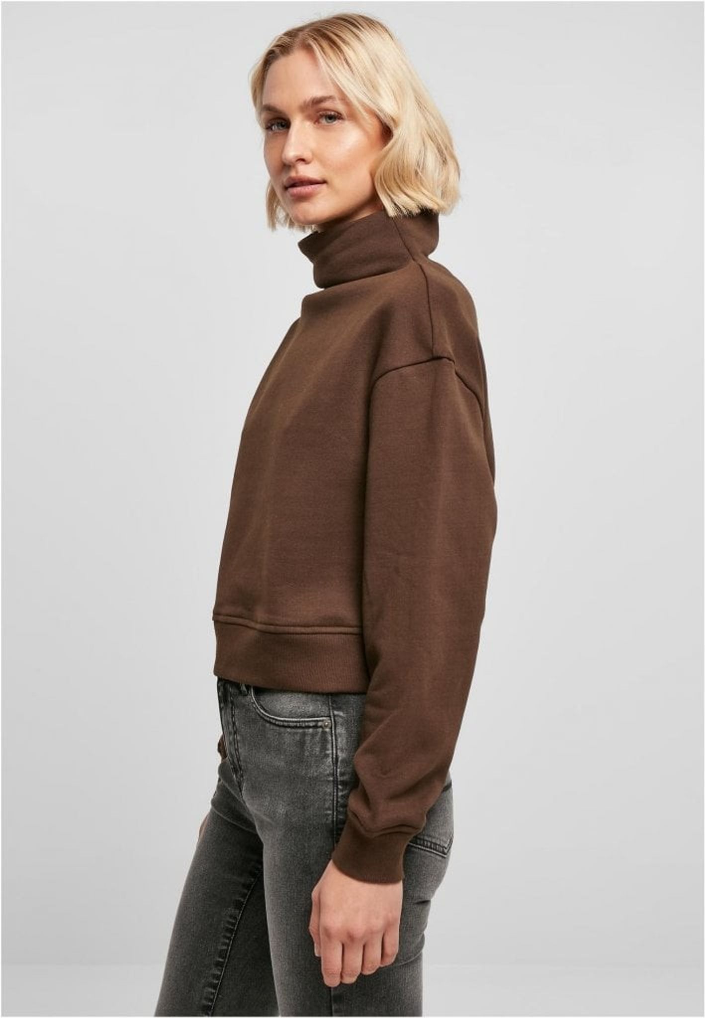 Kort sweatshirt med hög krage.