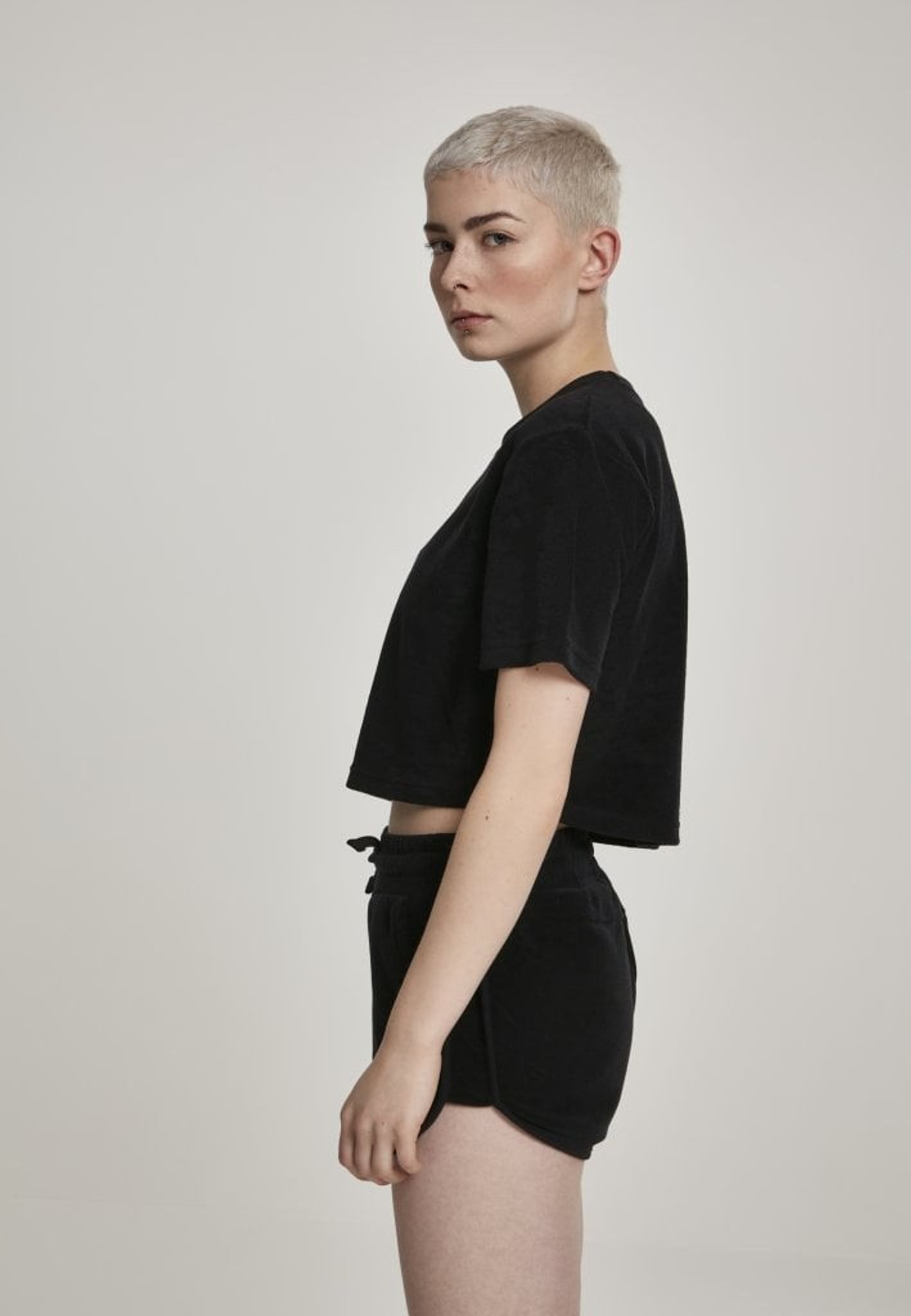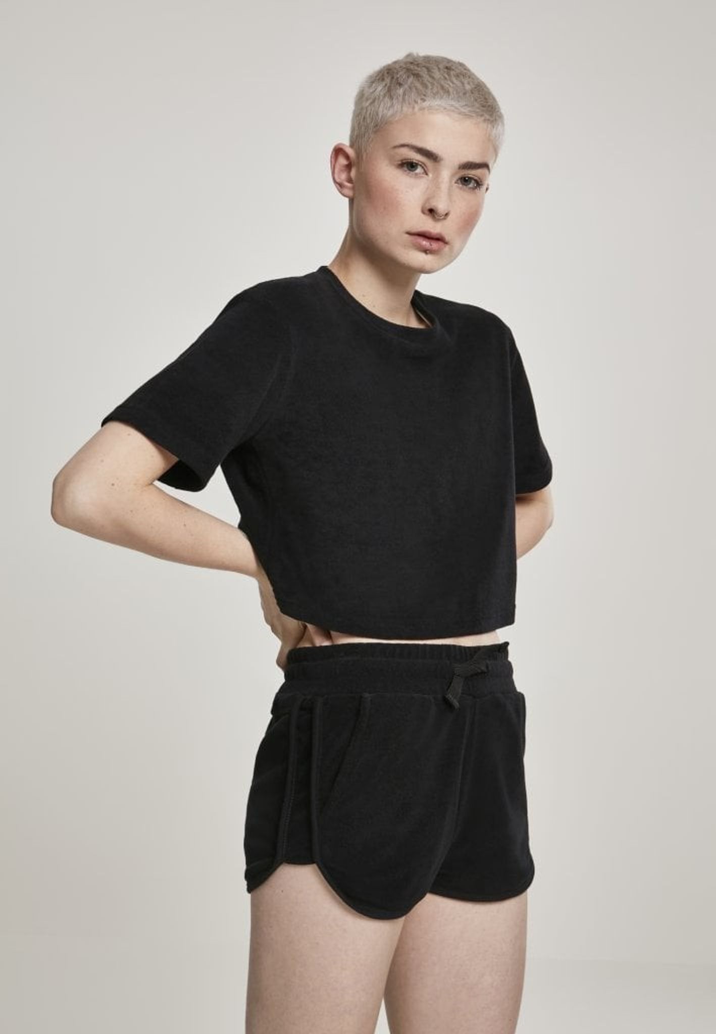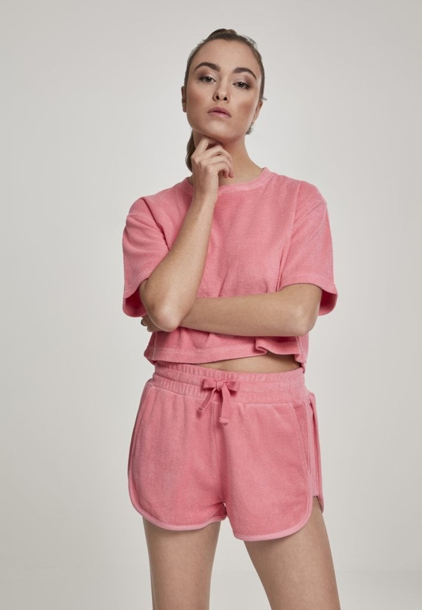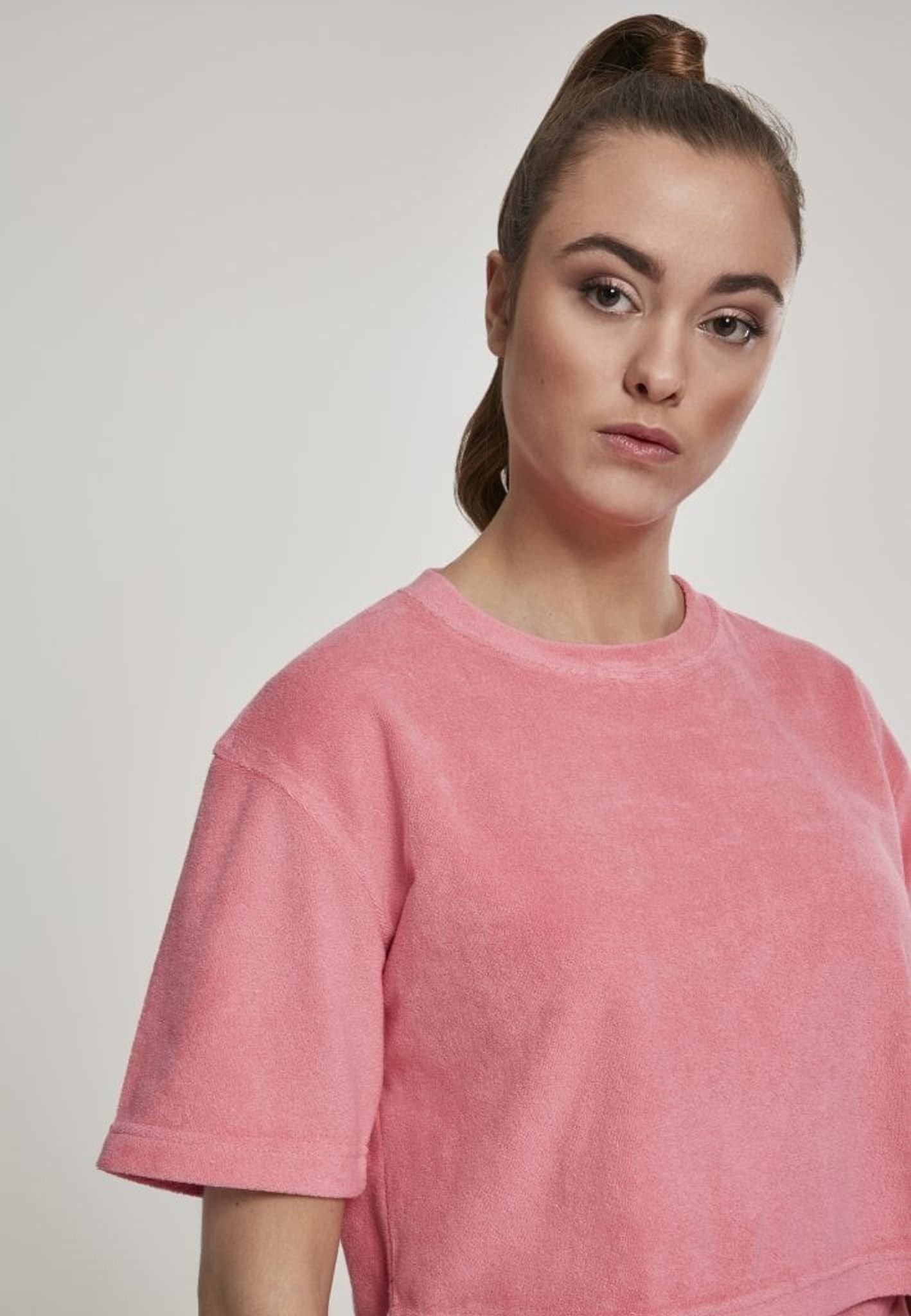 Denna t-shirt är helt i frotté och i en kort, oversizemodell.