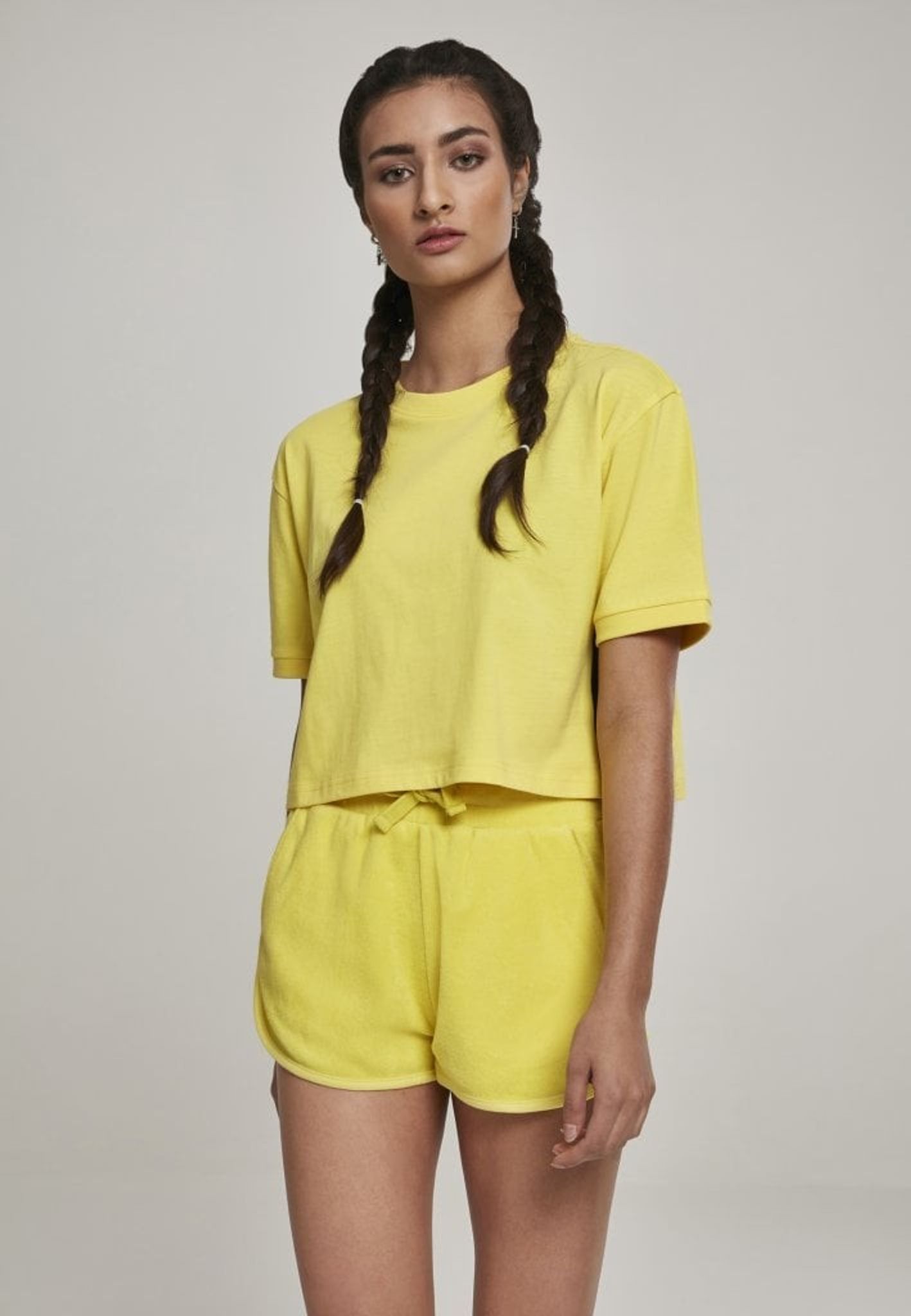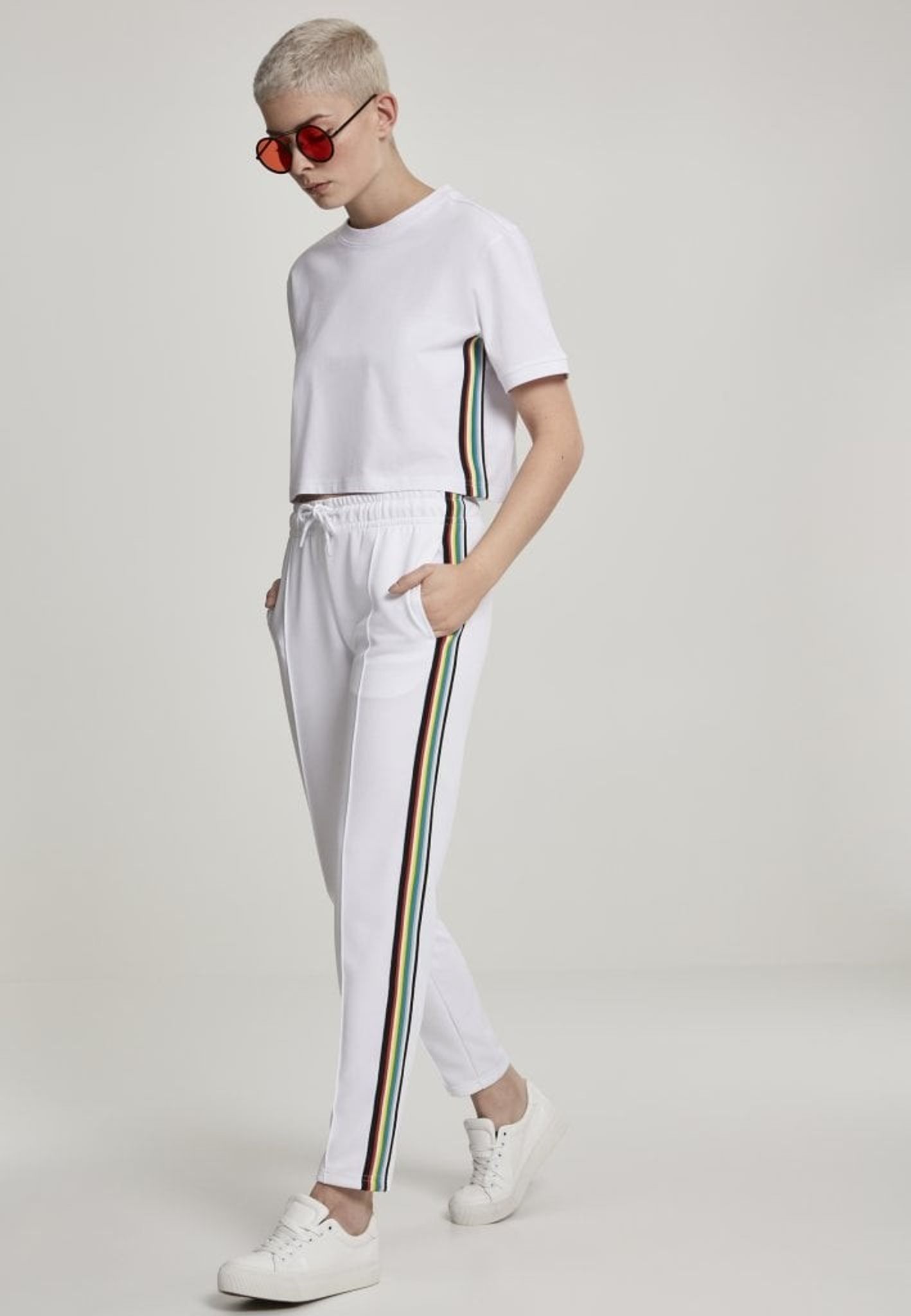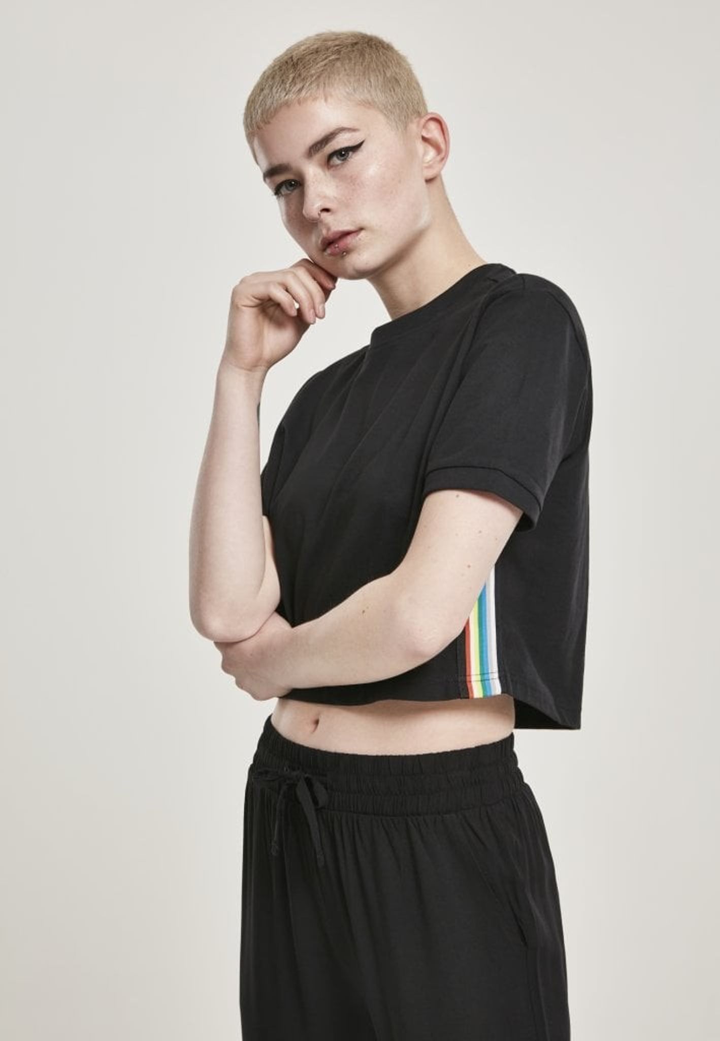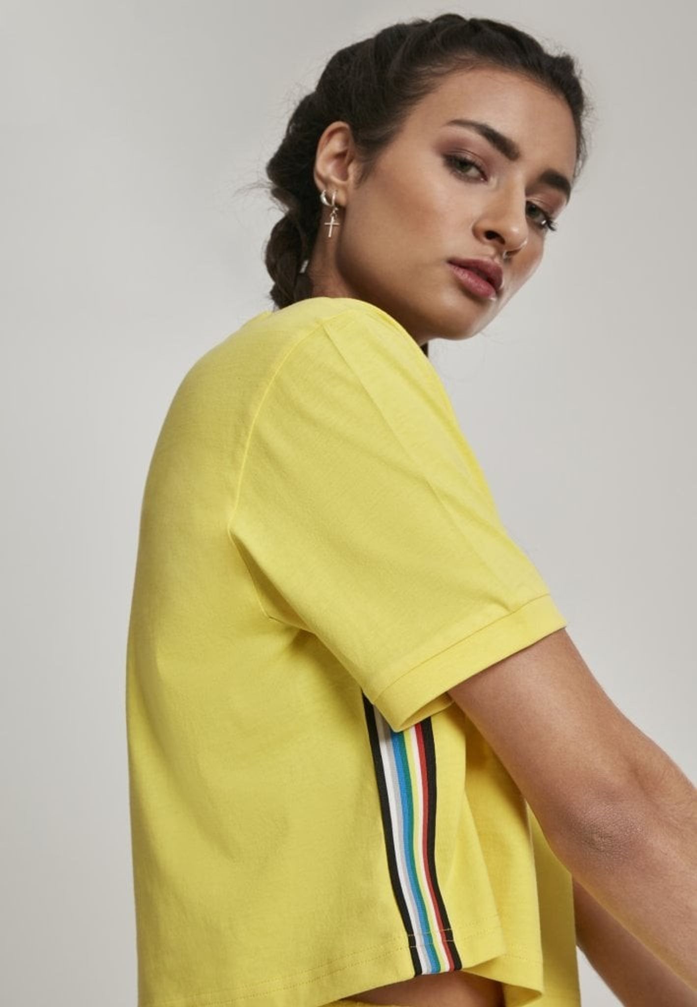 En enkel sportig, kort, bred t-shirt med färgrand på sidorna.