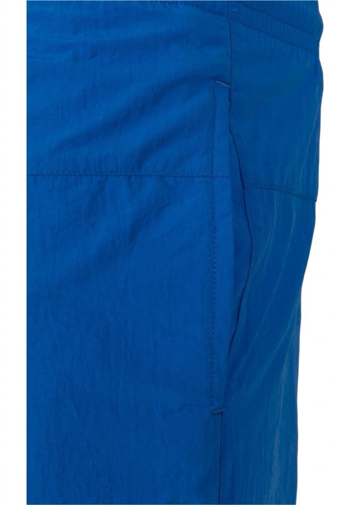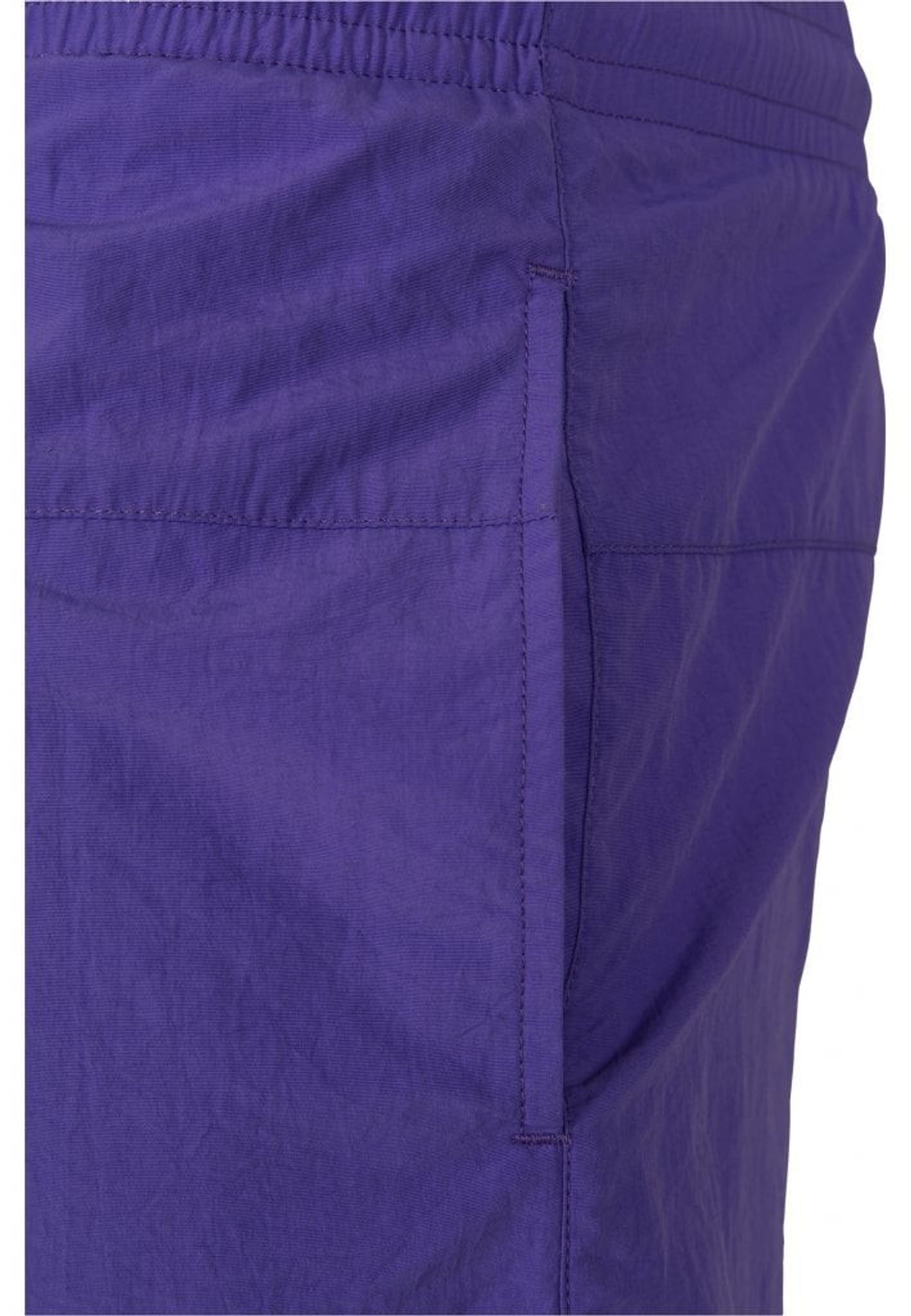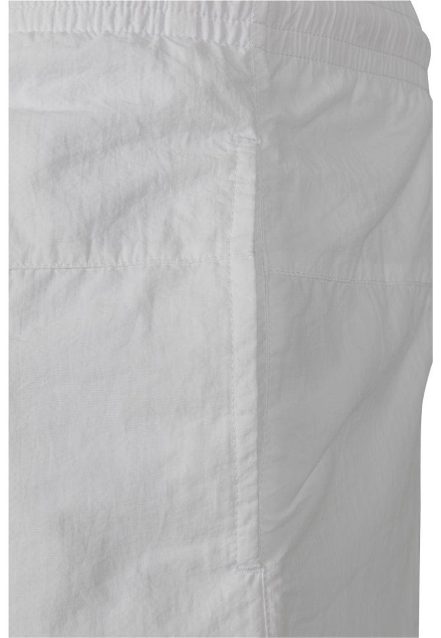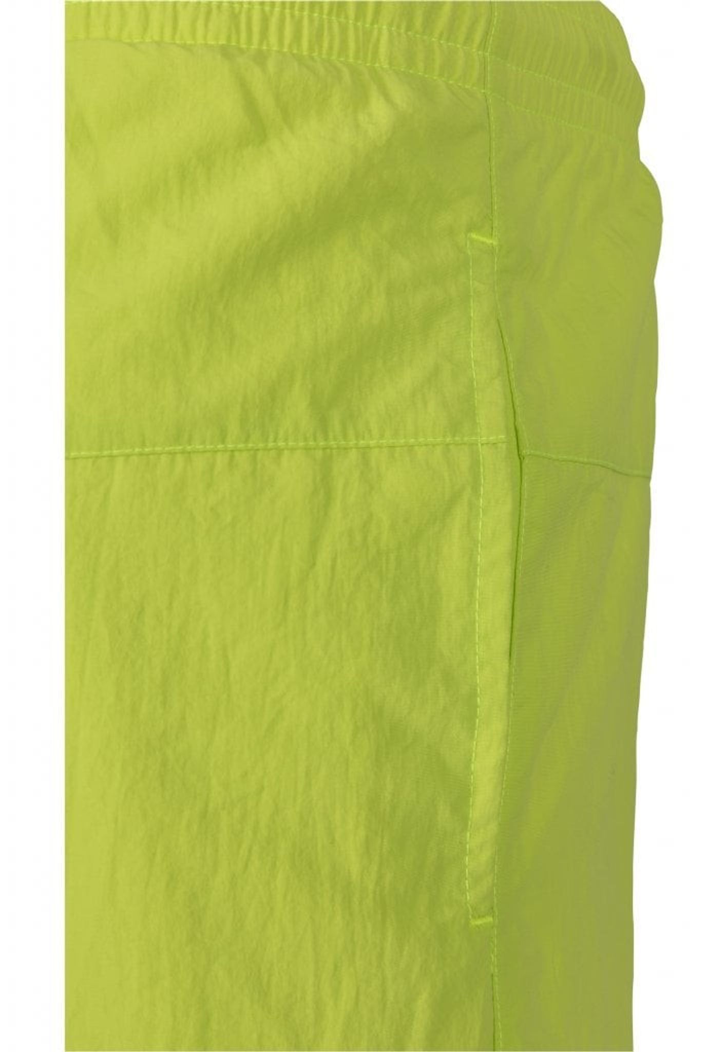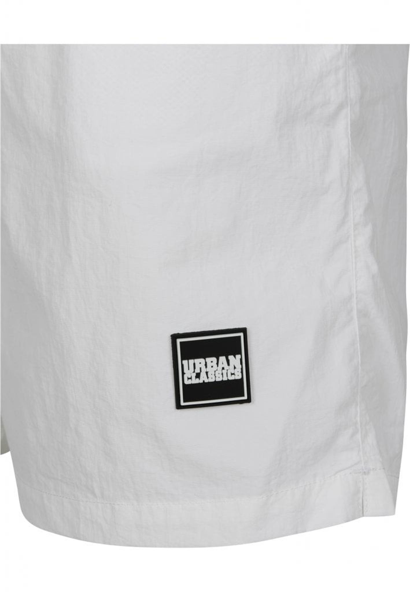 Ett par enkelfärgade badshorts med dubbla sidofickor och en bakficka med dragkedja.