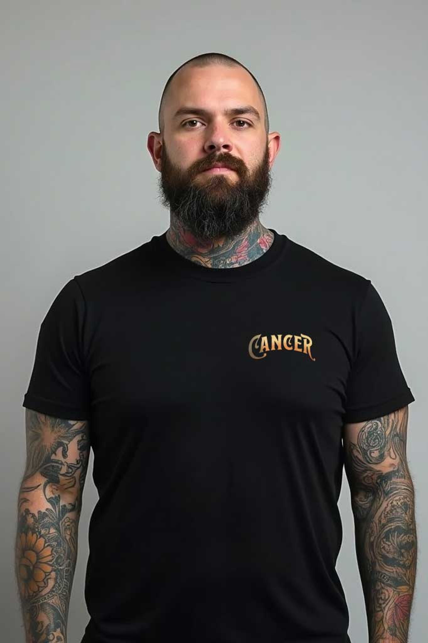 Framtill på bröstet finns diskret texten "Cancer", som subtilt lyfter fram din astrologiska identitet utan att ta över looken.