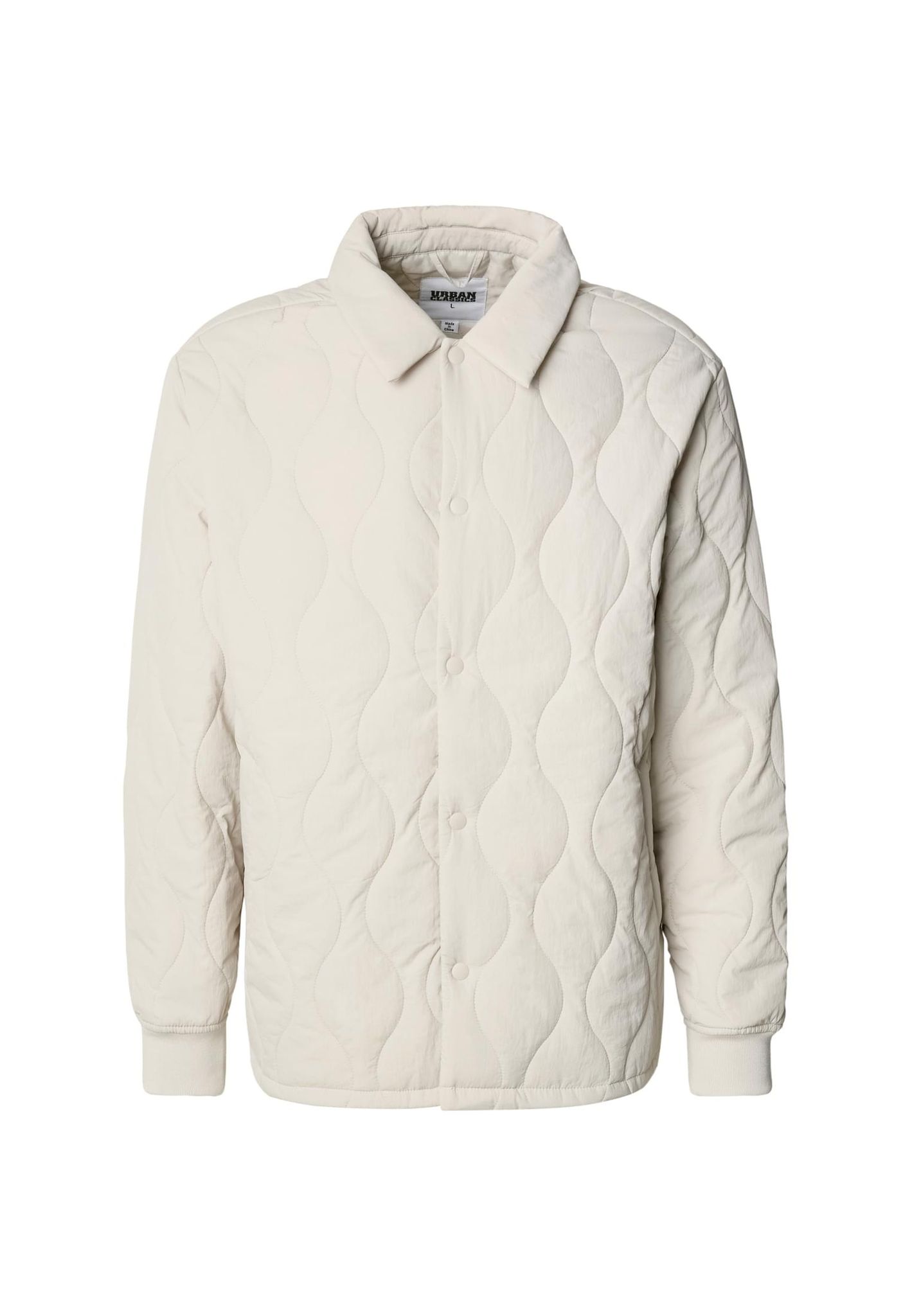 En stilren jacka för herrar som kombinerar funktionalitet med en trendig look. Denna quiltade overshirt har ett subtilt, kvadratiskt mönster som ger en unik dimension till din vardagsstil. Med sin enfärgade design i molnfärg passar den perfekt att styla med olika plagg, oavsett om du ska ut med vänner eller bara vill se bra ut på stan.