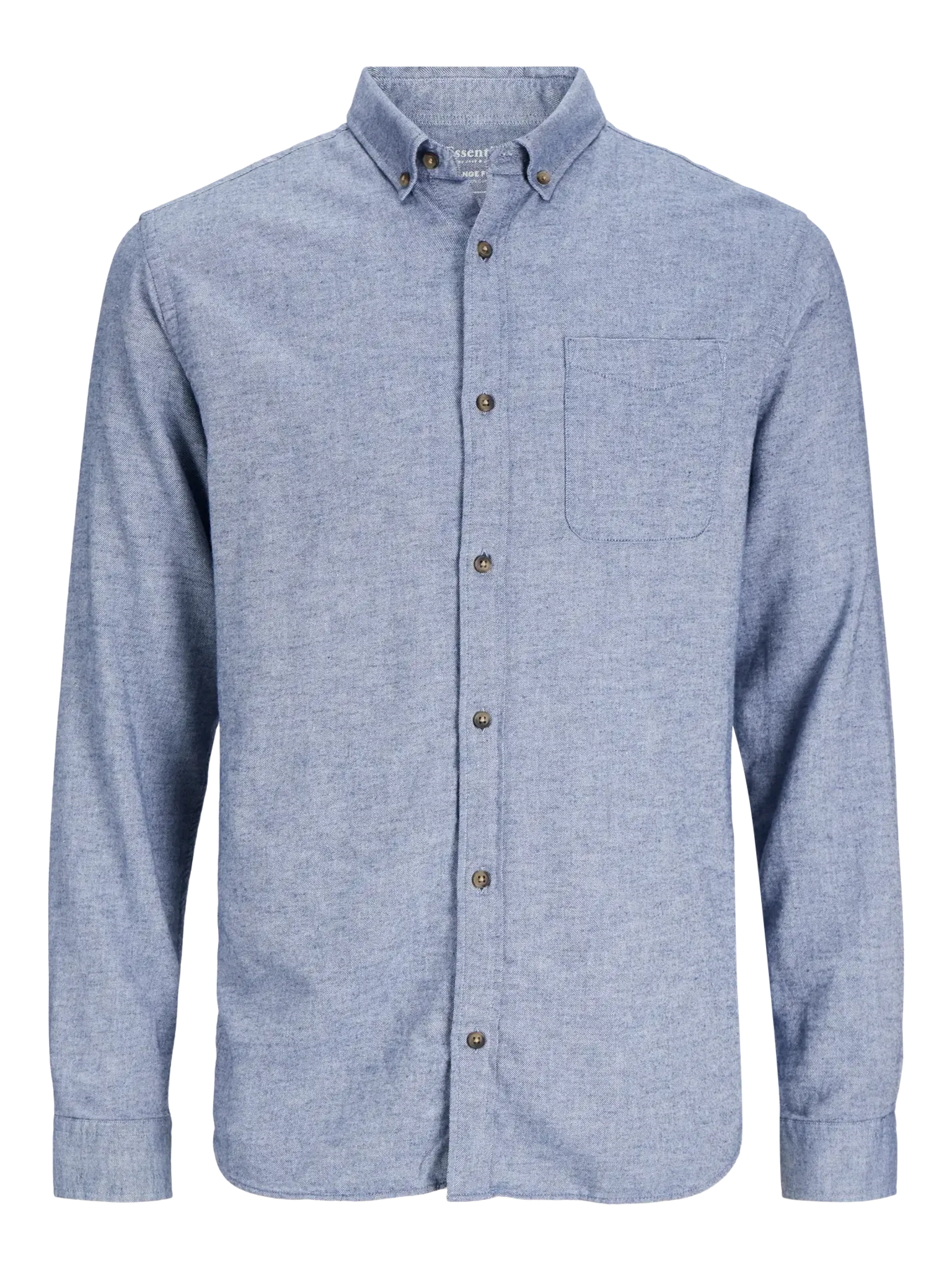 Skjortan har en klassisk skjortkrage och långa ärmar, vilket ger en tidlös stil. Knäppningen fram gör det enkelt att sätta på och ta av skjortan.
