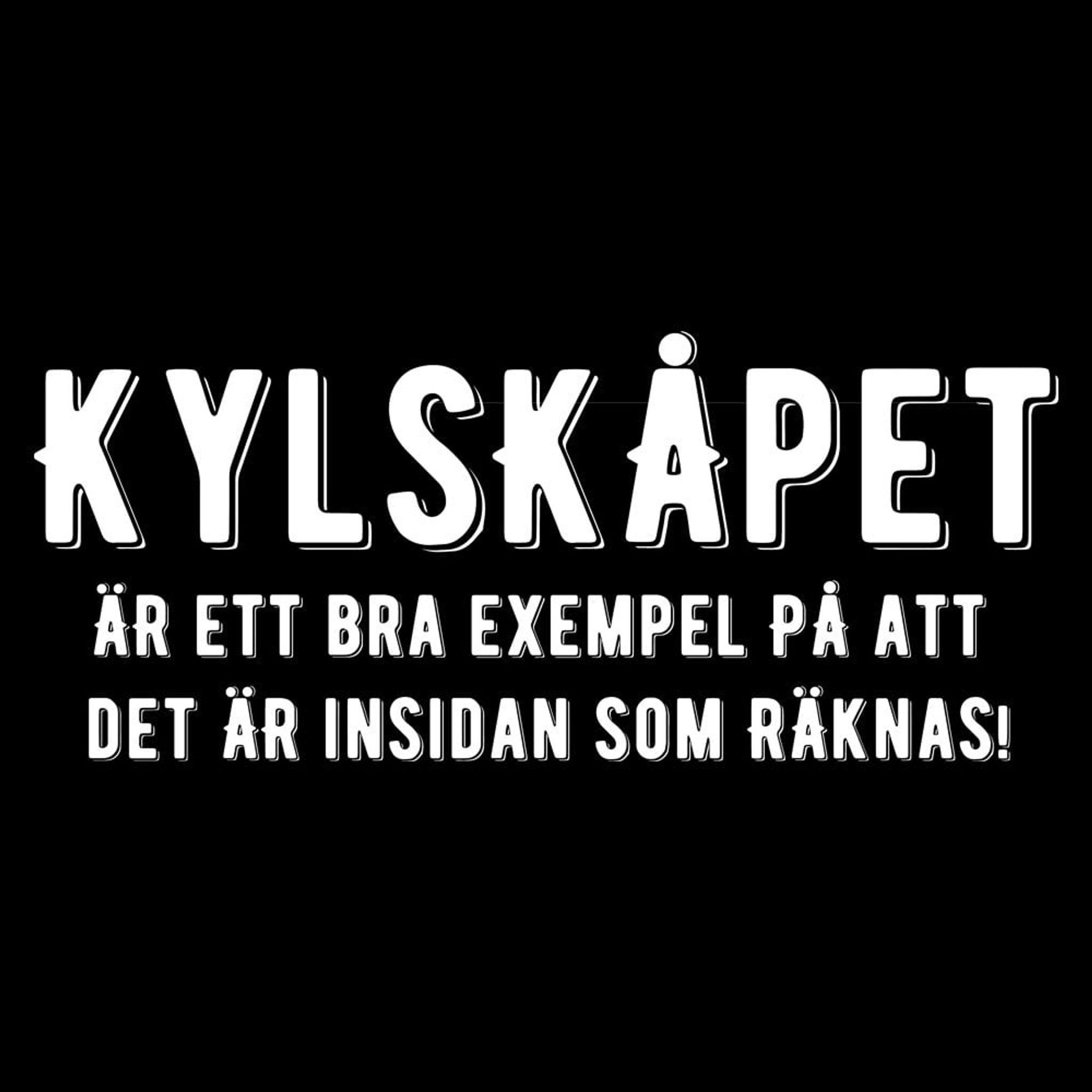 Denna svarta T-shirt bär inte bara ett klädesplagg utan även en livsvisdom. Med texten "KYLSKÅPET är ett bra exempel på att DET ÄR INSIAN SOM RÄKNAS!" tryckt i en klar, självsäker vit typsnitt över bröstet, erbjuder den en humoristisk twist på det gamla talesättet om inre värde. Det är perfekt för den som vill dela ett skratt eller bara påminna världen om att det är det på insidan som betyder mest.