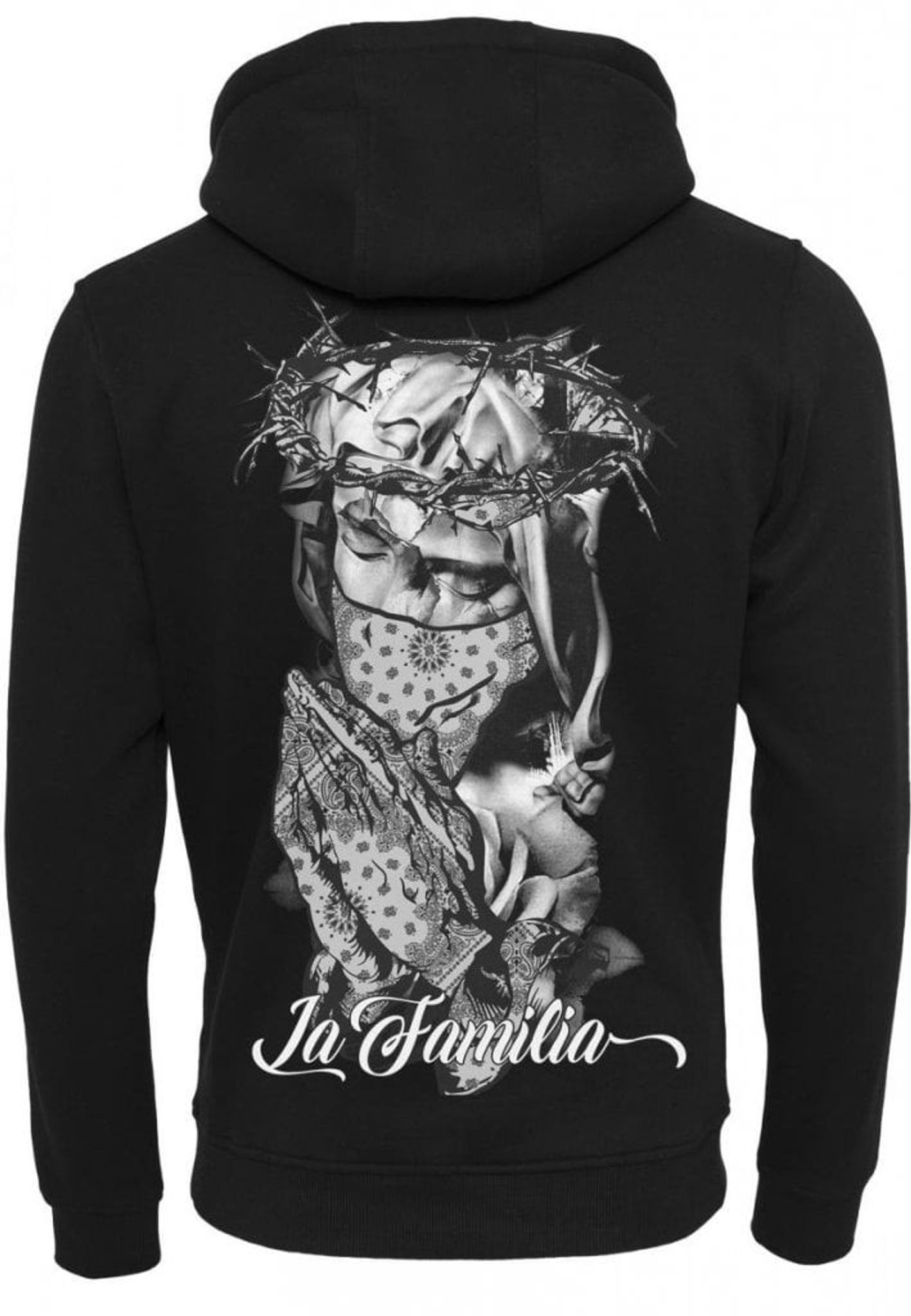 En härlig hoodie från Mister Tee med det snygga trycket La Familia på ryggen.