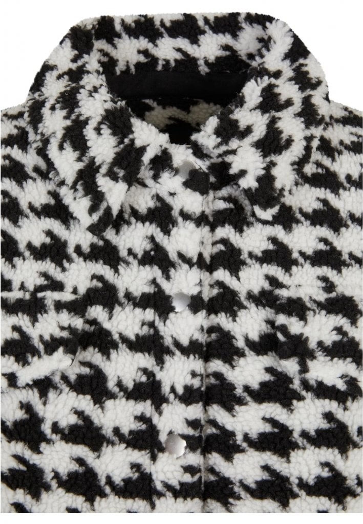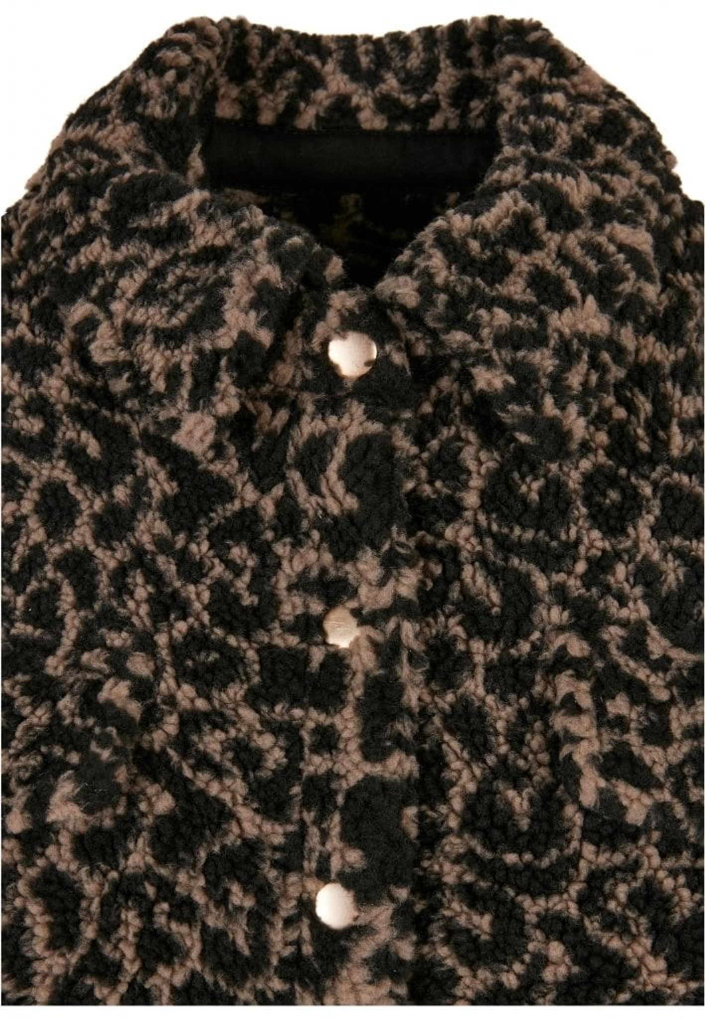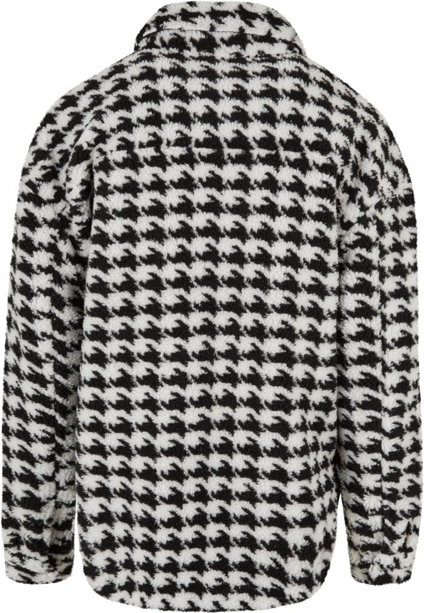 Denna damjacka tillfredsställer på mer än ett sätt. För det första är den gjord av ett gosigt Sherpa-material, för det andra har den ett fräckt allover-mönster. Klassiska inslag som krage, knappslå och rundad fåll kompletterar designen och ackompanjeras av en något långsträckt rygg. Dessutom är jackan fodrad med taft och erbjuder en hip oversize passform.
