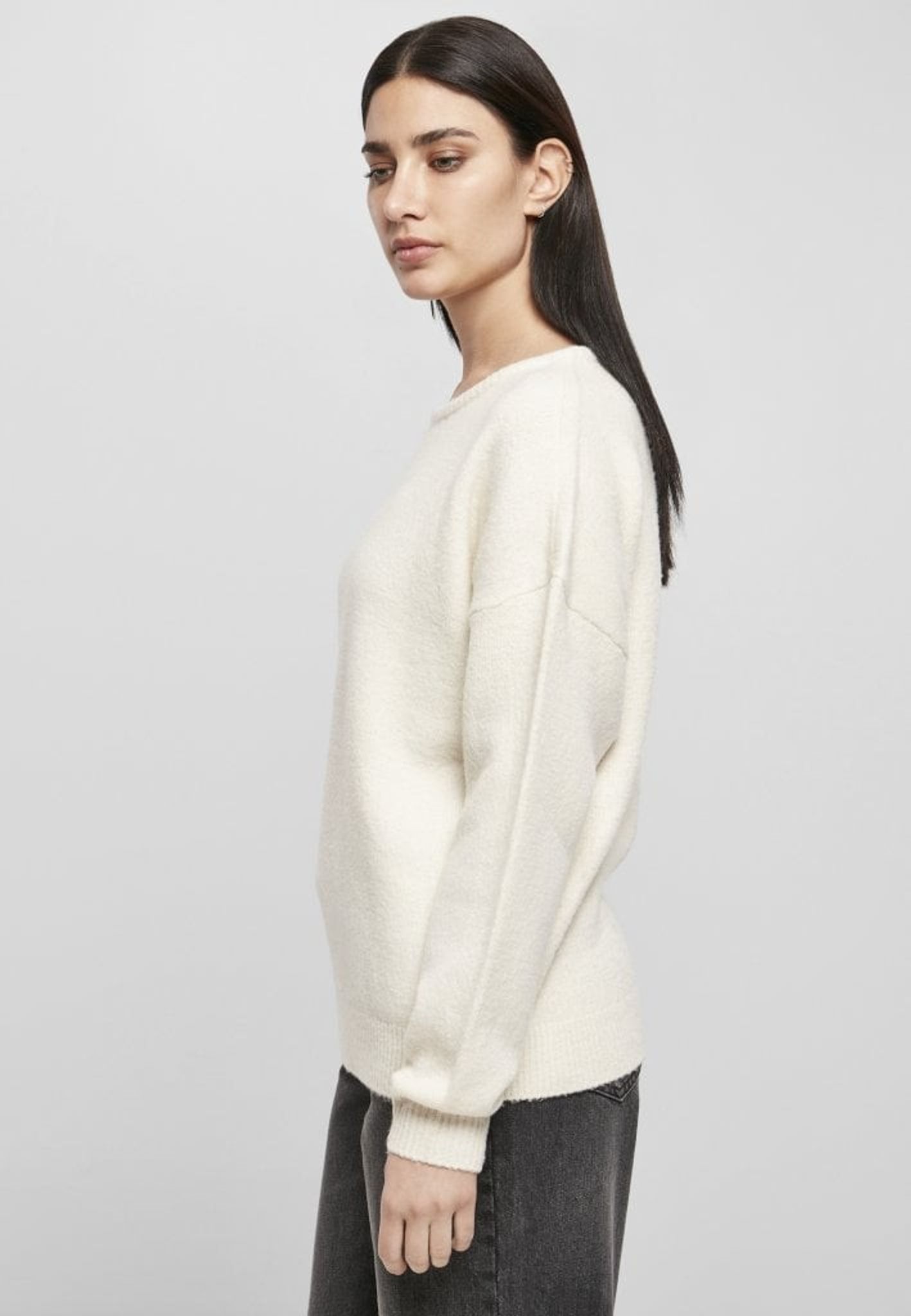 En avslappnade tröja för kvinnor förtrollar med sin avslappnade form. Nedsänkta axlar och långa ärmar kompletterar översize-tilltalandet, medan breda ribbkanter på ärmar och fåll ger den en sportig look. Slutligen ger en båtringning en feminin touch. Den härliga damtröjan är gjord av polyakryl och polyester.
