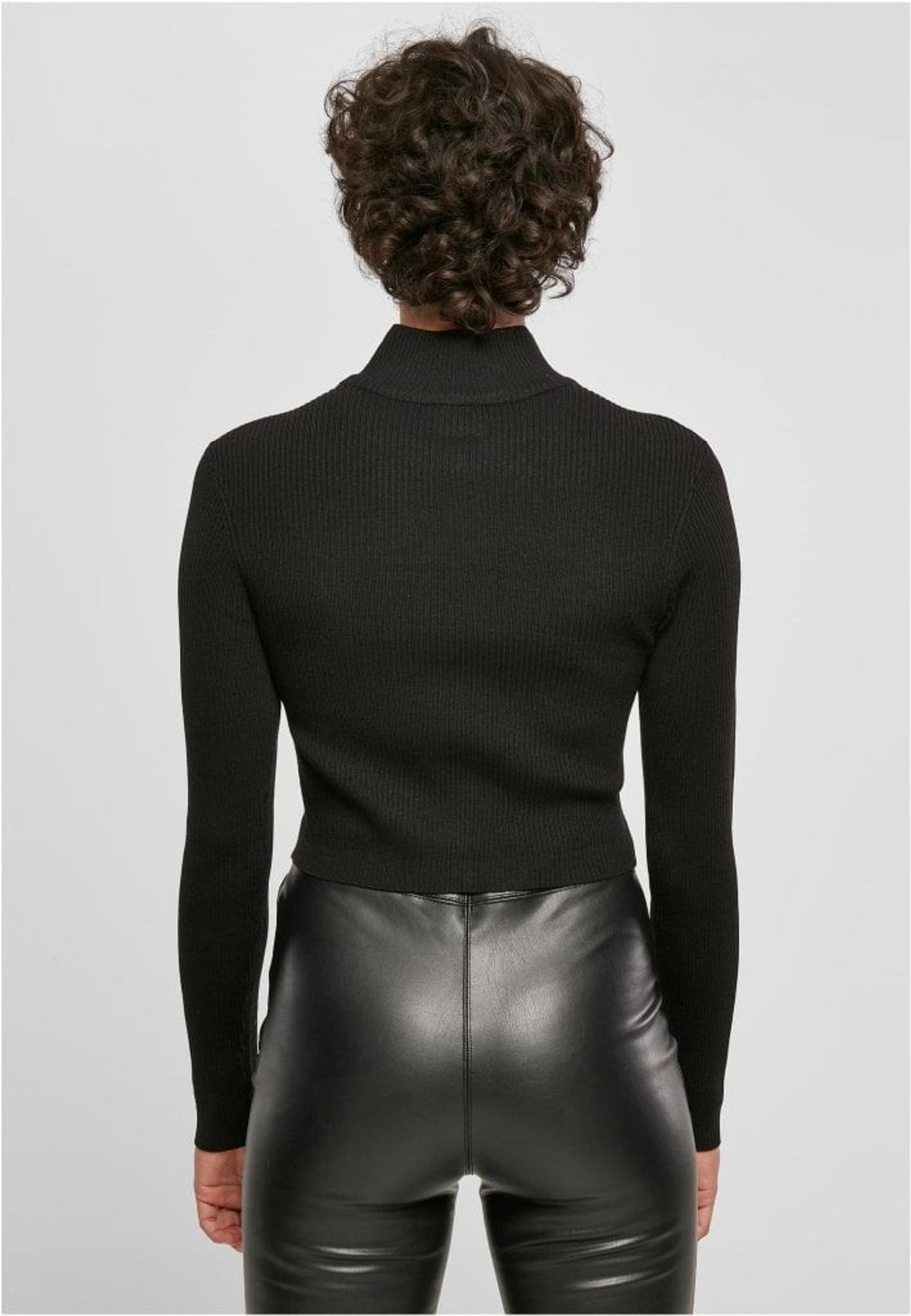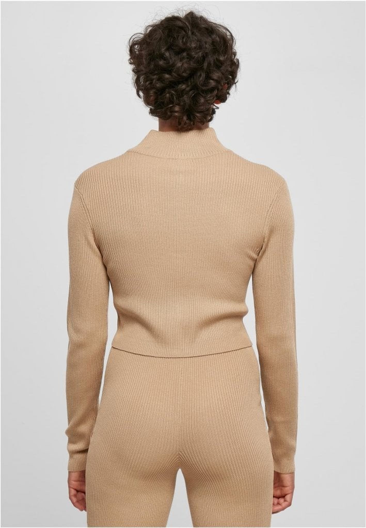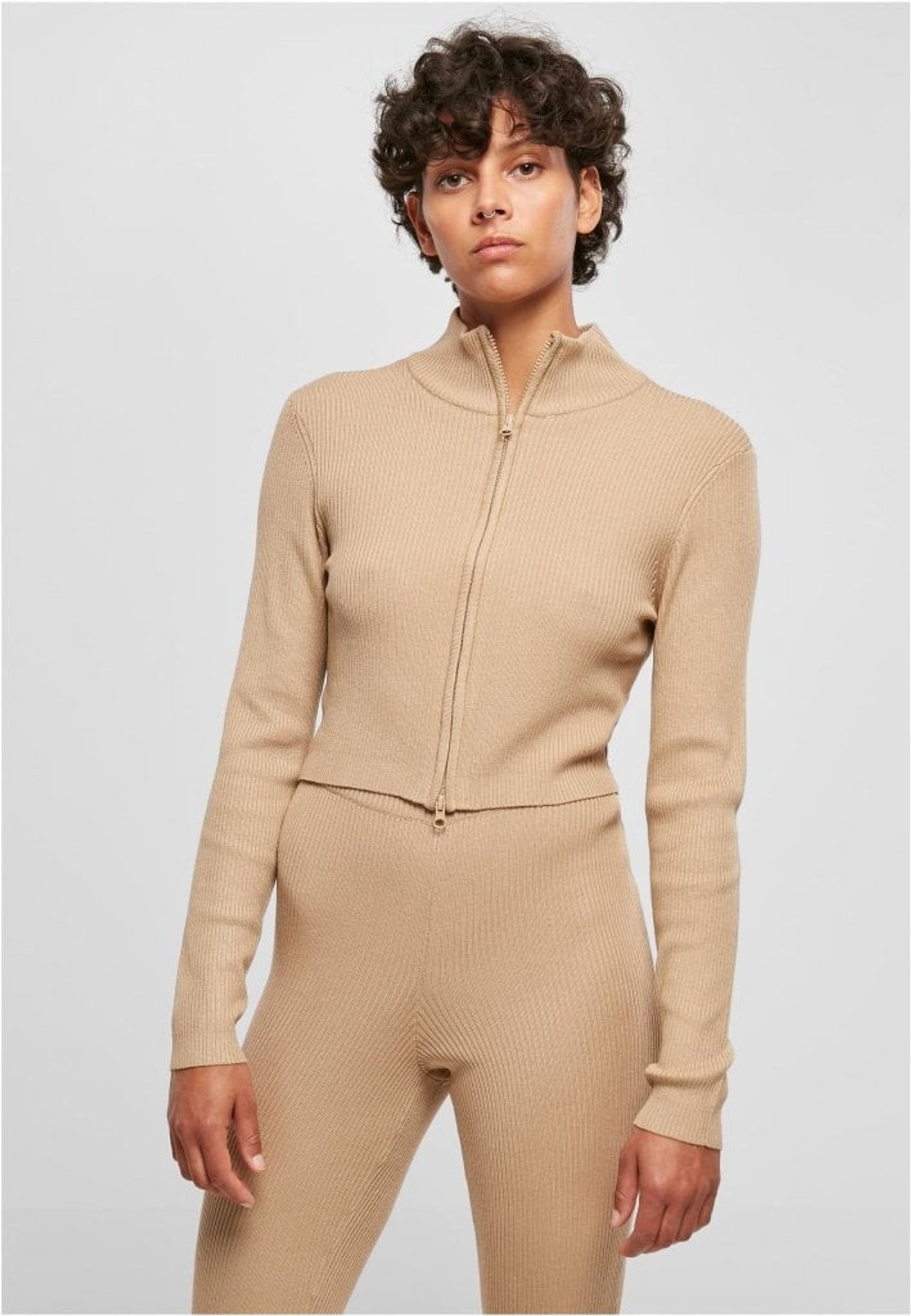 Ladies Cropped Rib Knit Zip Cardigan.