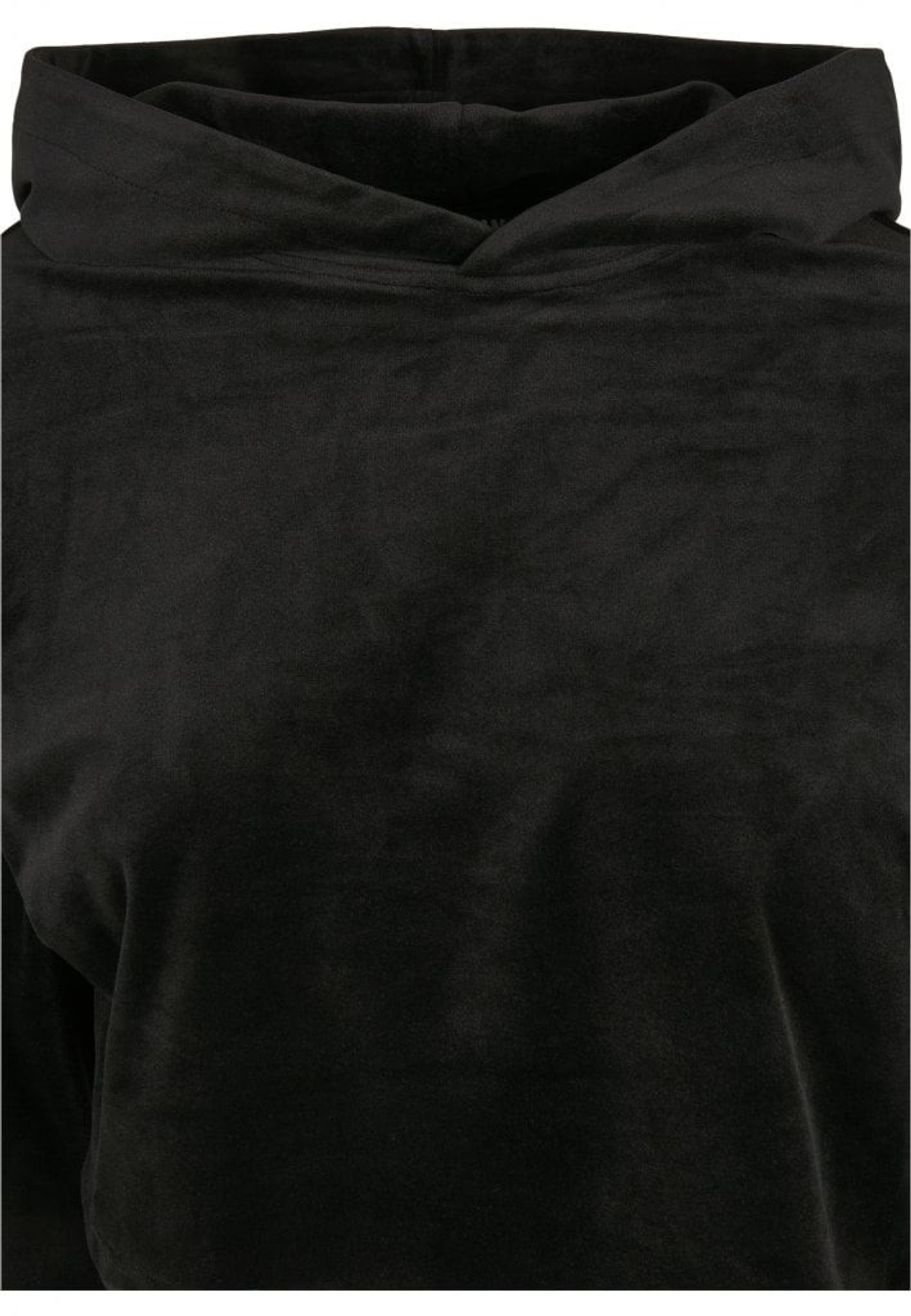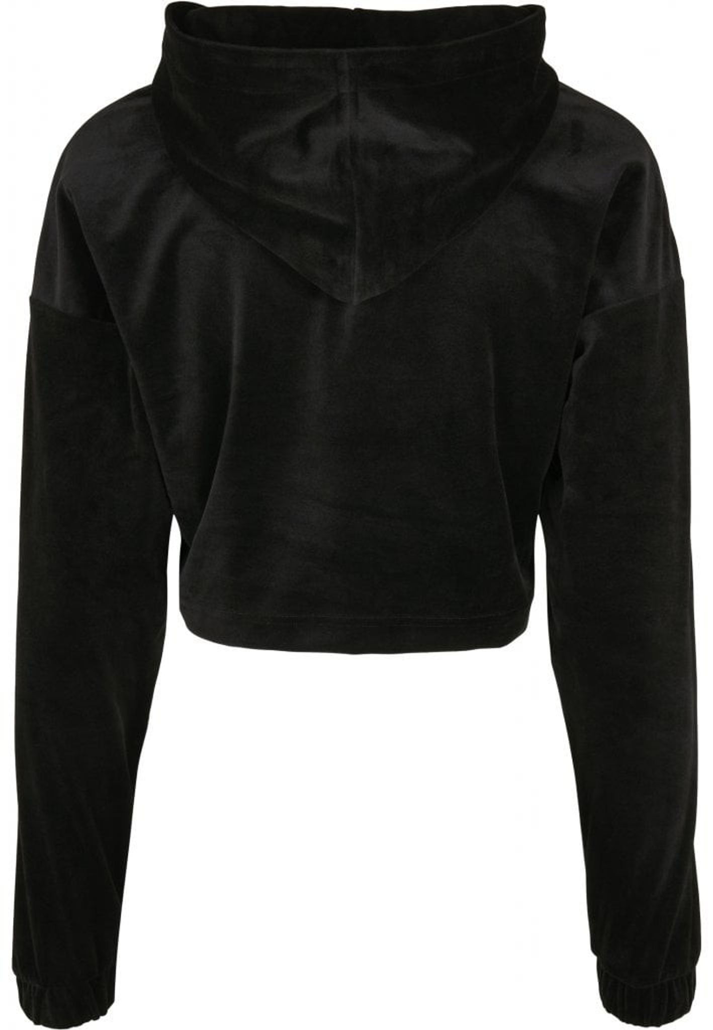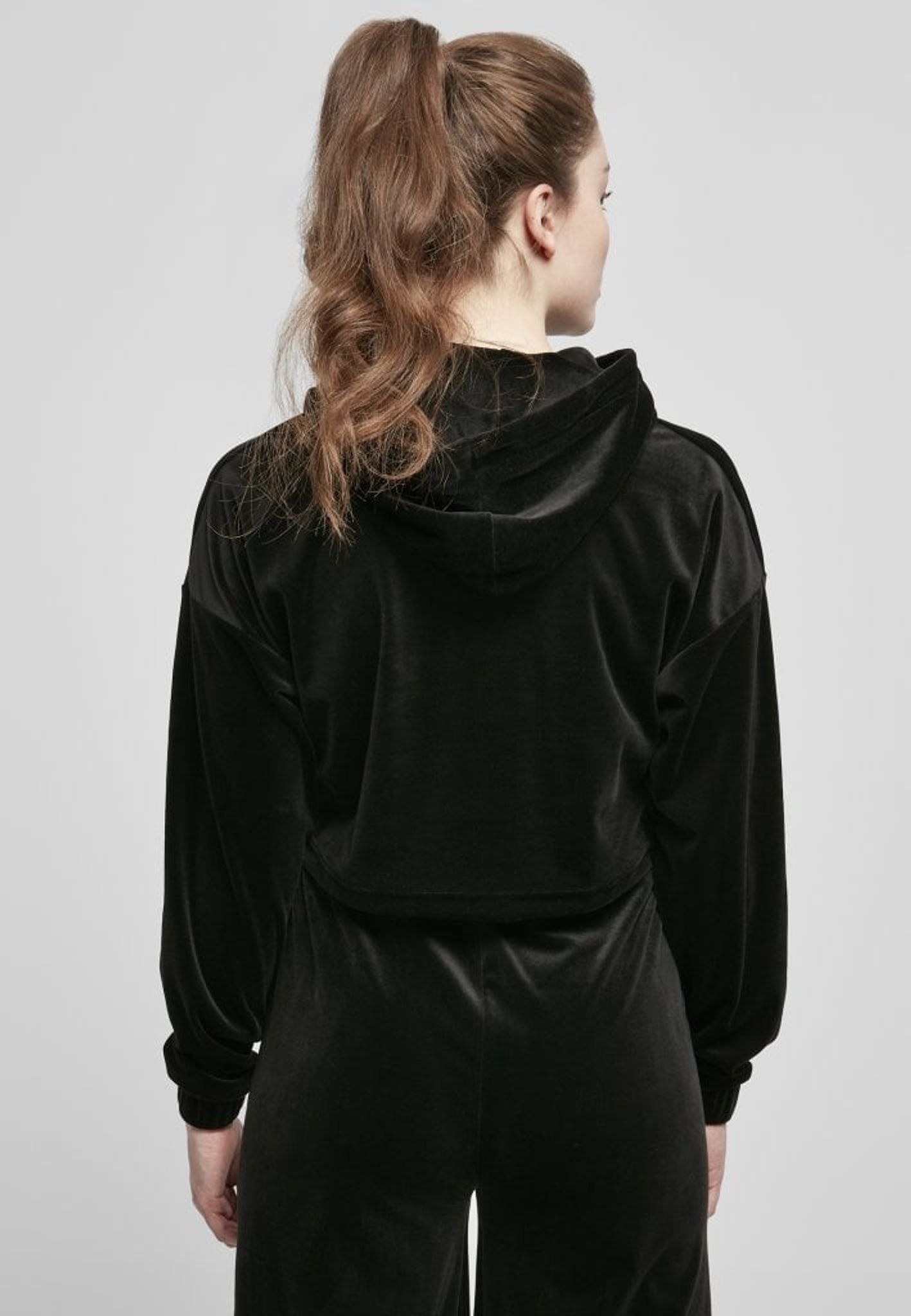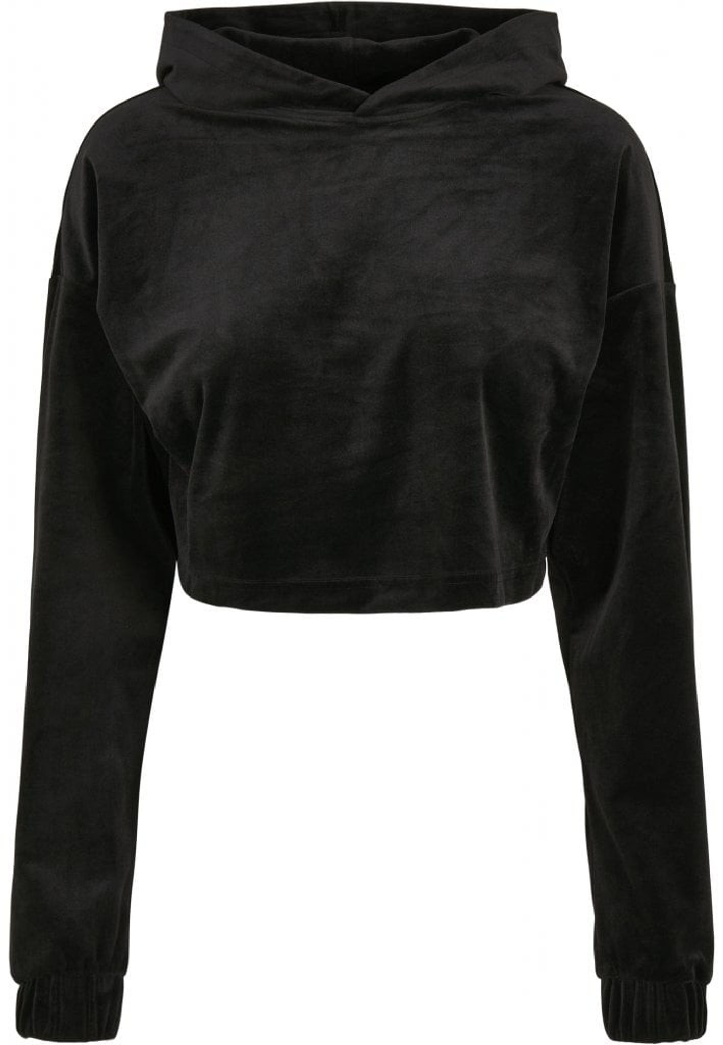 Hoodien är i slät strech sammet och gjord i en kort modell. Huvtröjan har kraftiga ärmslut med elastisk mudd.