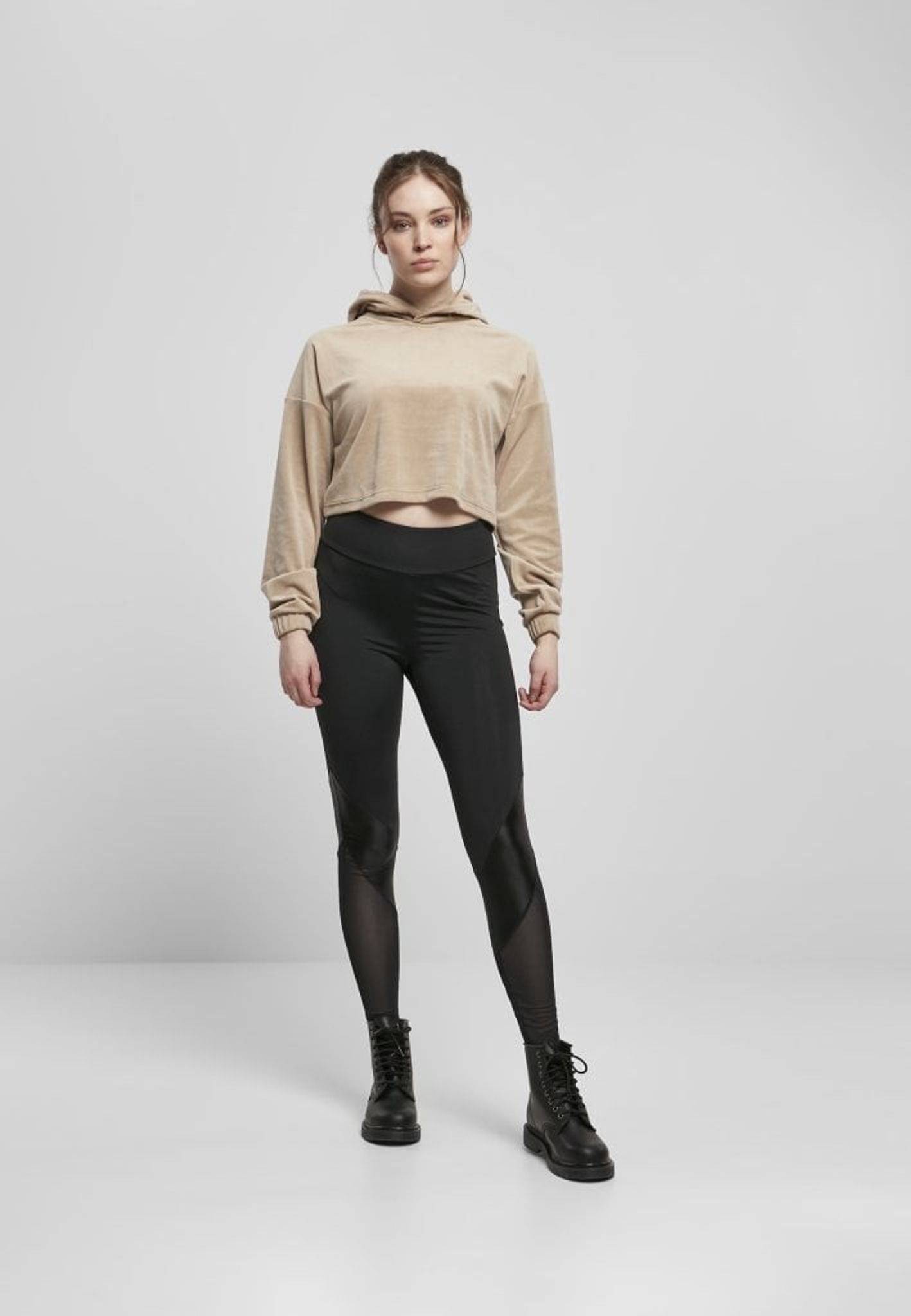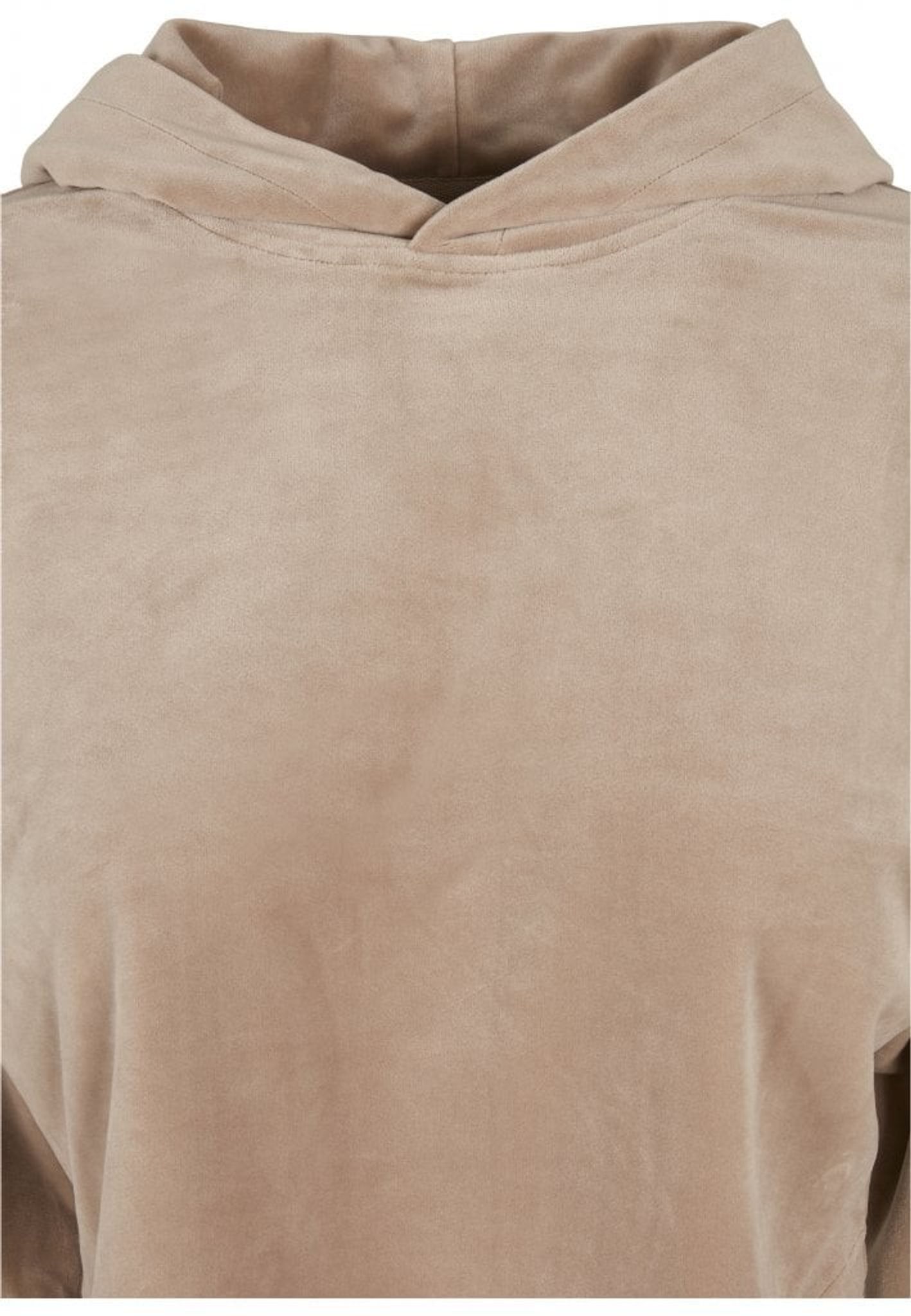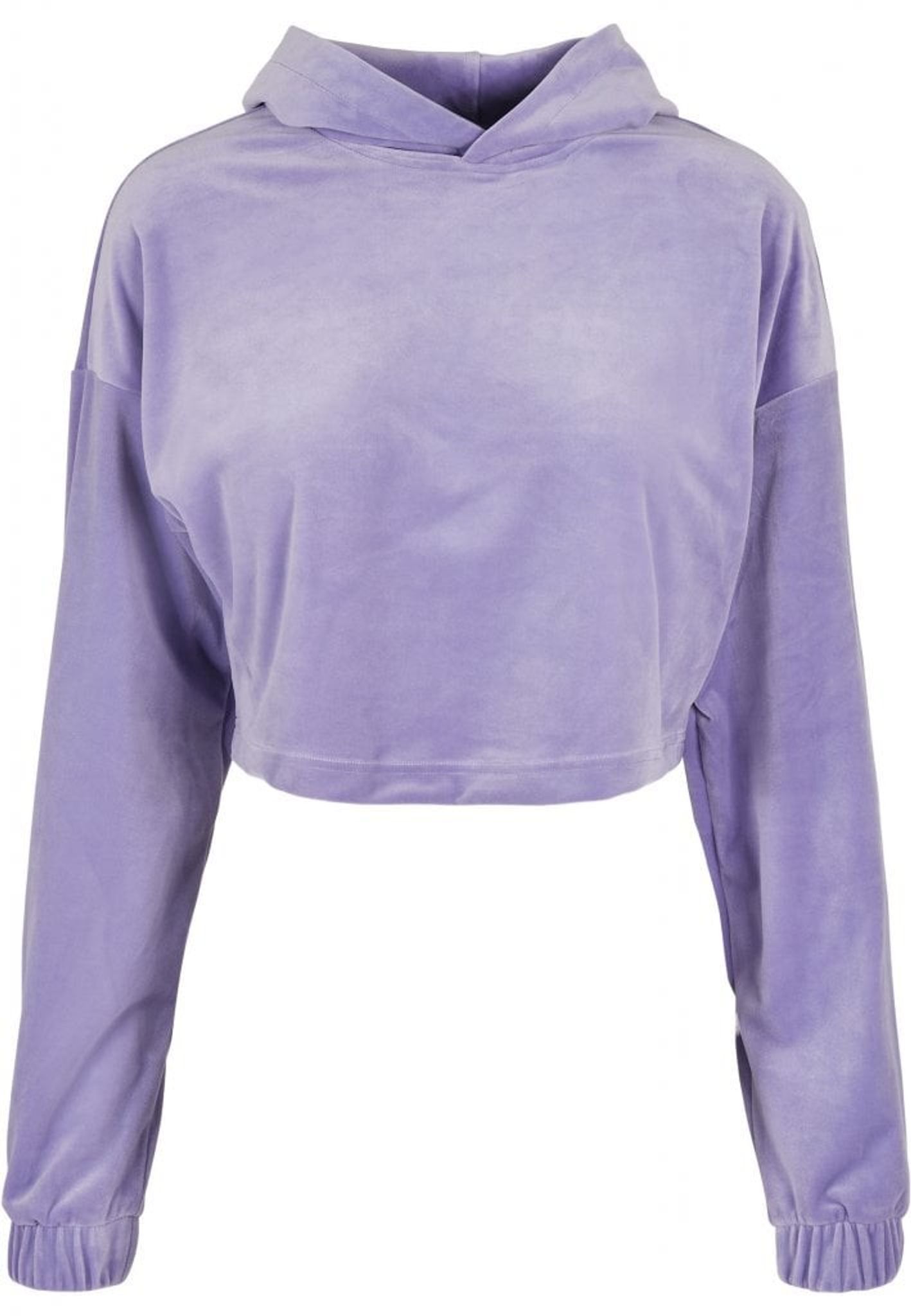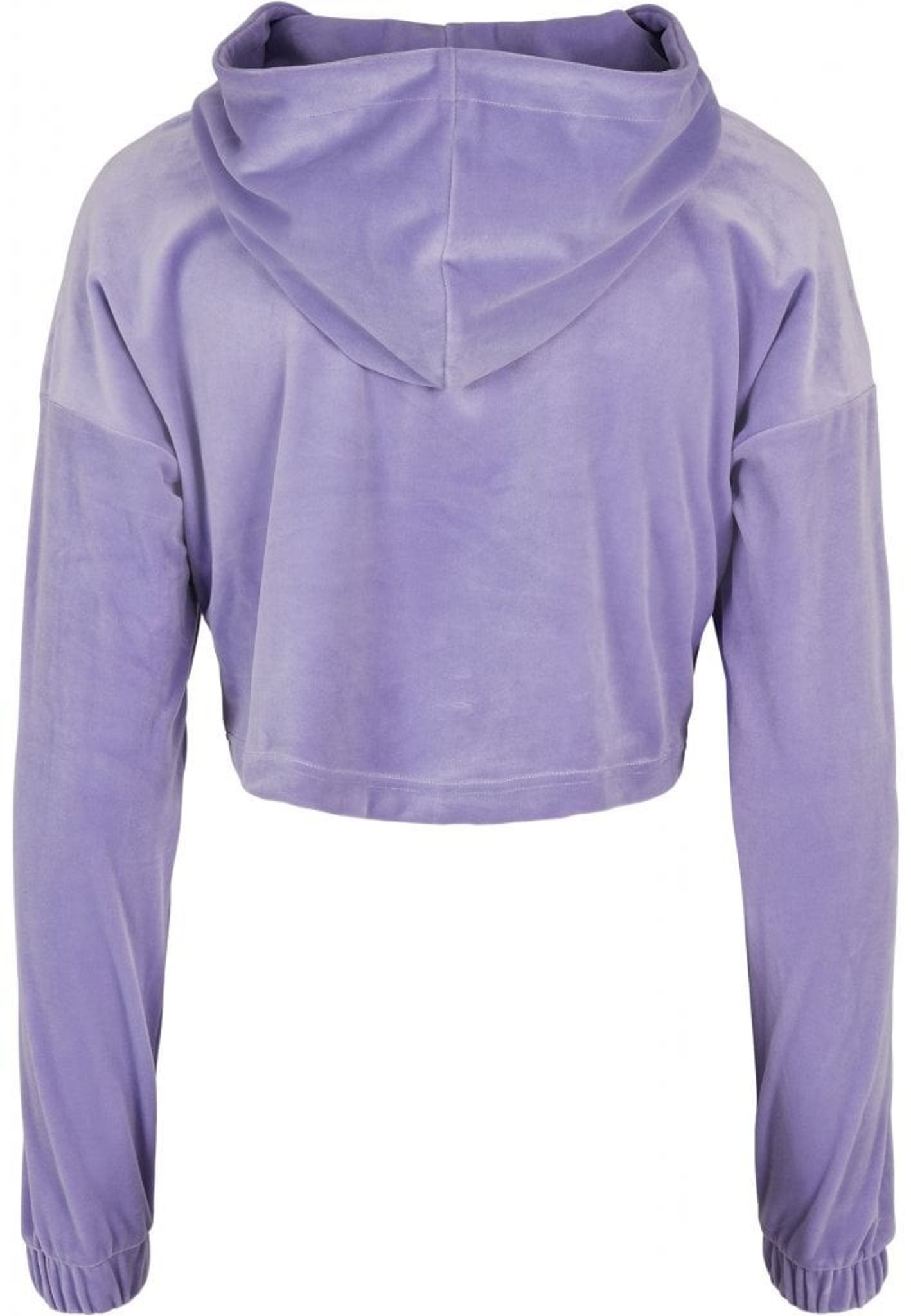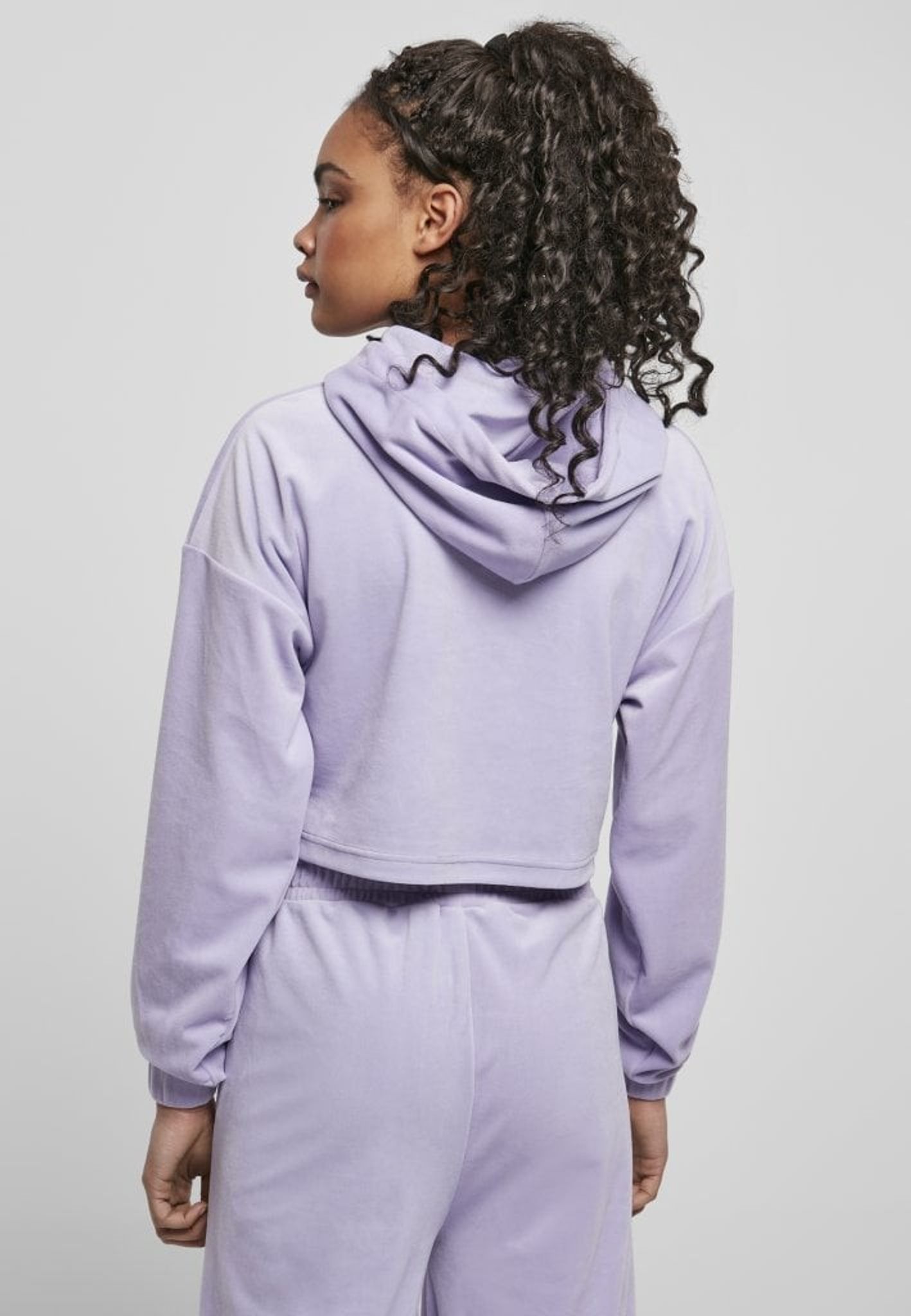 Hoodien är i slät strech sammet och gjord i en kort modell. Huvtröjan har kraftiga ärmslut med elastisk mudd.