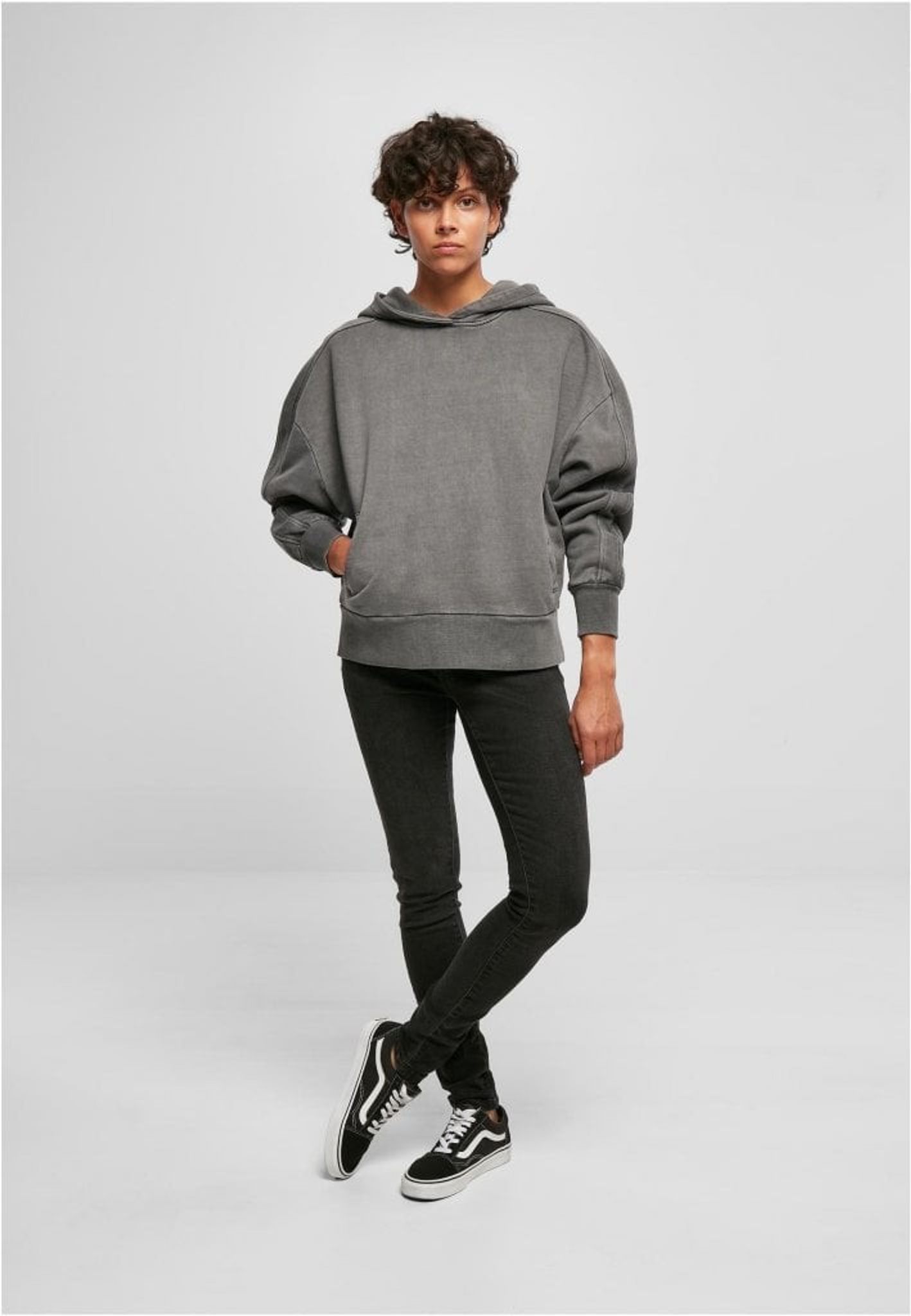 Denna fräscha huvtröja för kvinnor presenterar en trendig stil som består av en lätt blekt tvätt och sofistikerade detaljer. Inlägg löper över axlarna och ytterärmarna samt centralt över huvan. Huvtröjan har två praktiska sidfickor och breda muddar på ärmar och nederkant. En bekväm oversize passform med sänkta axlar och kraftig och slät frottébomull ger optimal bärkomfort.