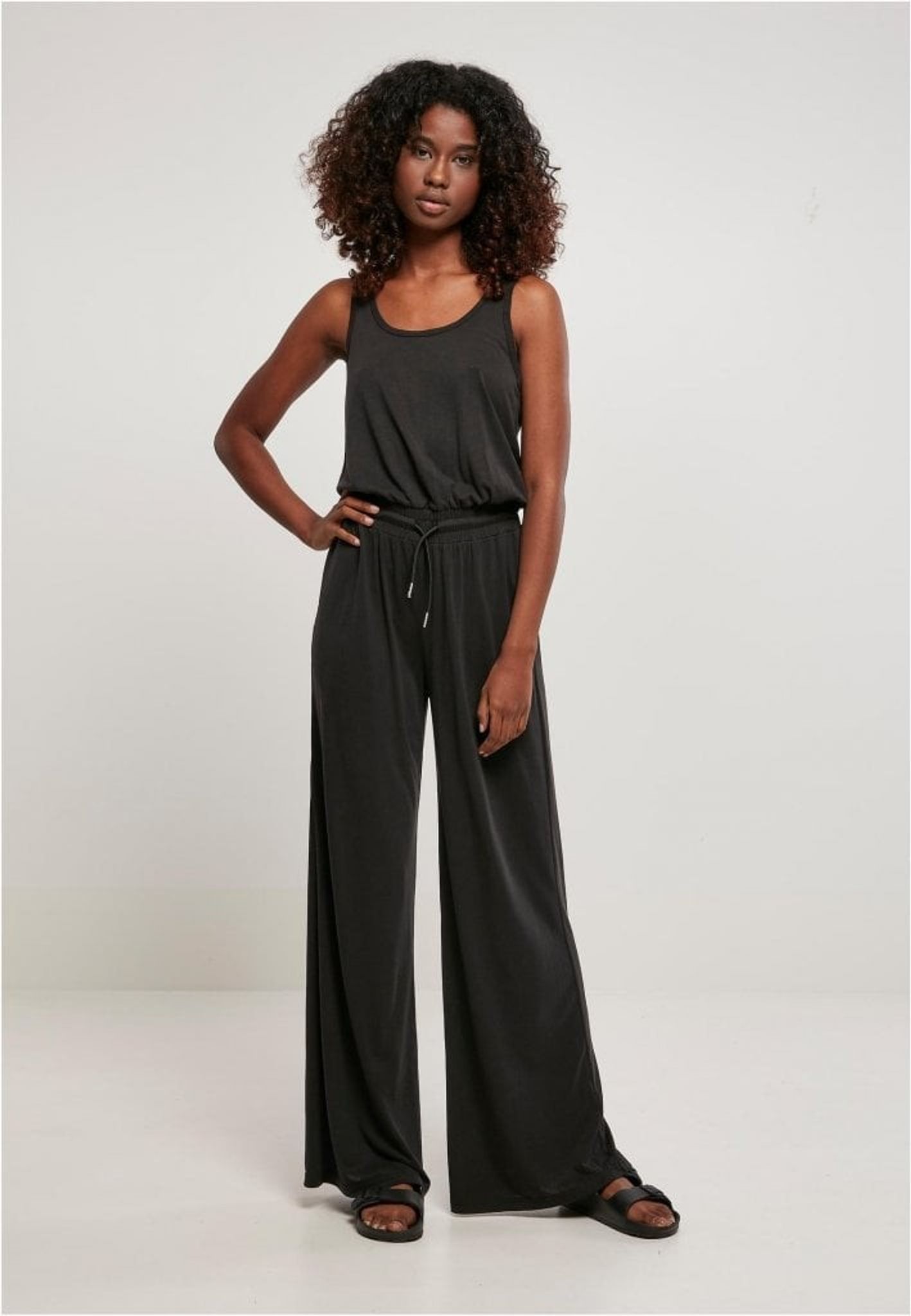 En ärmlös jumpsuit med vida benslut och i härligt modalfiber.