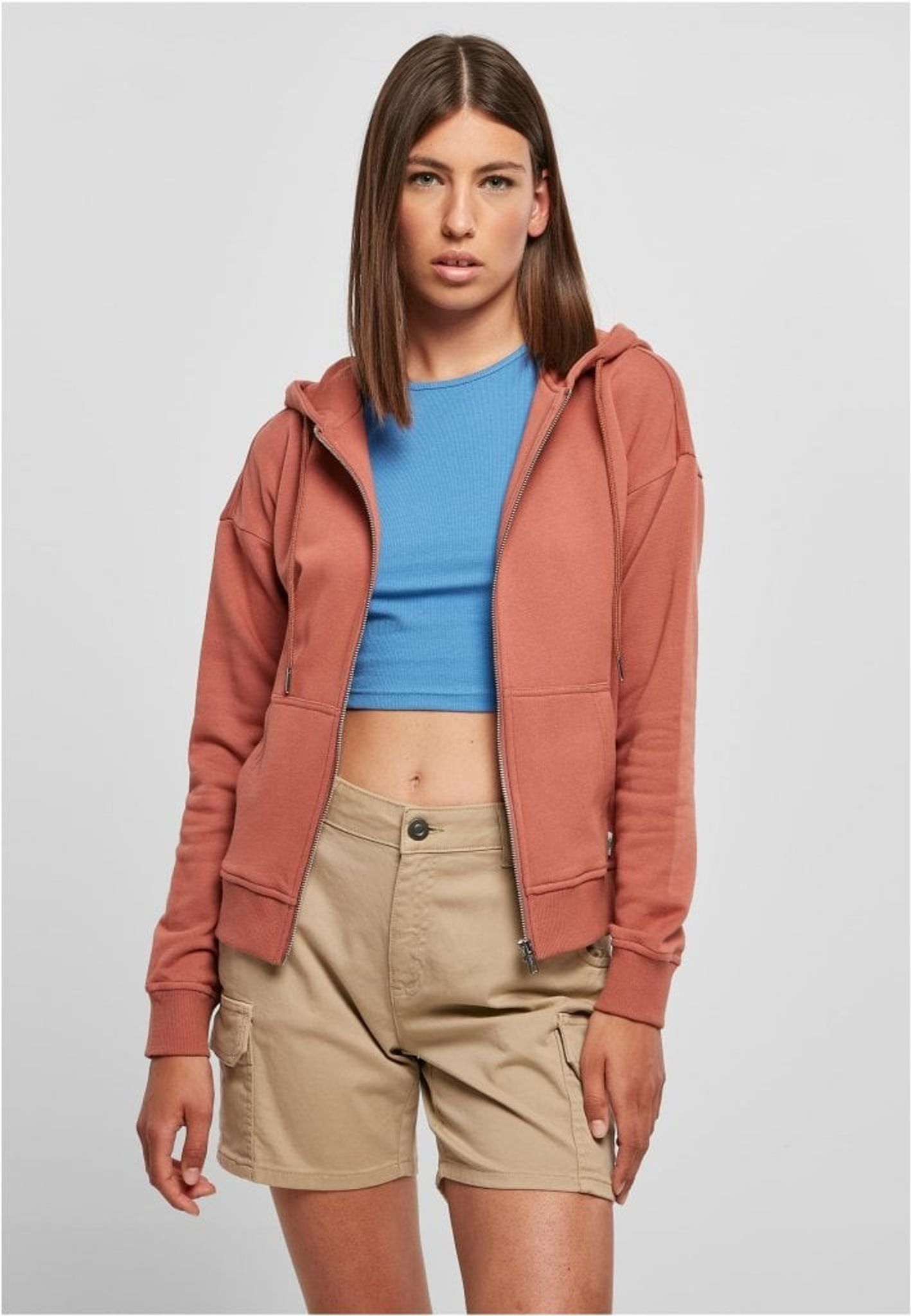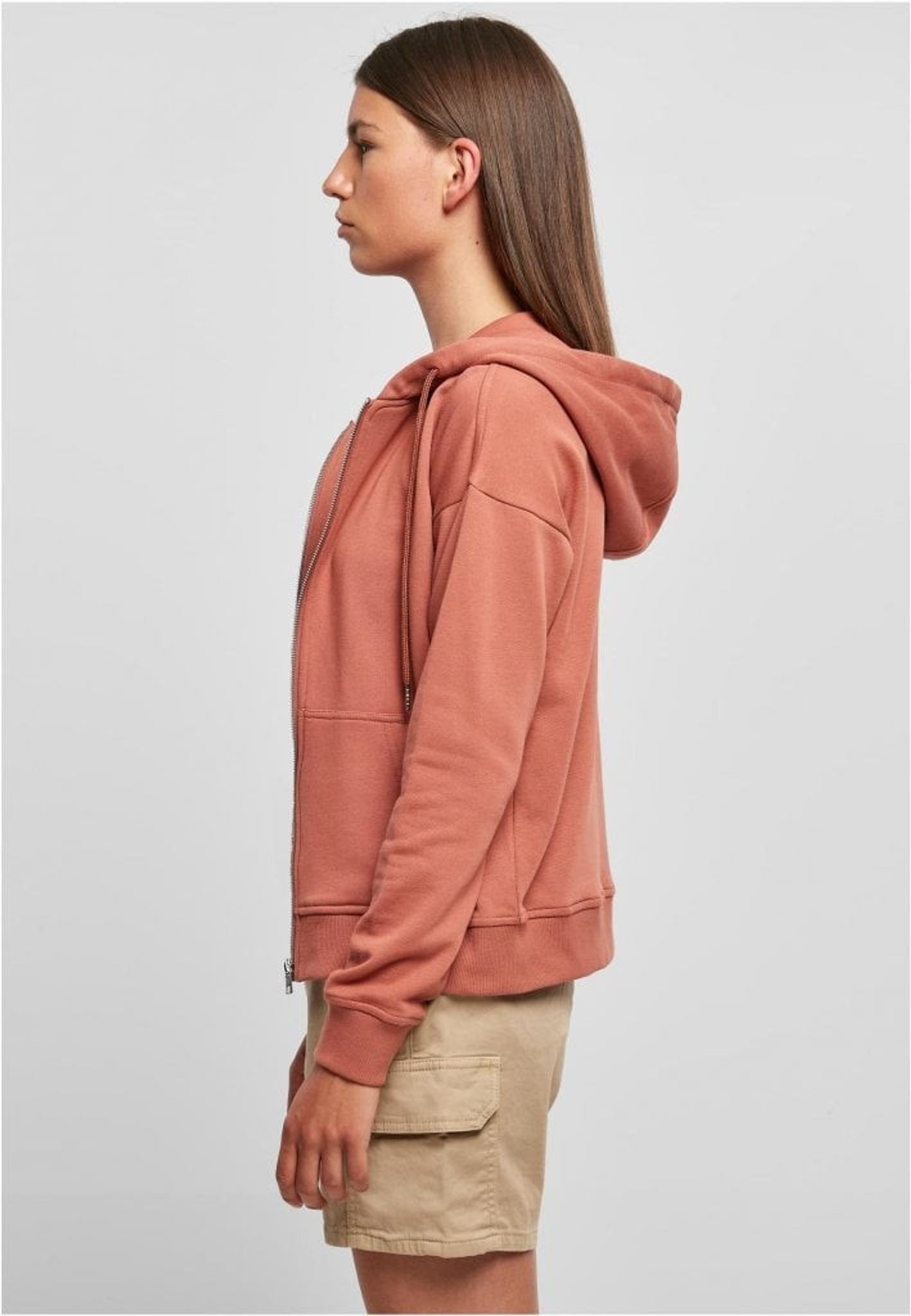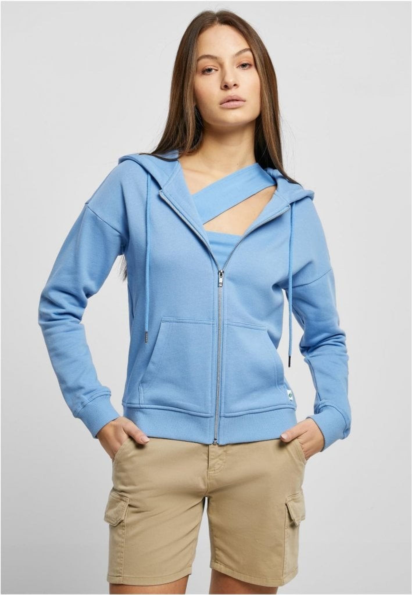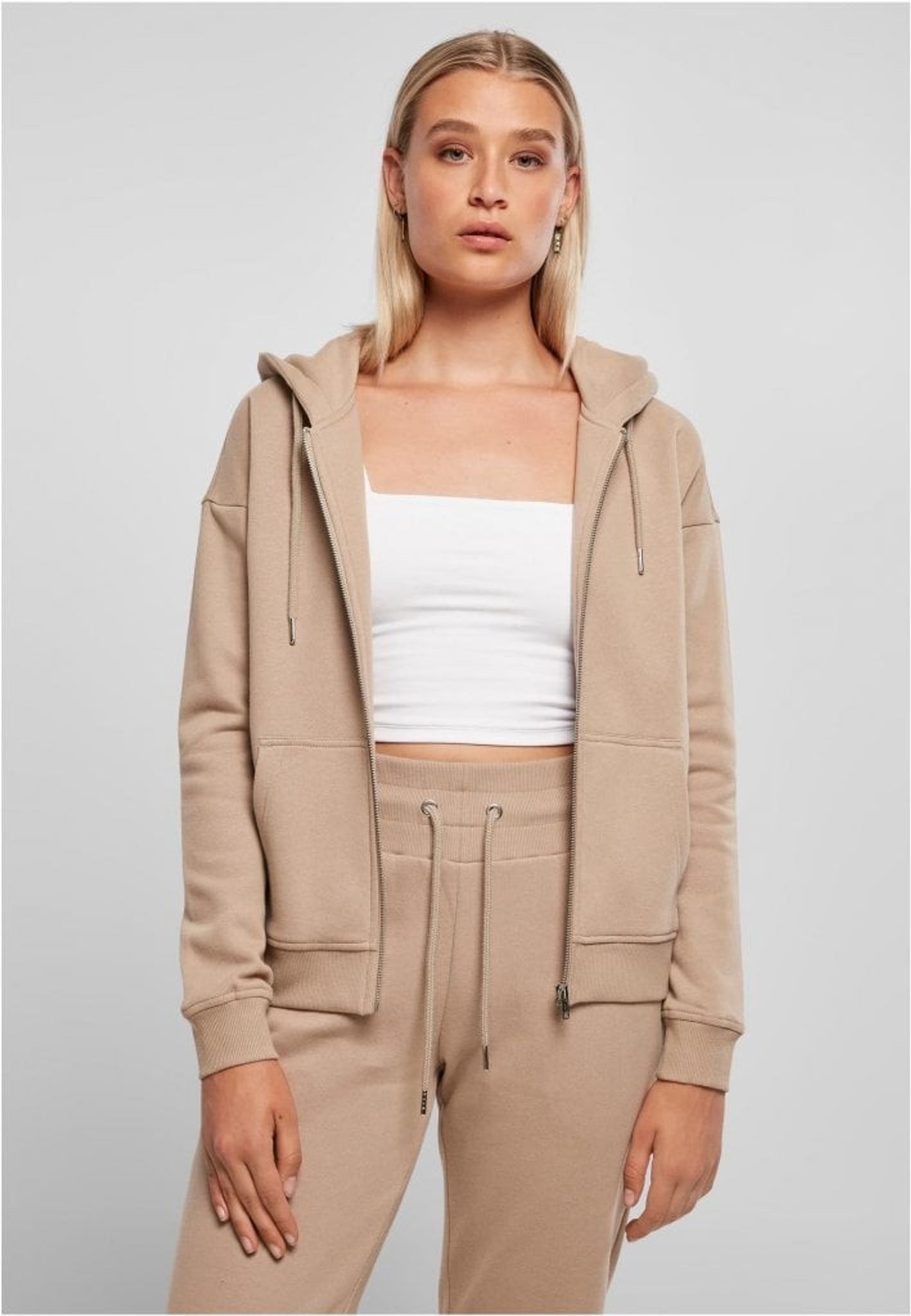 Denna huvtröja med dragkedja av mjuk ekologisk bomull för damer passar perfekt till alla urbana outfits. Förutom bekväma muddar i ärmslut och nederkant har huvtröjan en praktisk huva med dragsko i bomull och en praktisk delad känguruficka.
