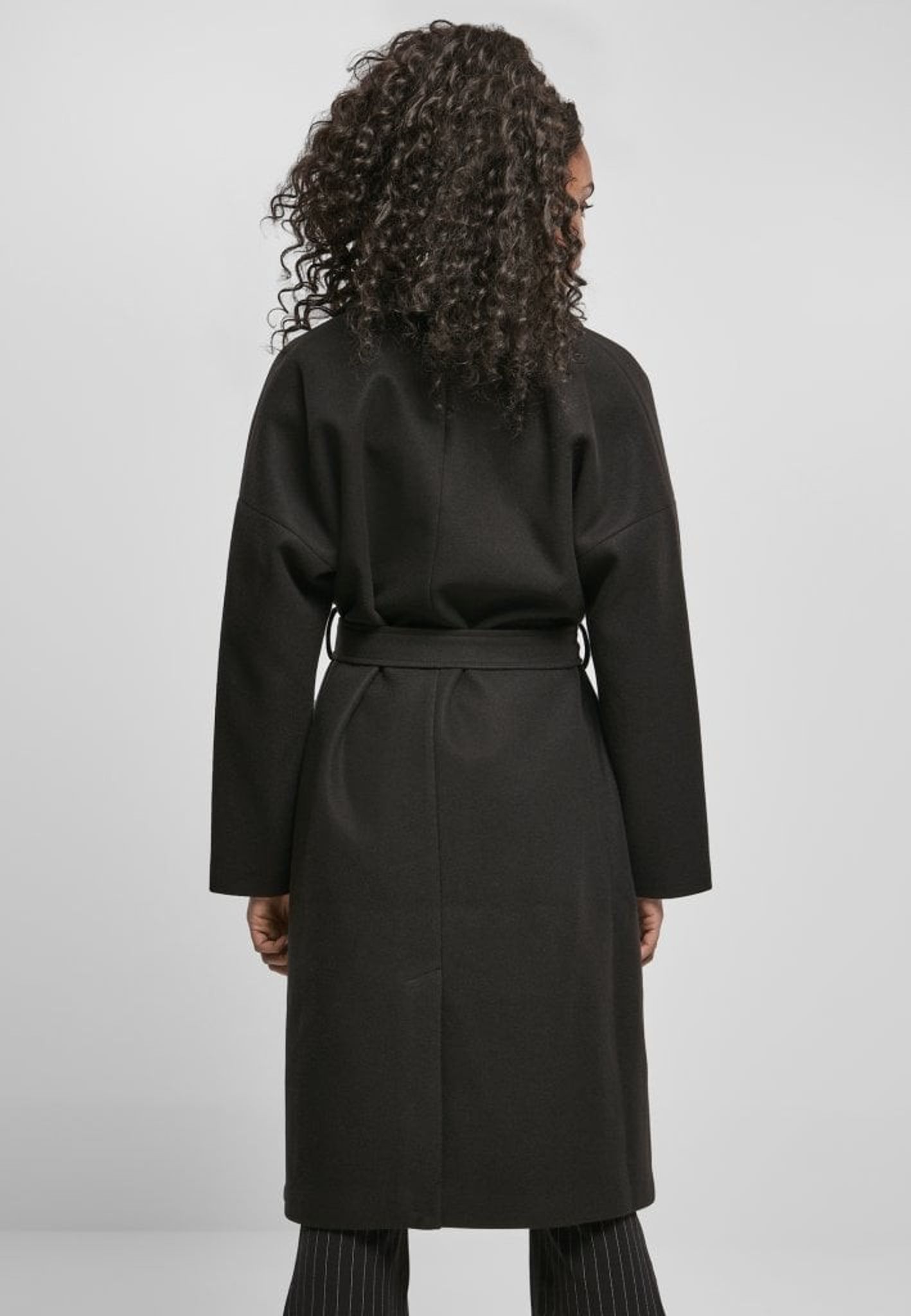En damkappa i oversizemodell som kombinerar kalssiska konturer med sportighet. Kappans ärmar är stora kononoärmar.