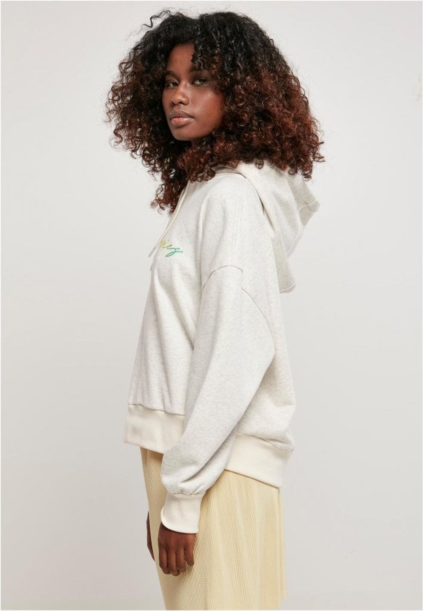 En oversize hoodie med Urban Classics i skrivstil över framsidan.