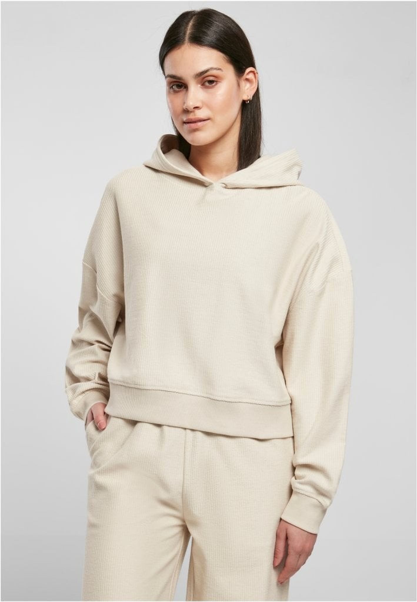 Ladies Oversized Short Rib Hoody